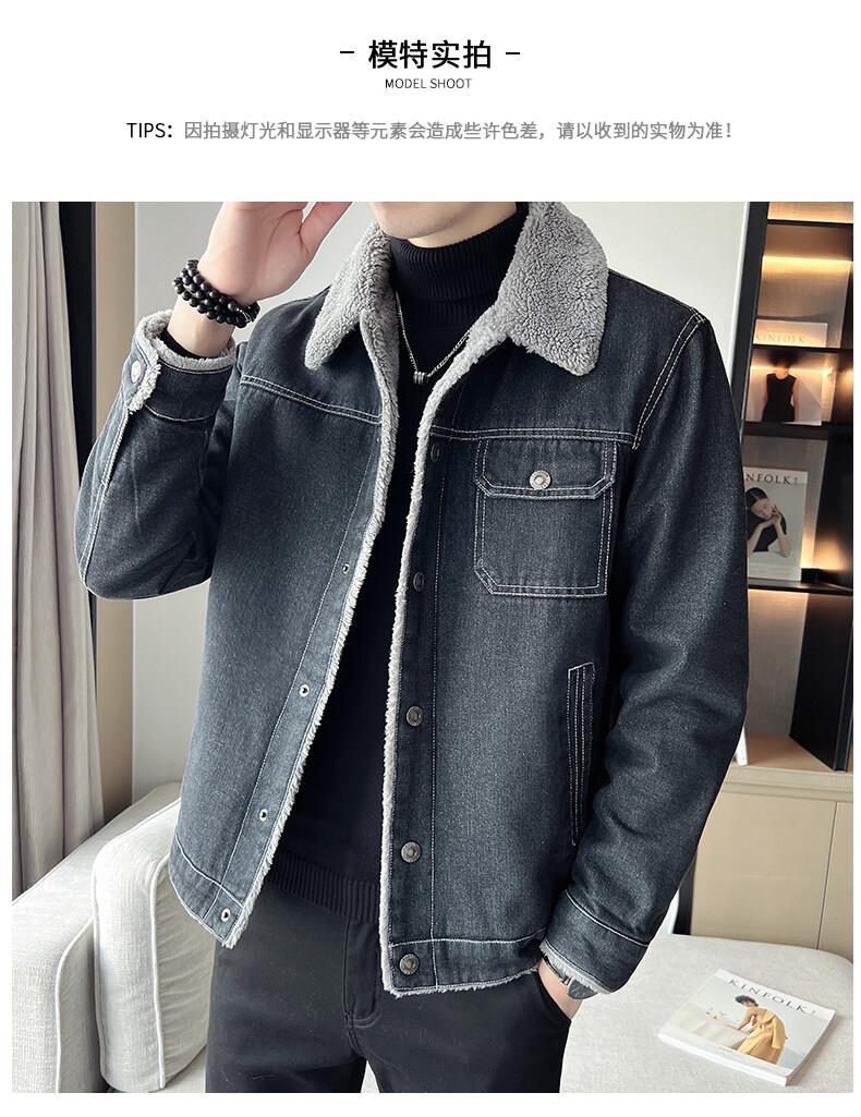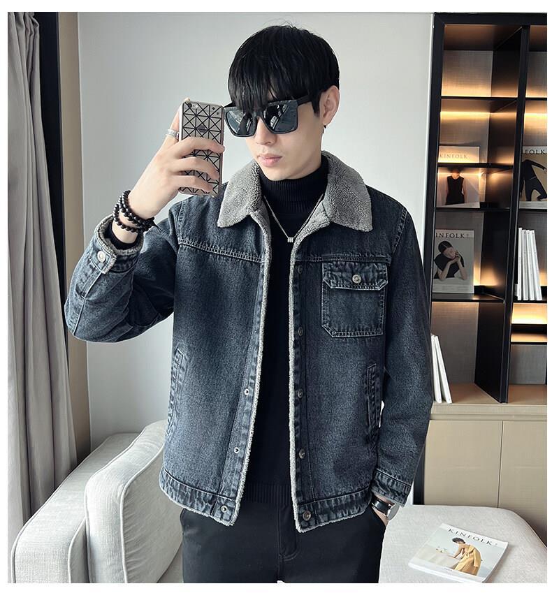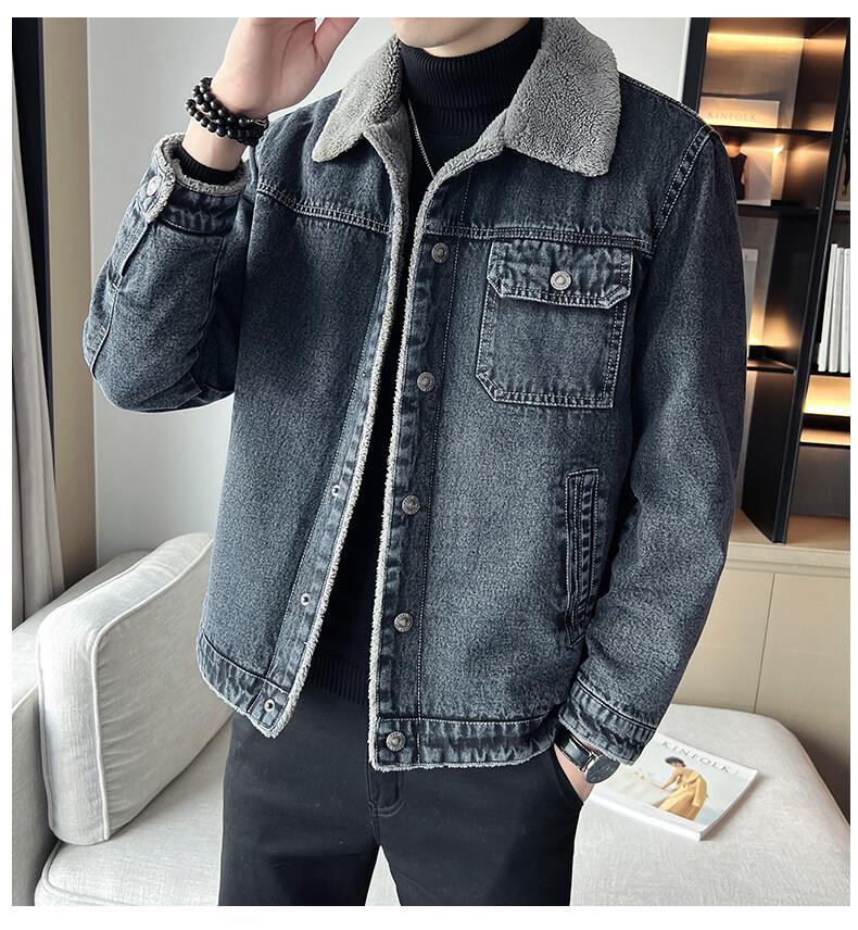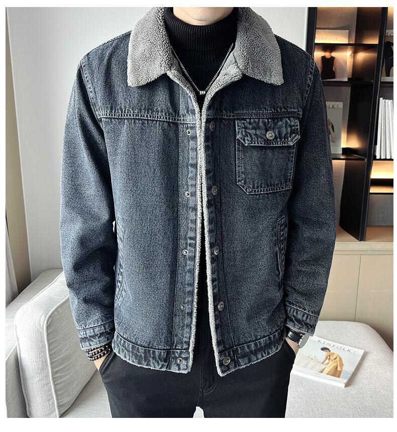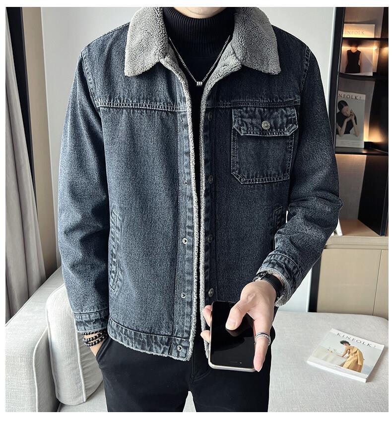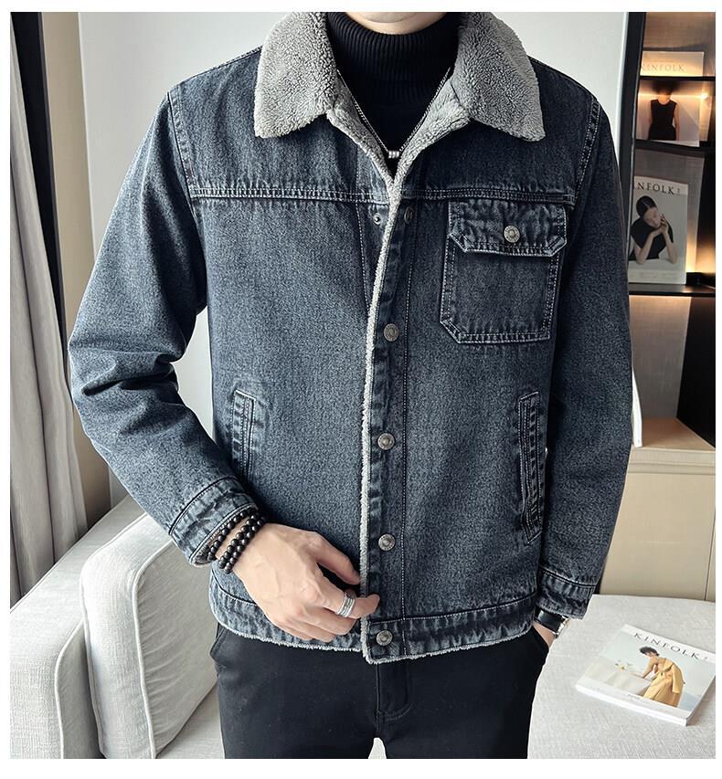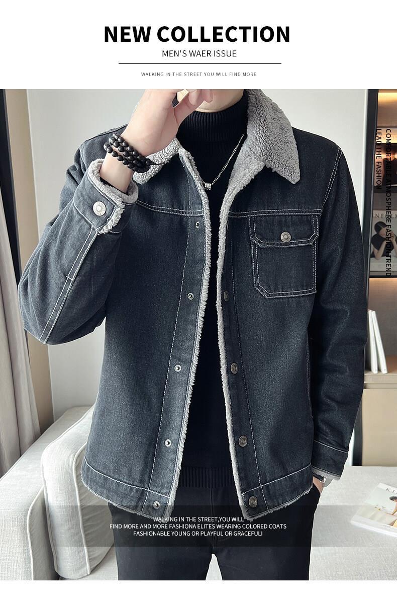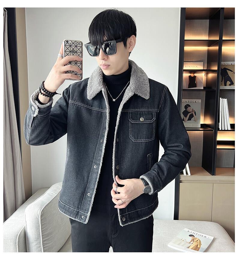 Abrigo de mezclilla para hombre invierno forrado de lana engrosada ropa de hombre 2022 nueva ropa de invierno de moda chaqueta de cuello de piel de cordero abrigo de algodón acolchado