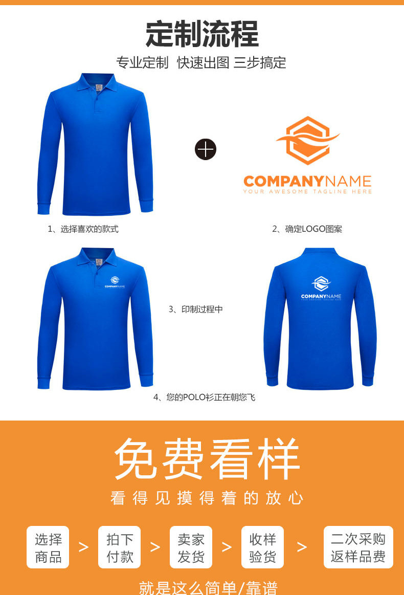 Solapa de algodón de poliéster de color sólido Camiseta de manga larga Polo grupo de empresa ropa de trabajo Publicidad camisa cultural logotipo impreso personalizado