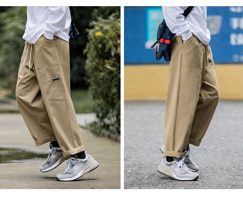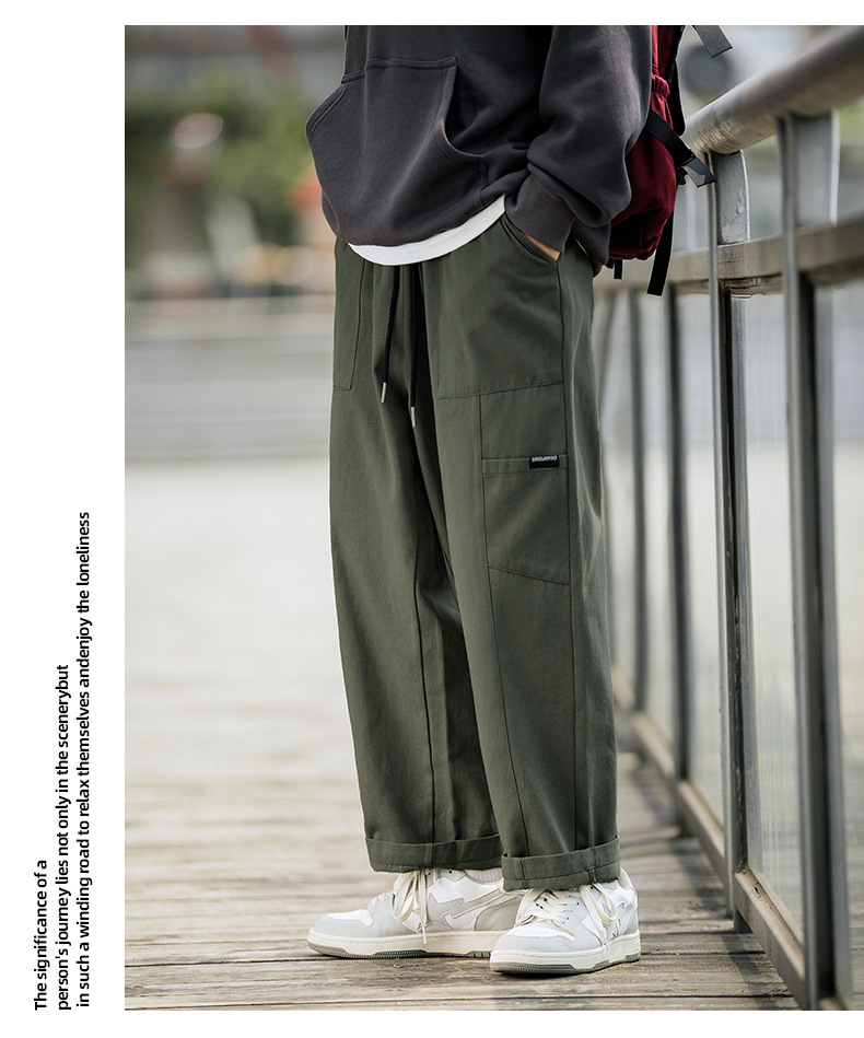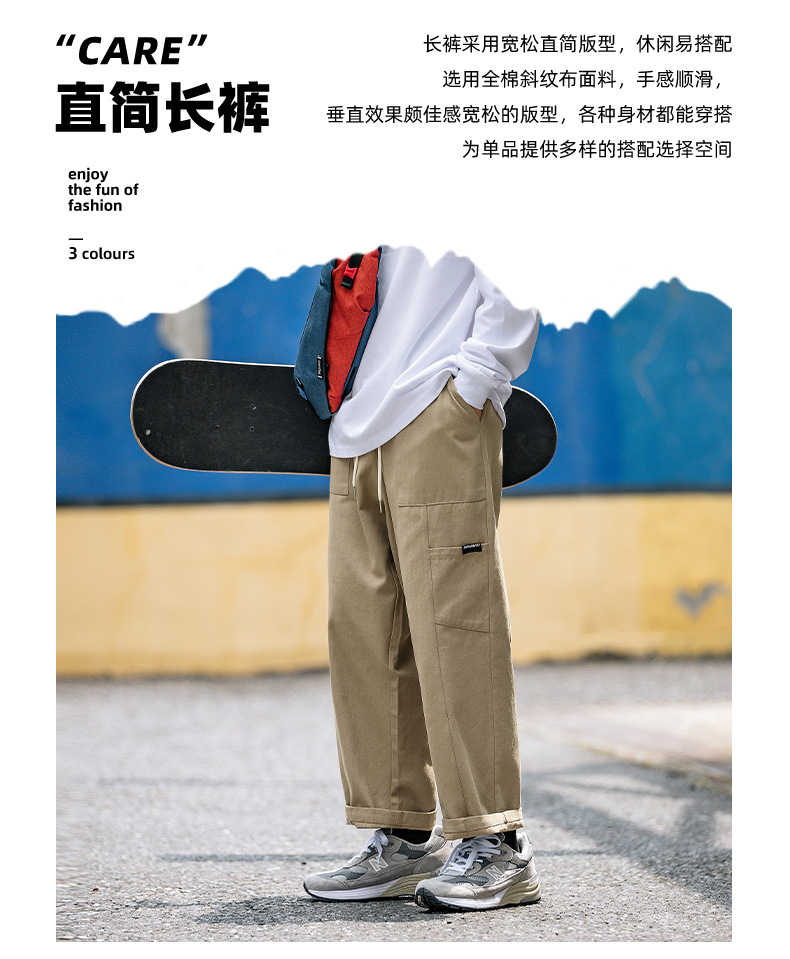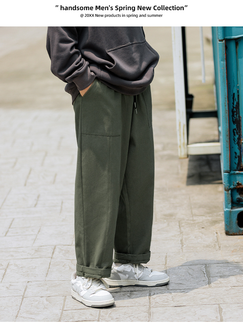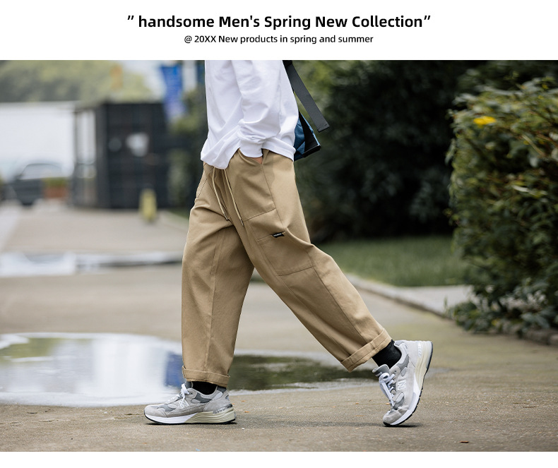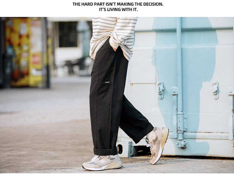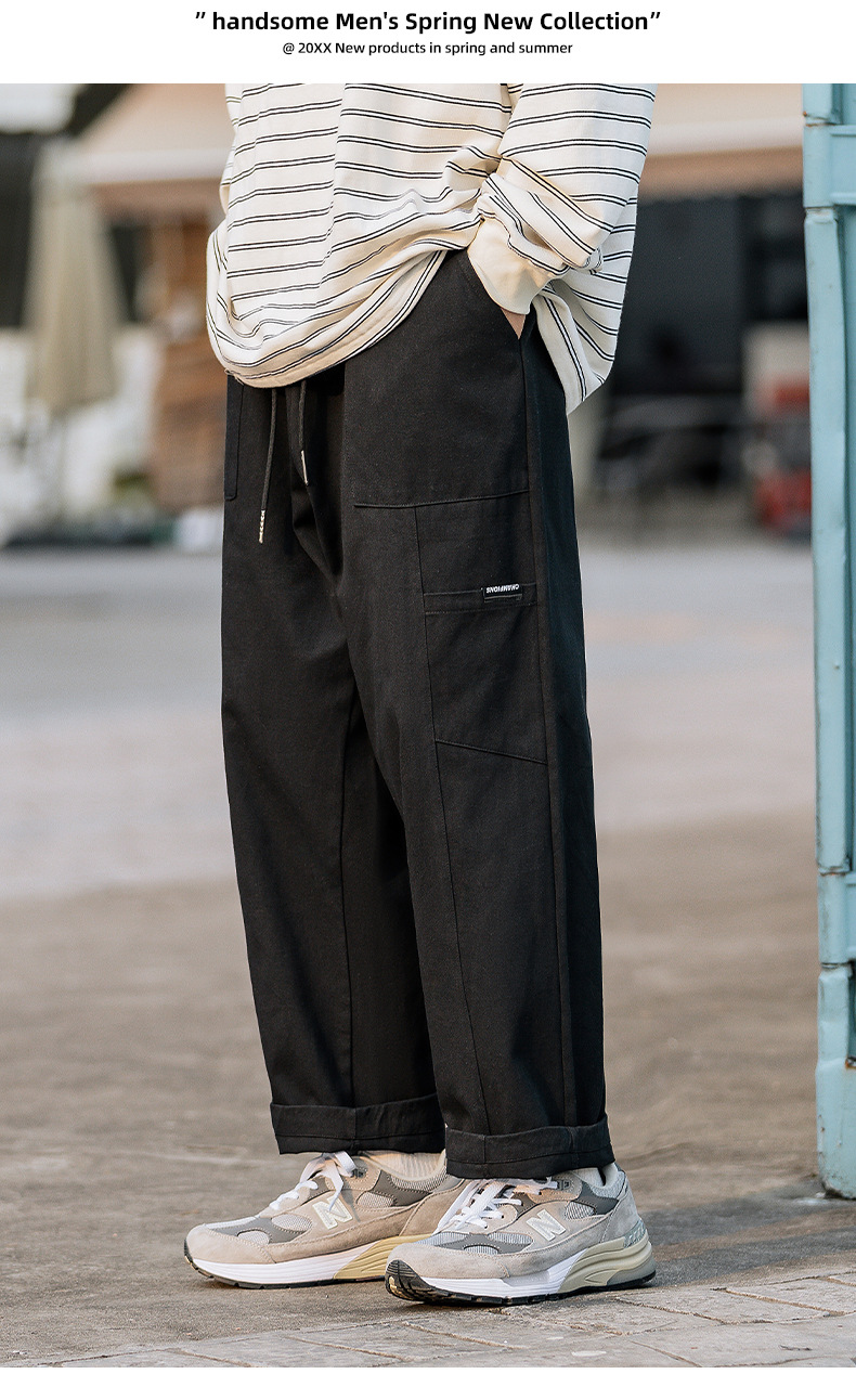 Hanlu ropa de trabajo para hombres pantalones casuales para hombres 2025 primavera nuevo estilo recto costuras con costuras pantalones largos de diseño