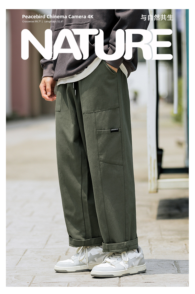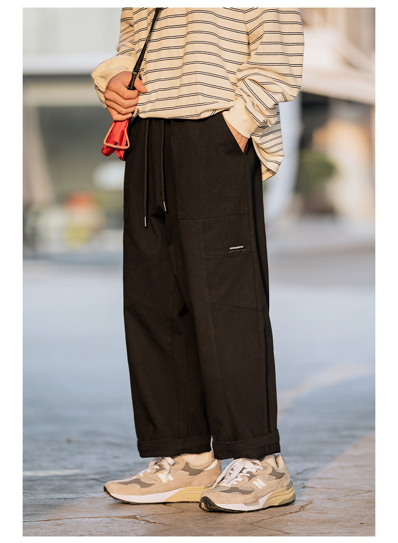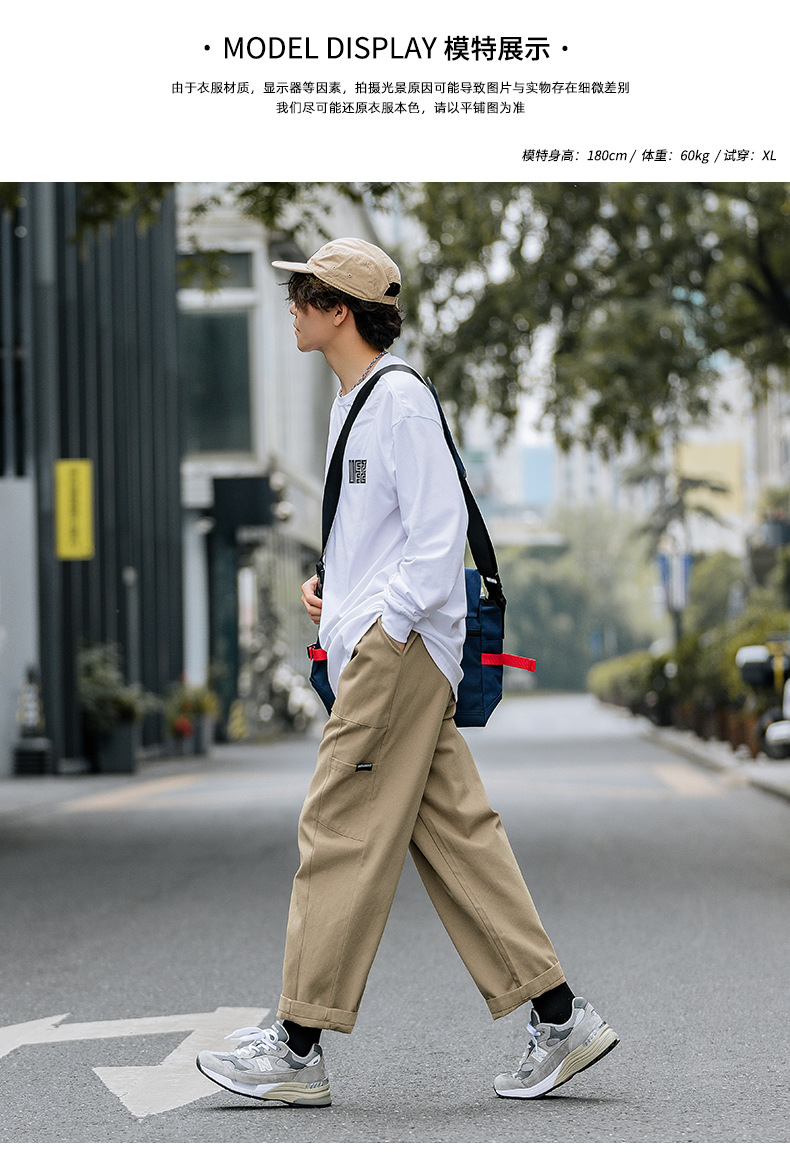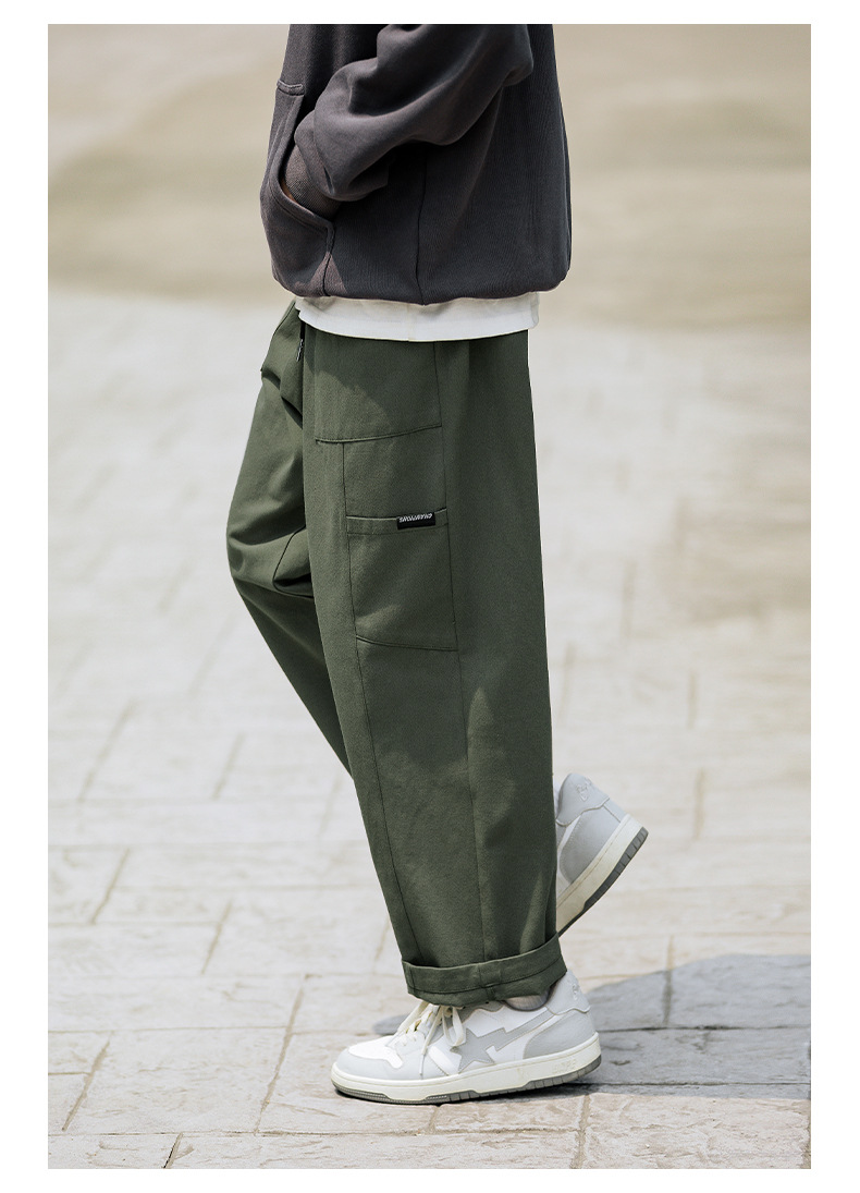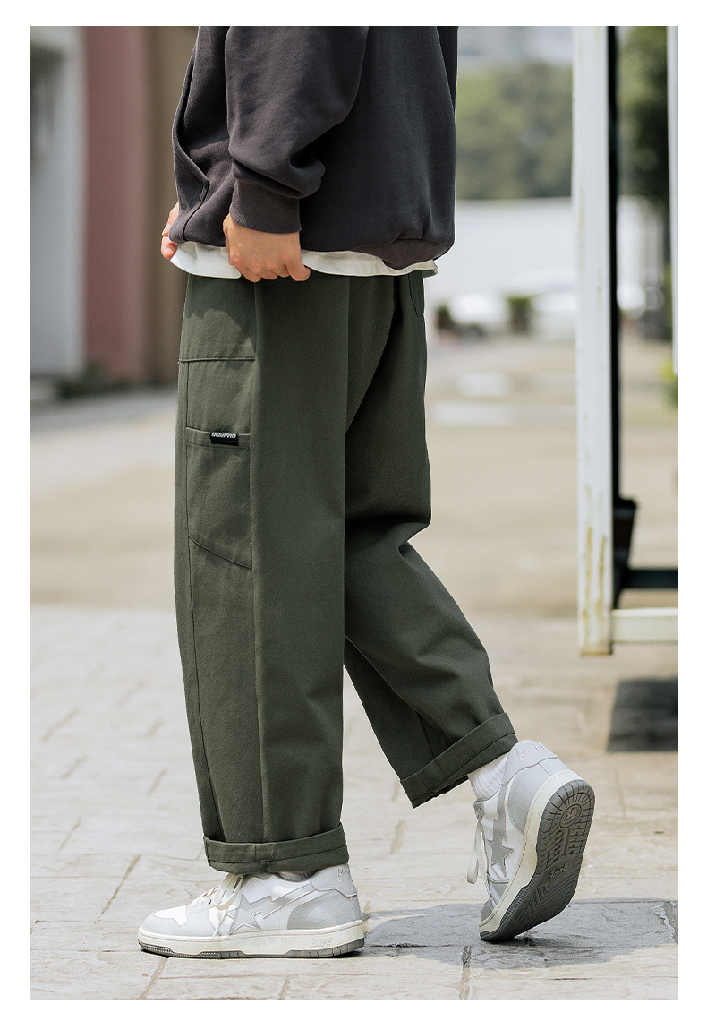 Hanlu ropa de trabajo para hombres pantalones casuales para hombres 2025 primavera nuevo estilo recto costuras con costuras pantalones largos de diseño