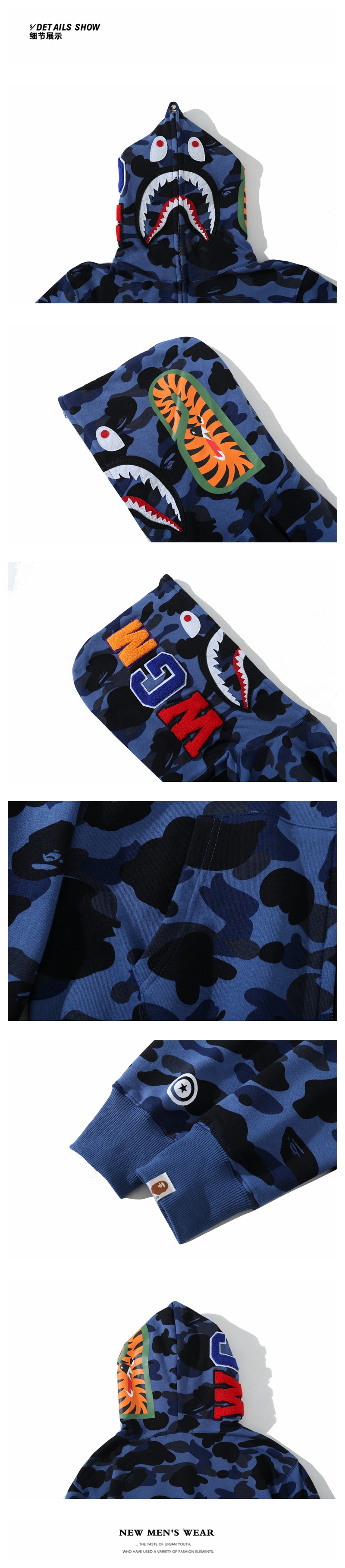 Sudadera de felpa con cabeza de tiburón de marca de moda transfronteriza para hombres y mujeres, sudadera fina de camuflaje informal, chaqueta cárdigan holgada con cremallera