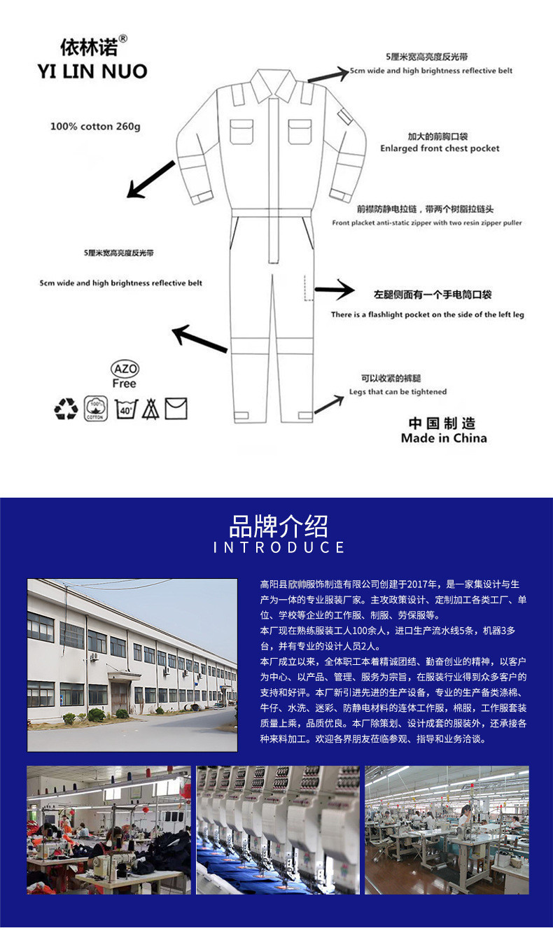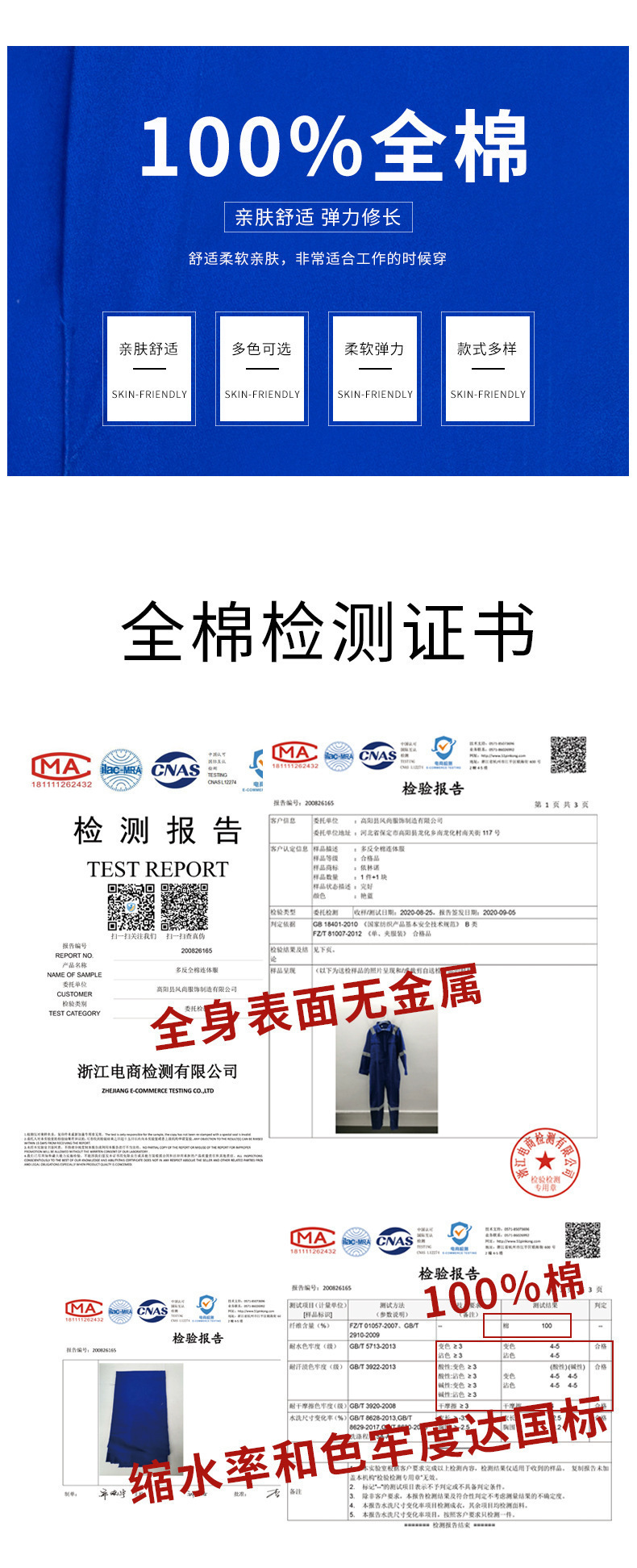 Traje de primavera y otoño de todo el proceso de algodón, traje de barco de la tripulación de envío, mono de algodón puro, comercio de exportación