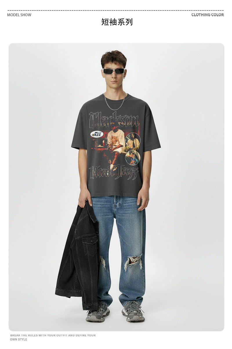 Transfronterizo Clarkson Clarkson camiseta de estrella retro estadounidense de manga corta con estampado