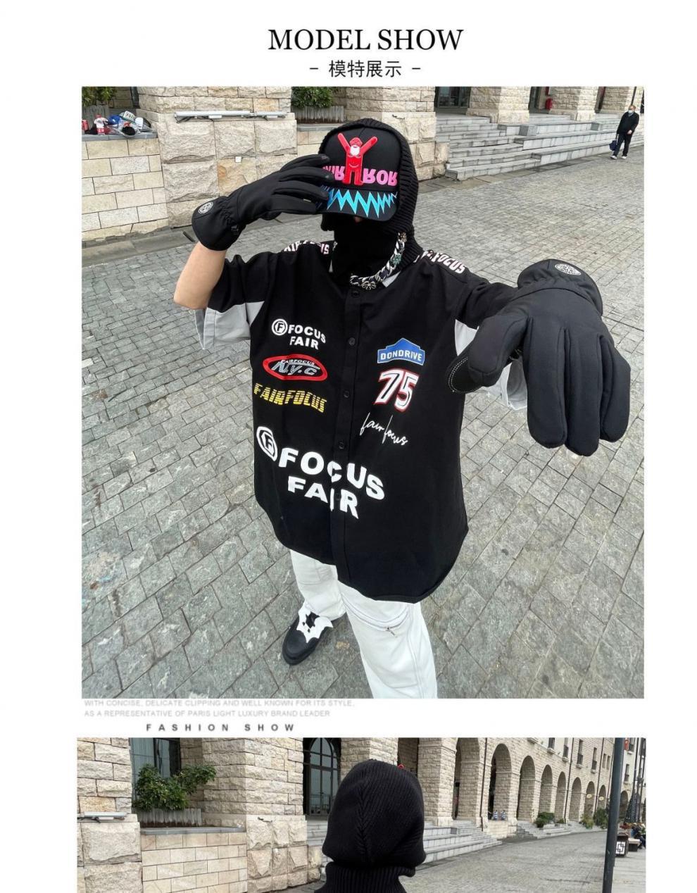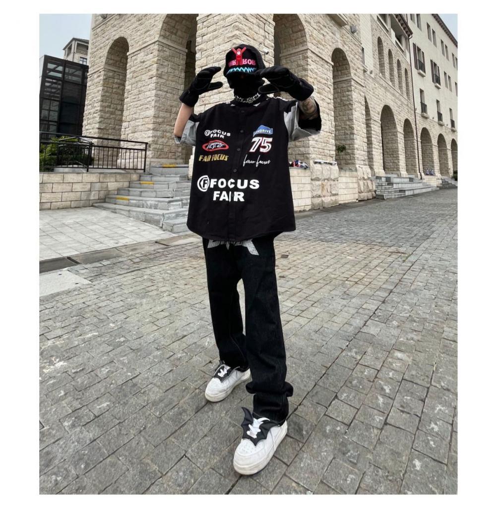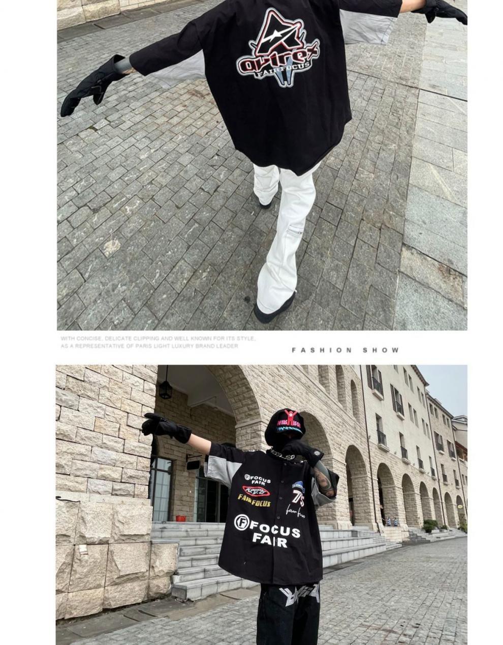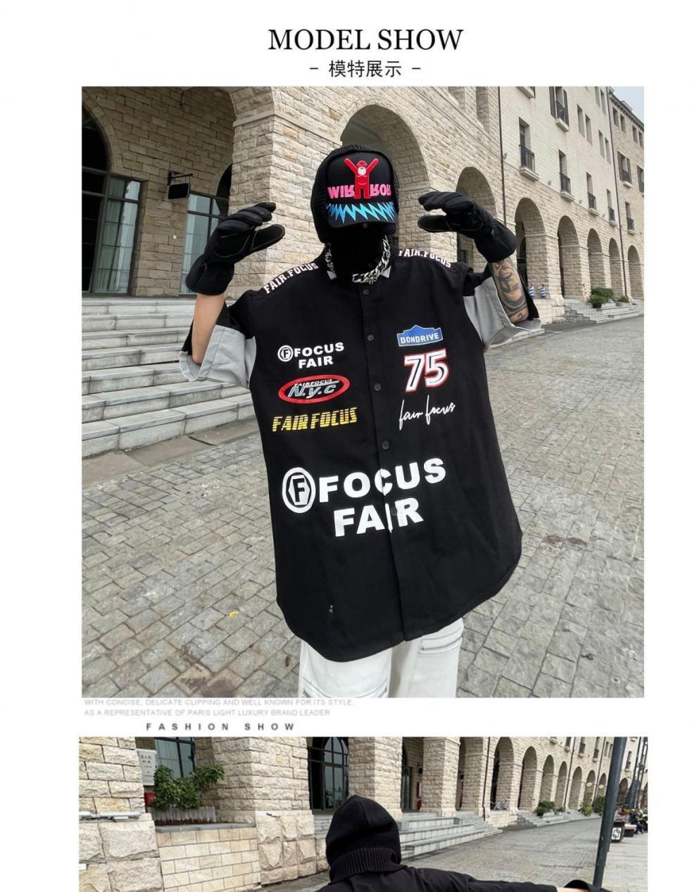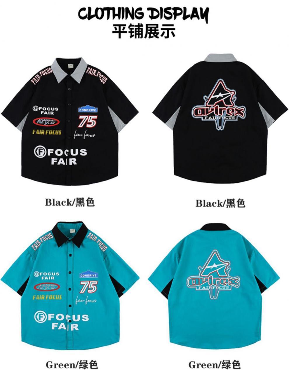 2024SS hip hop retro impresión digital coche de carreras herramientas suelta camisa de manga corta pareja motocicleta camisa de media manga