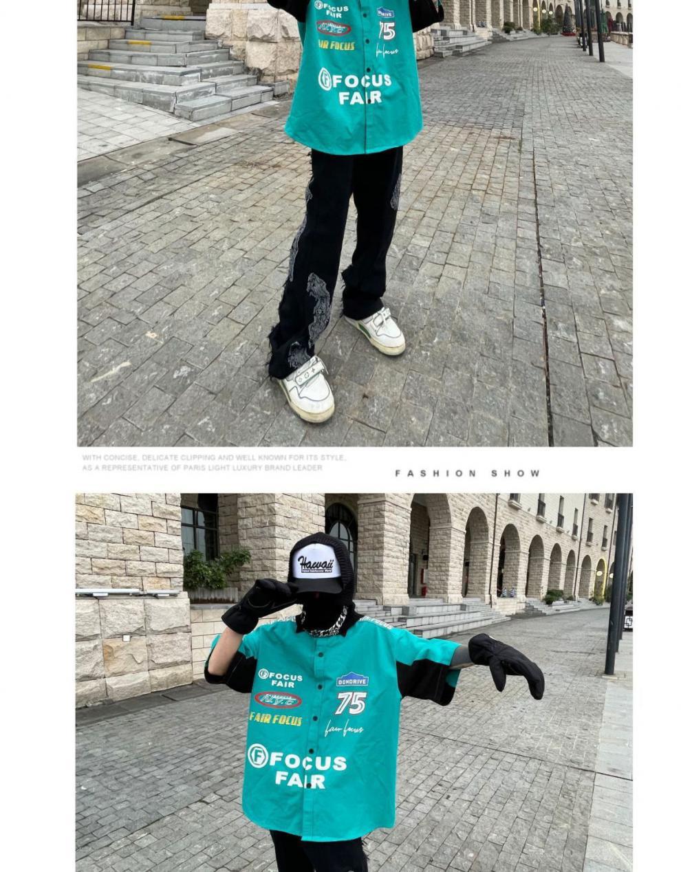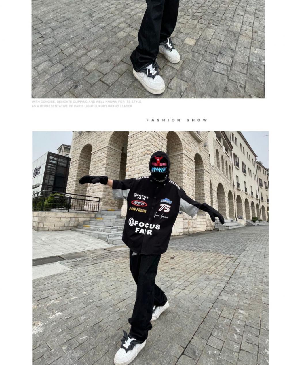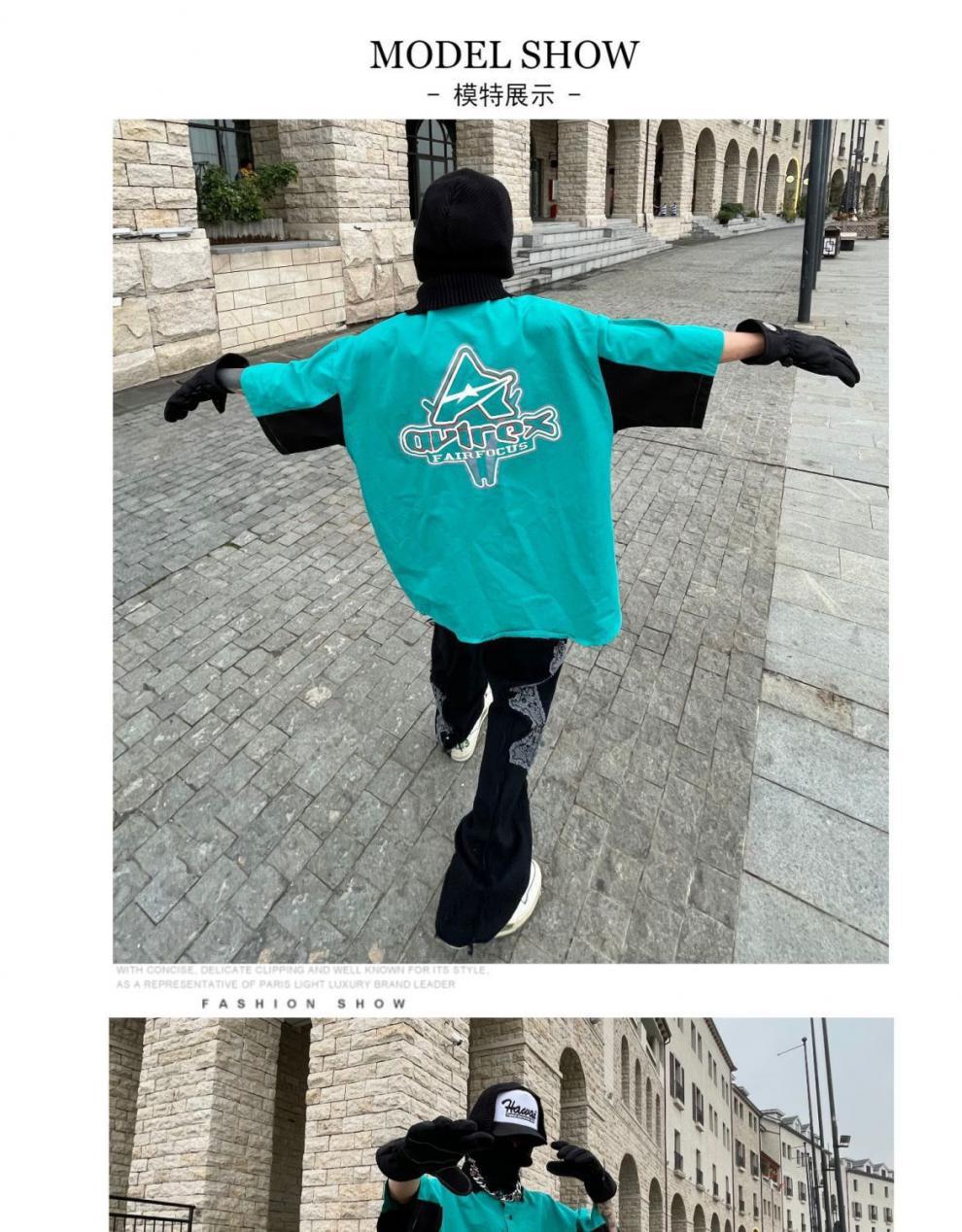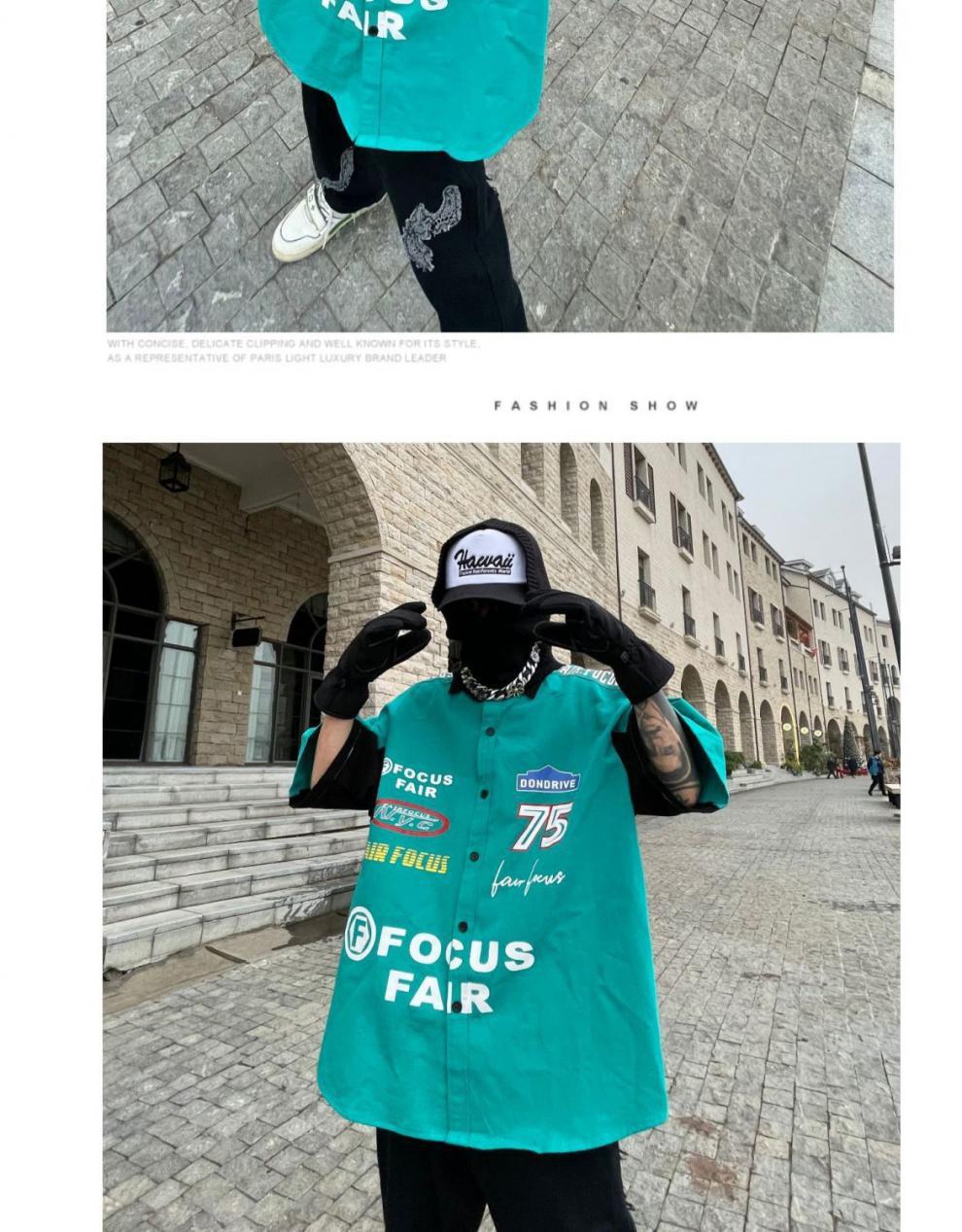 2024SS hip hop retro impresión digital coche de carreras herramientas suelta camisa de manga corta pareja motocicleta camisa de media manga