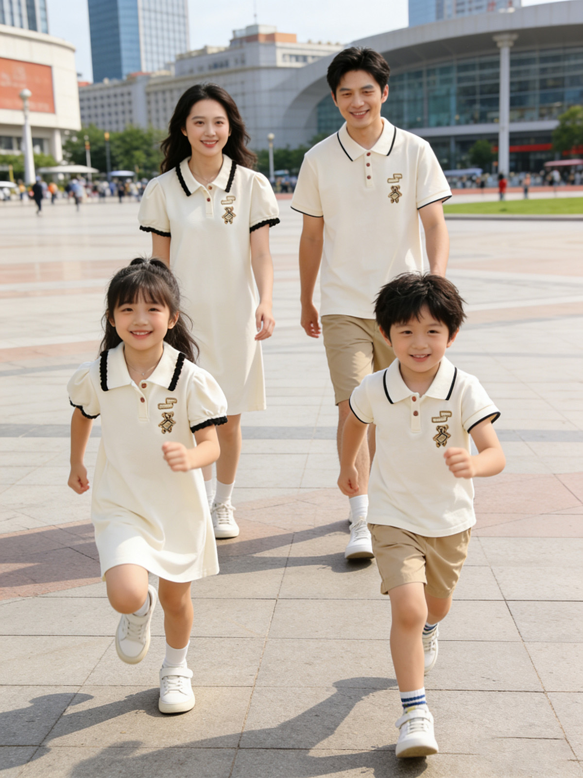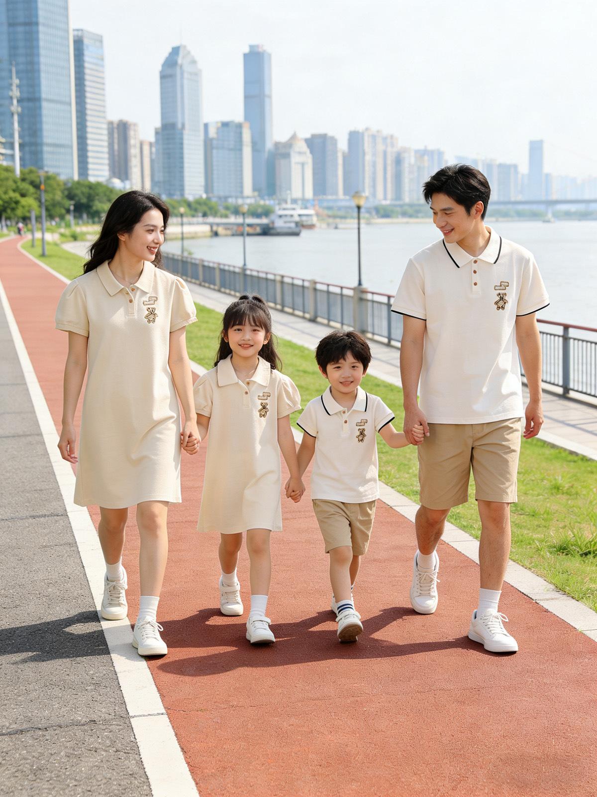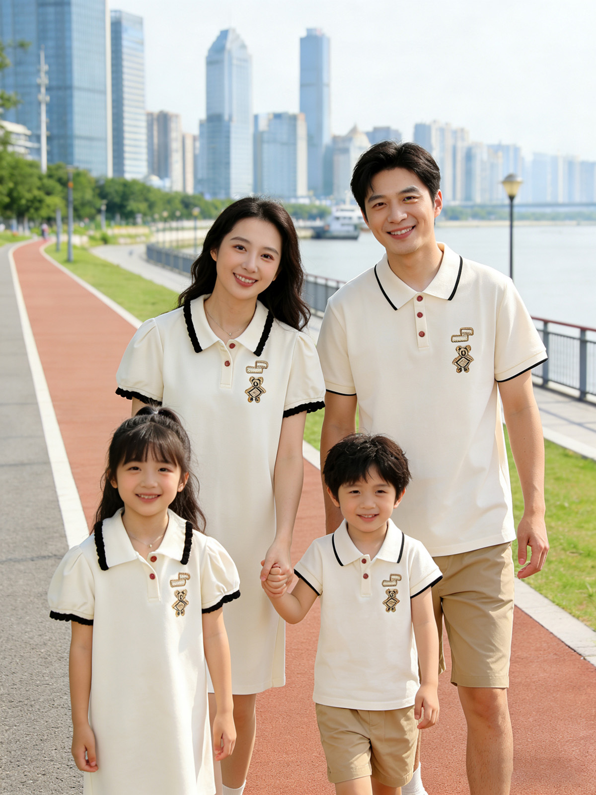Oso bordado ropa padre-hijo verano una familia tres o cuatro madre-hijo madre-hija vestido bebé mameluco POLO solapa manga corta