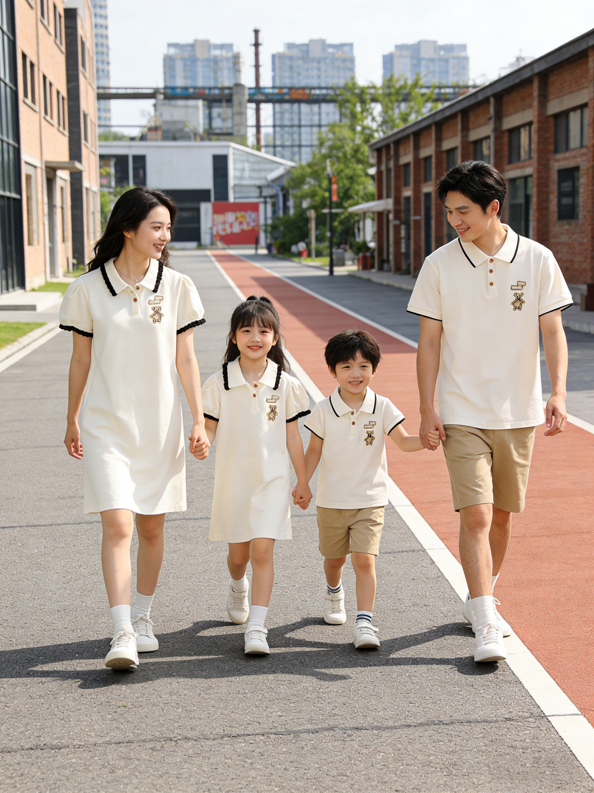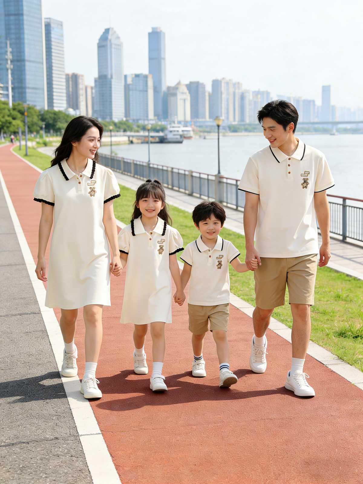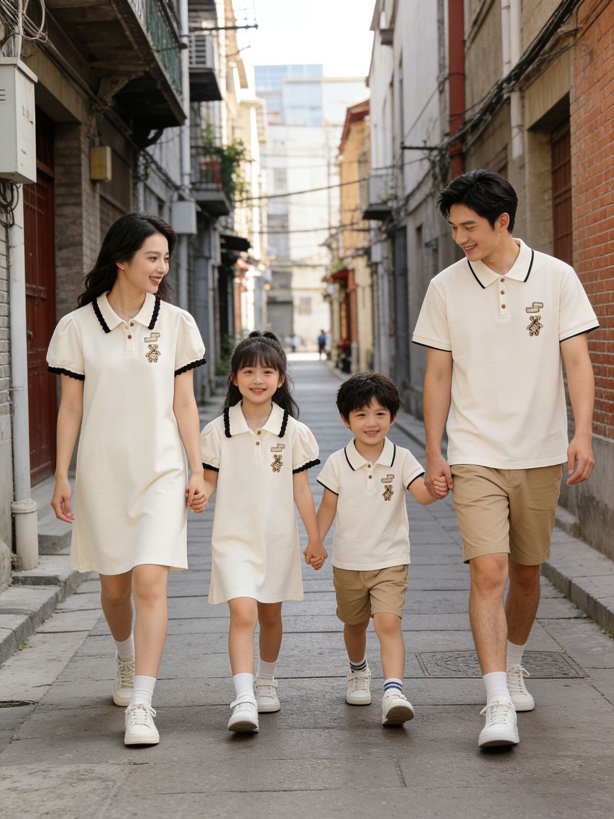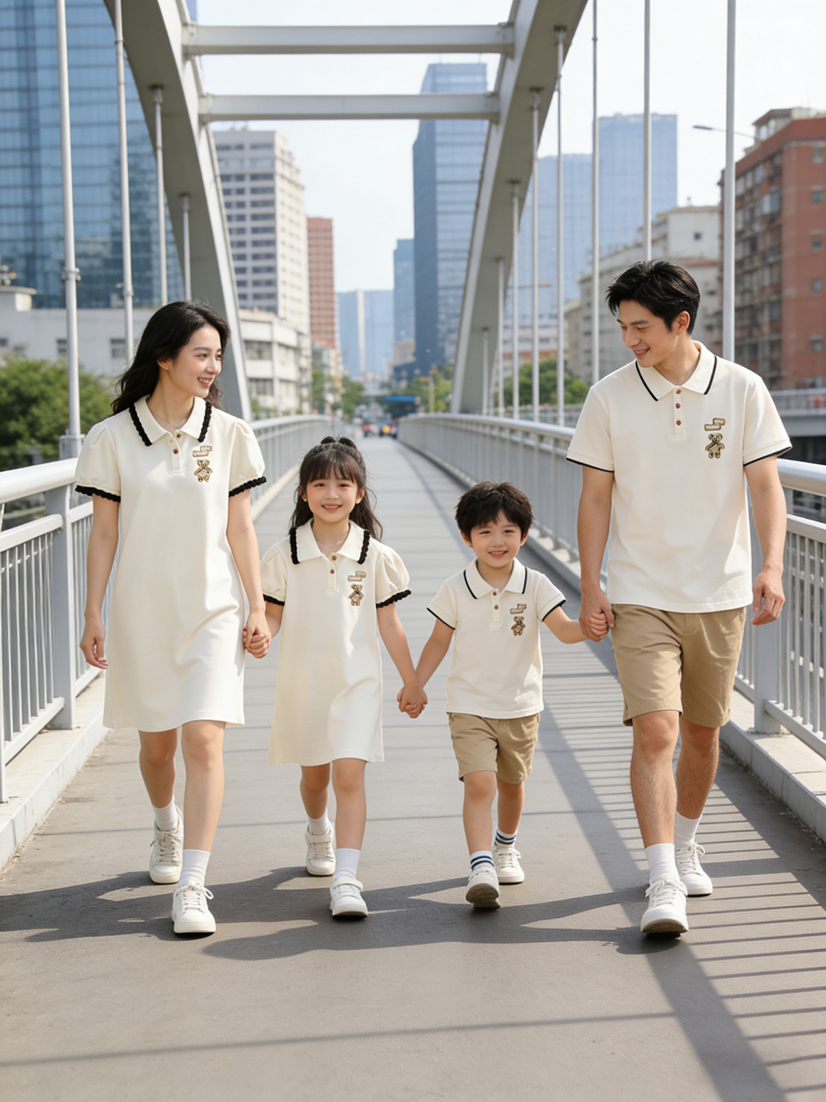 Oso bordado ropa padre-hijo verano una familia tres o cuatro madre-hijo madre-hija vestido bebé mameluco POLO solapa manga corta