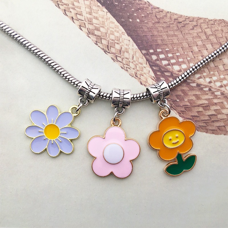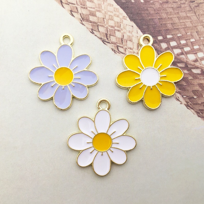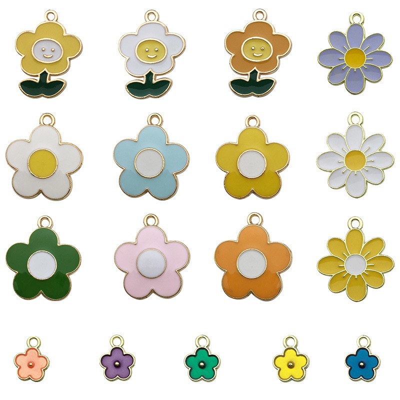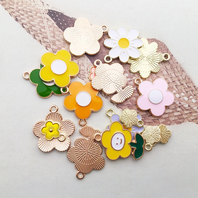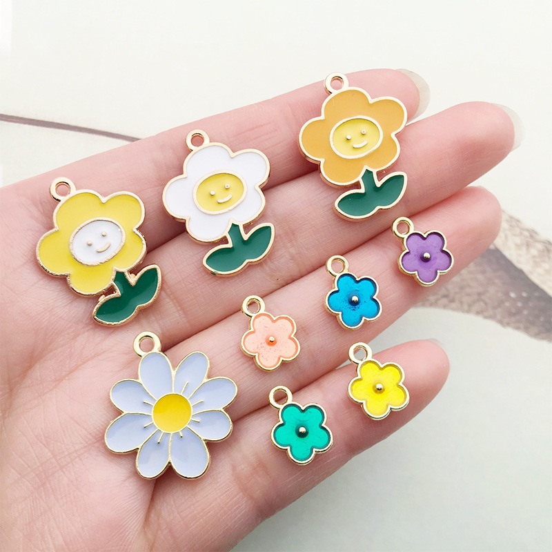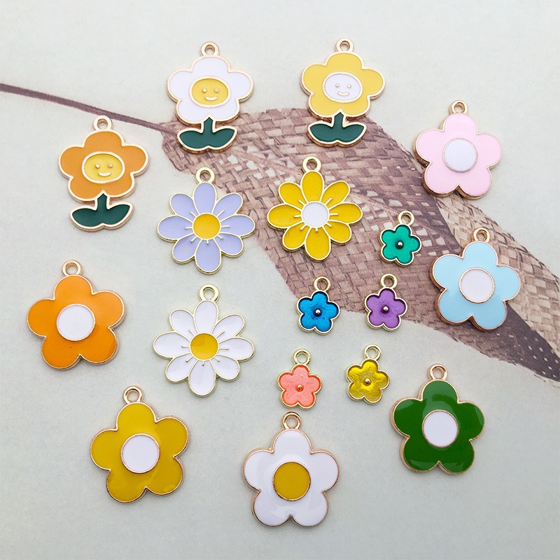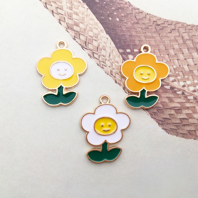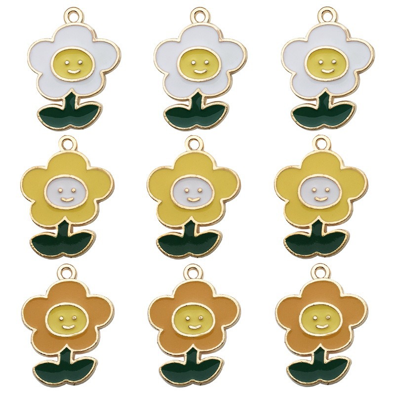 1 gota de aceite flor girasol DIY joyería accesorios aleación color flor collar pendientes colgante estilo coreano
