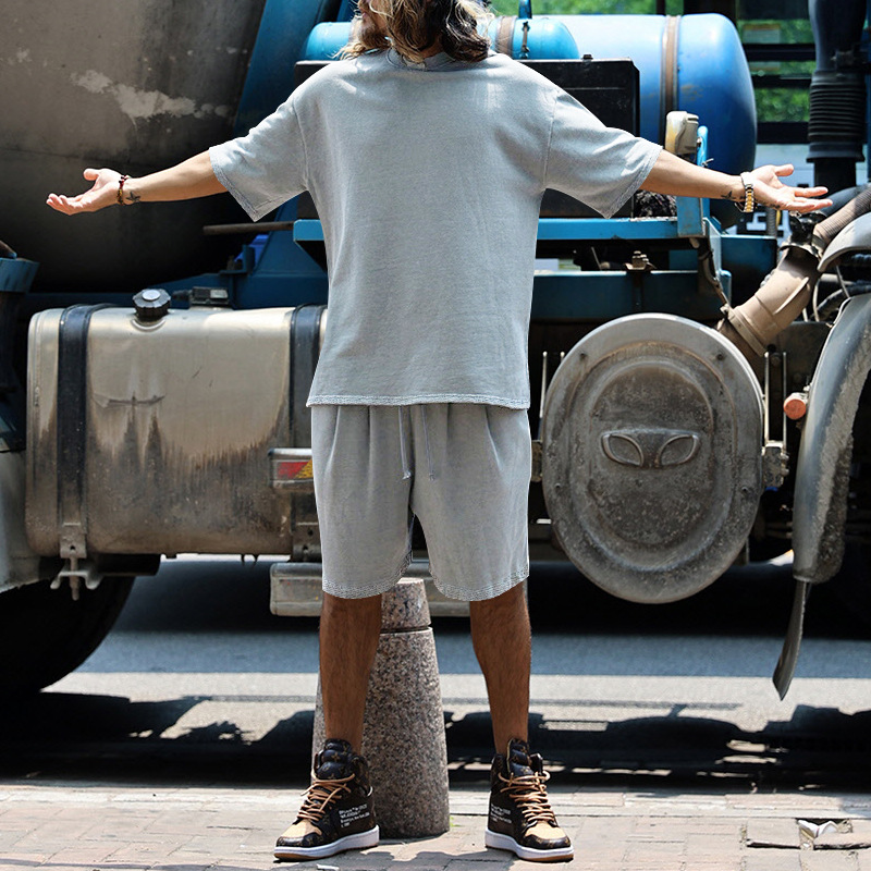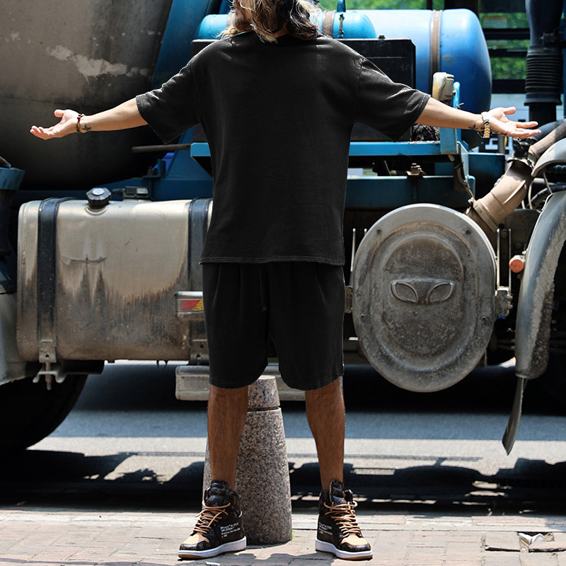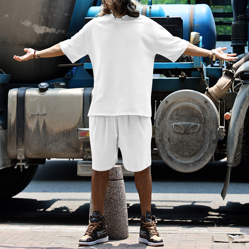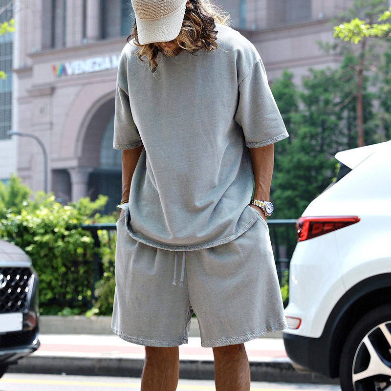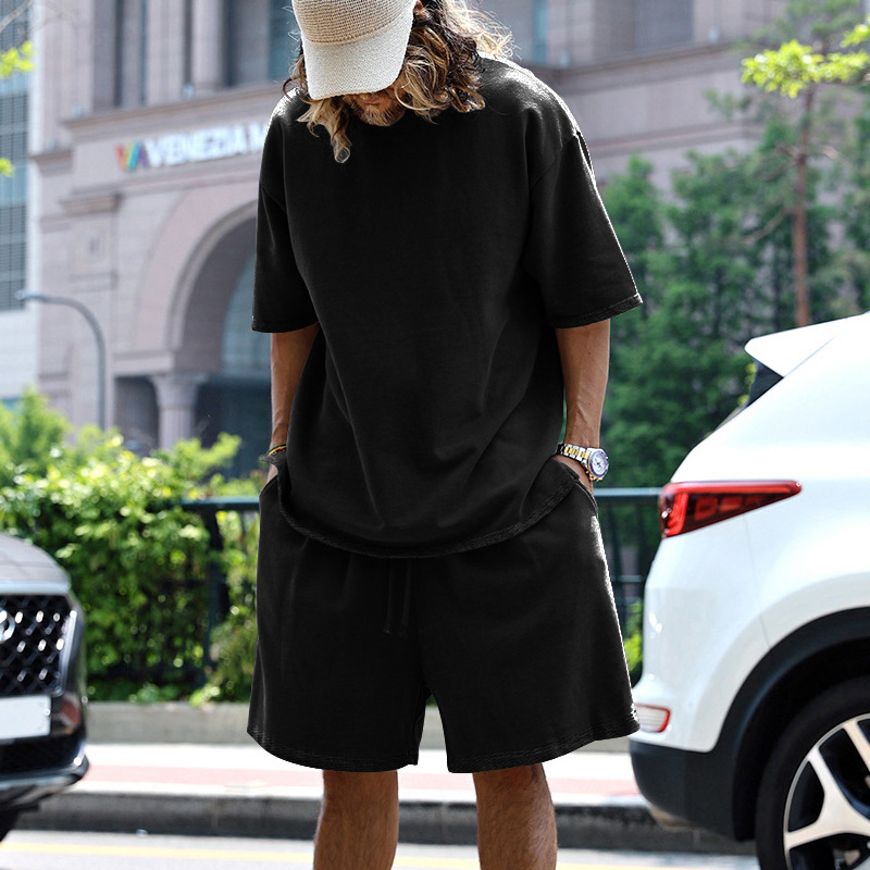 2024 Comercio exterior europeo y americano Amazon más tamaño casual traje de hombre suelto de manga corta para hombre T pantalones cortos de primavera y verano ropa de hombre de color sólido