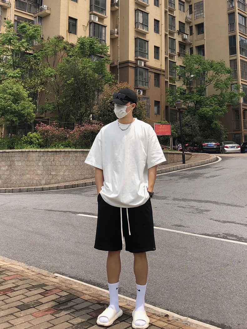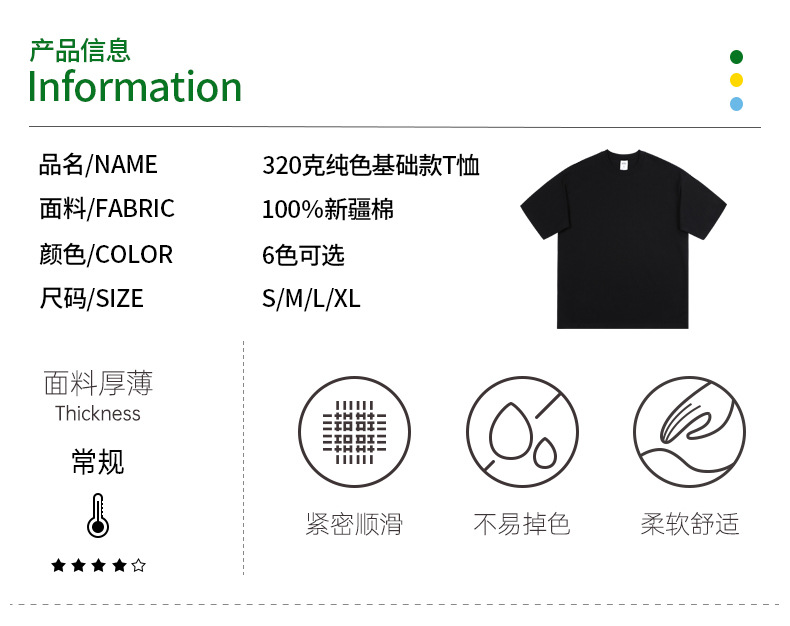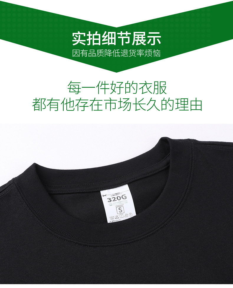320g de alta gama pesada gruesa opaca Camiseta de manga corta de algodón para hombres y mujeres cuello redondo color sólido ropa básica