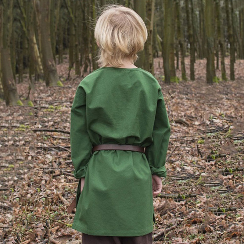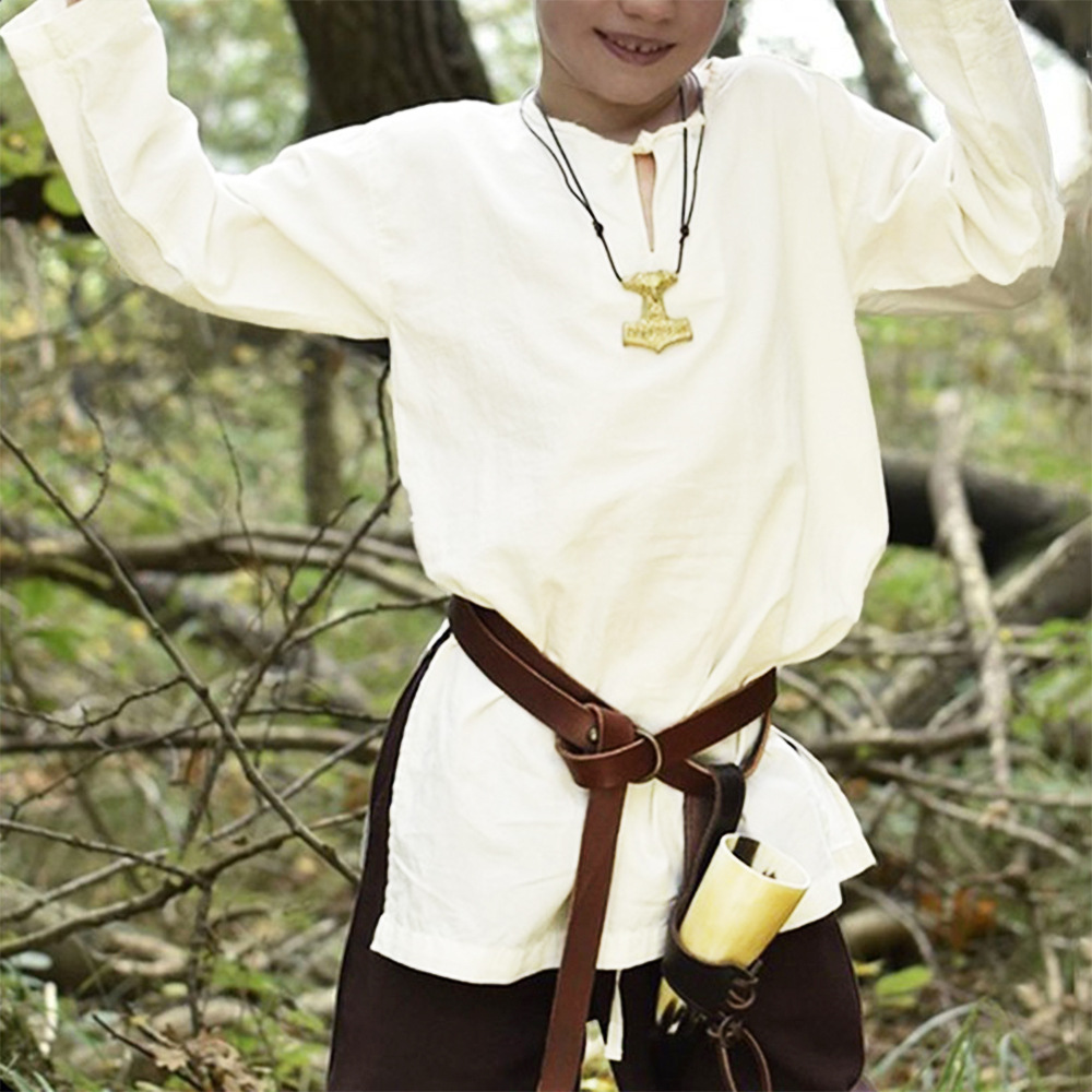 Medieval del muchacho camisa de lino cuello redondo cintura delgada túnica casual retro verano suelta top