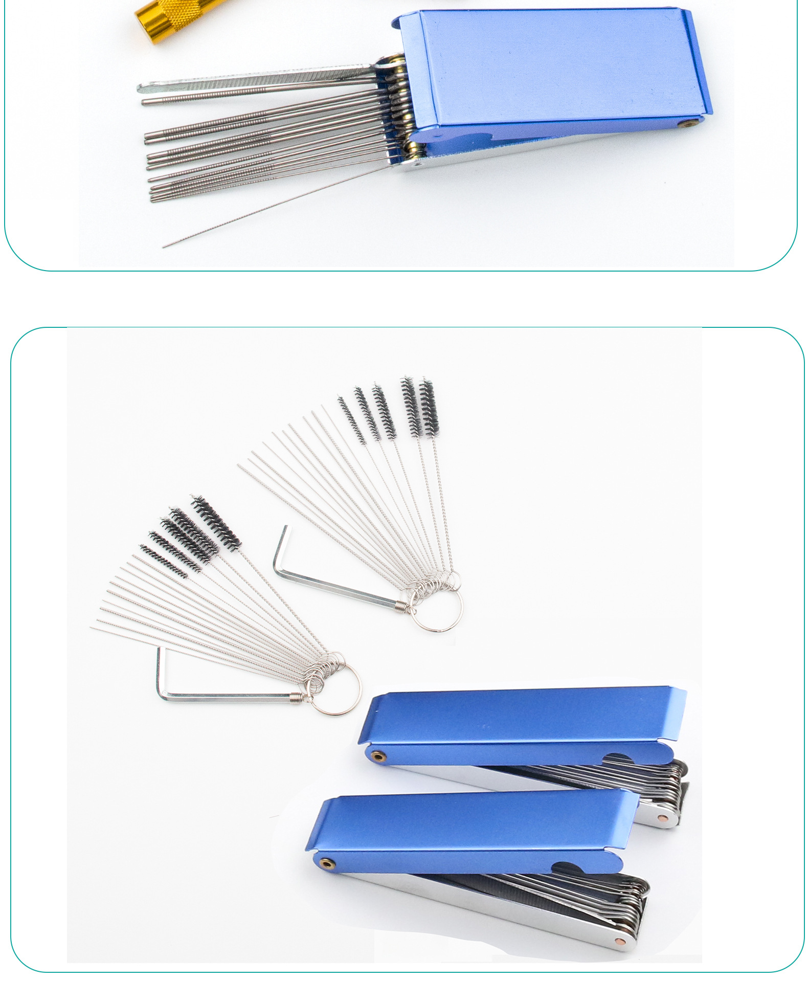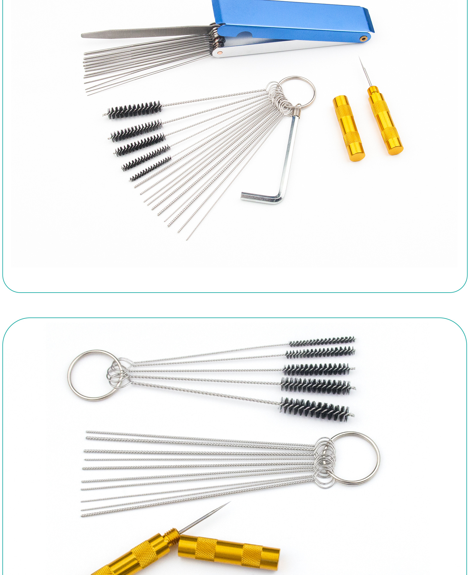 Cepillo de limpieza del carburador, pistola de pulverización, cepillo de limpieza de la pluma, raspador de caja de aluminio de aguja de acero inoxidable