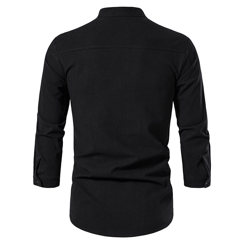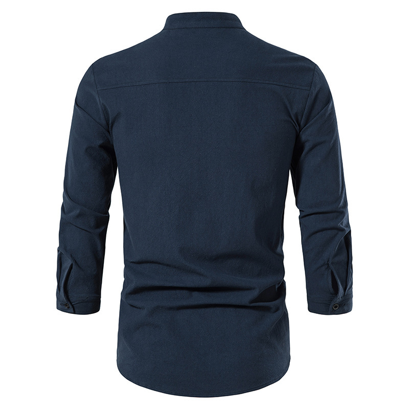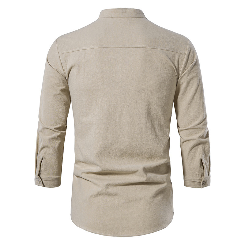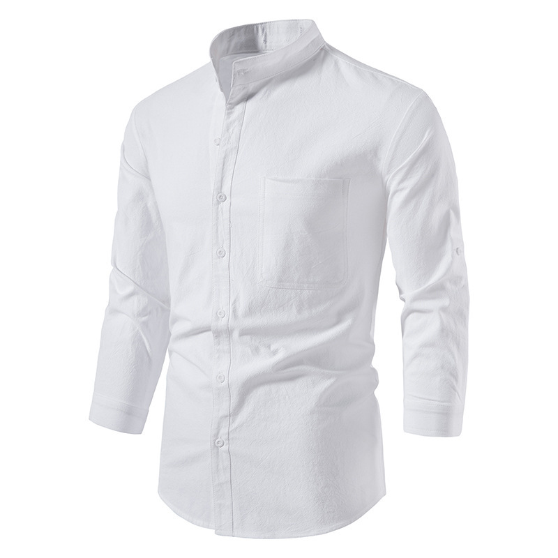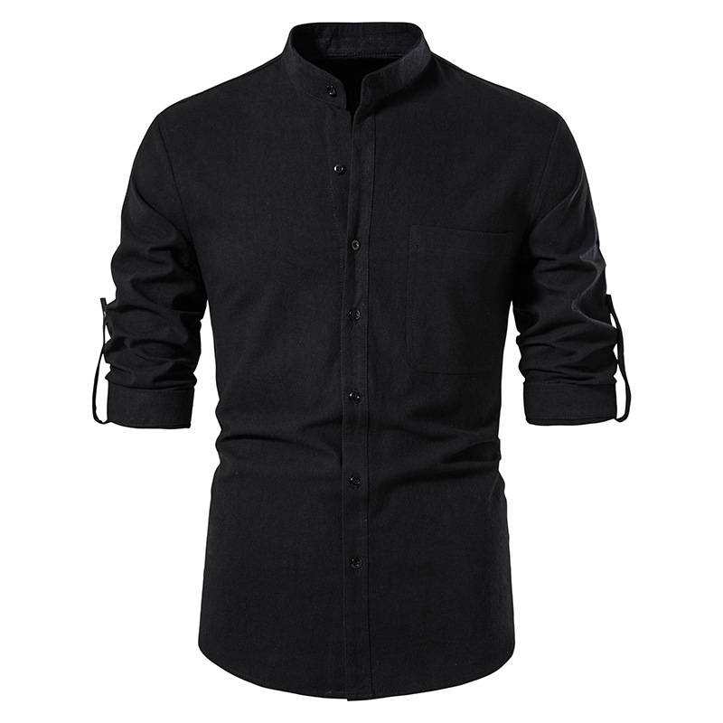2022 Comercio exterior nuevo tamaño europeo hombres de manga larga camisa de lino botón playa yoga casual Camisa de verano A276