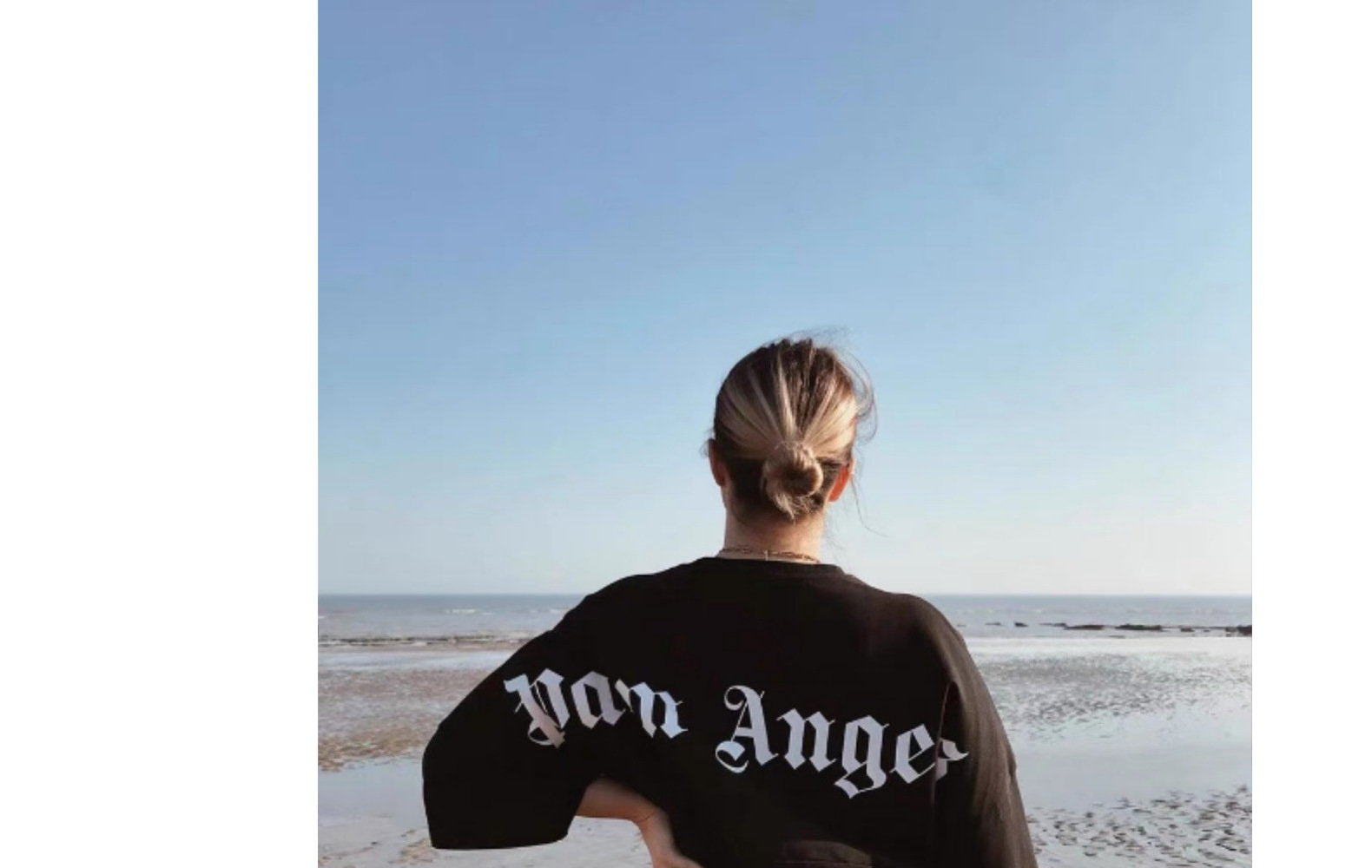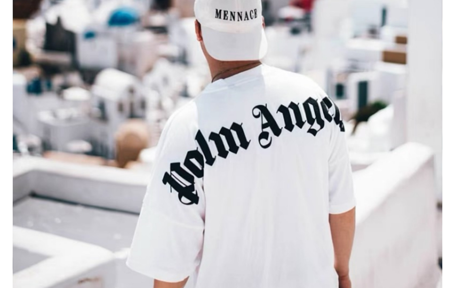 Versión correcta de la camiseta de punto transfronterizo de manga corta con estampado de letras grandes y espuma trasera suelta casual de palm High Street