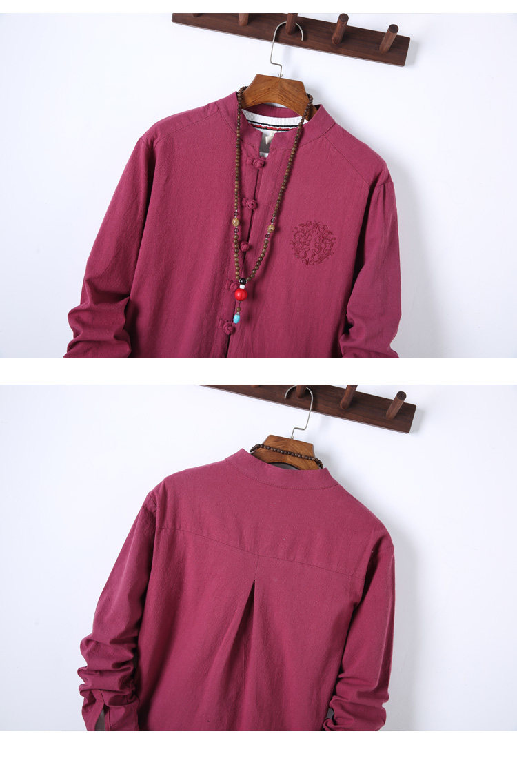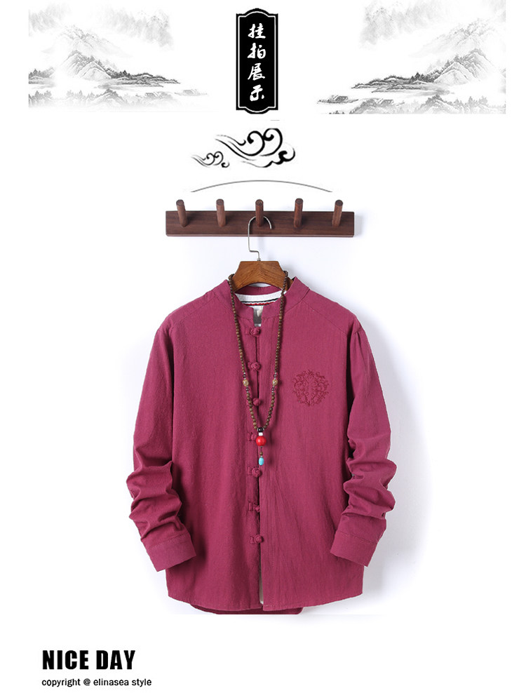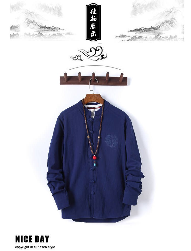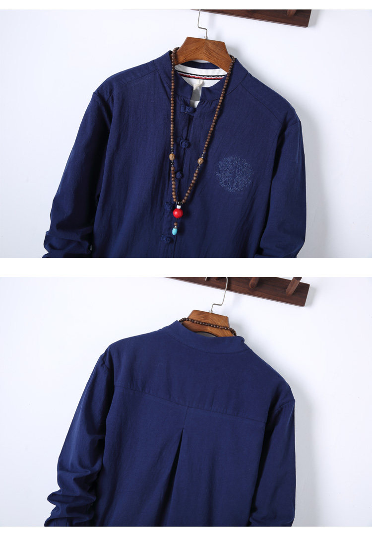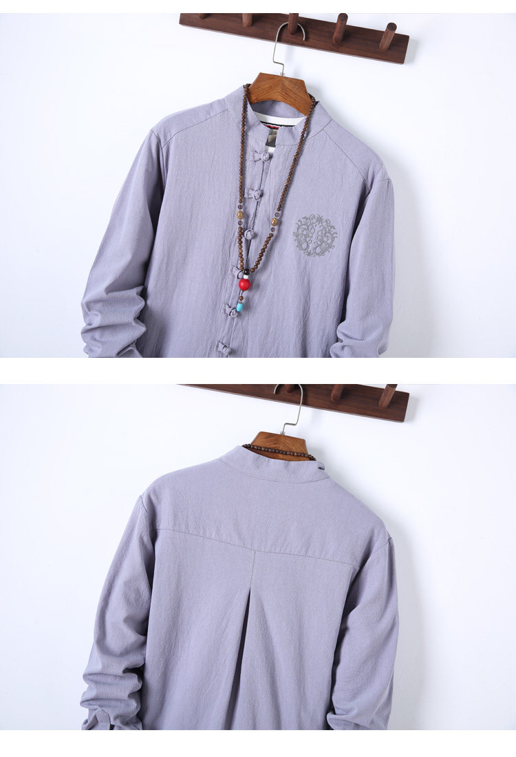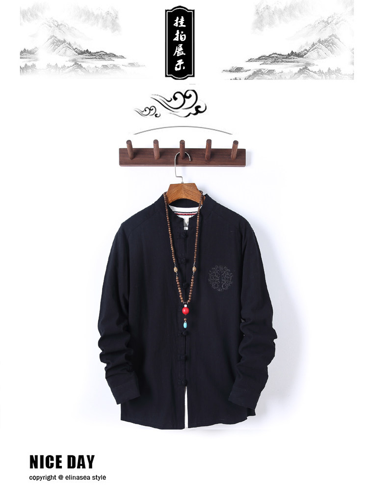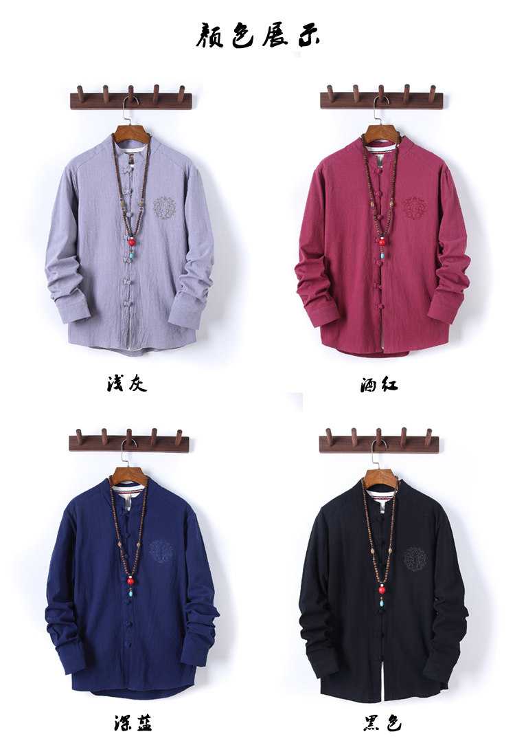 AliExpress 2022 primavera y otoño estilo chino retro camisa de manga larga para hombre cardigan antiguo traje bordado Tang traje Zhongshan