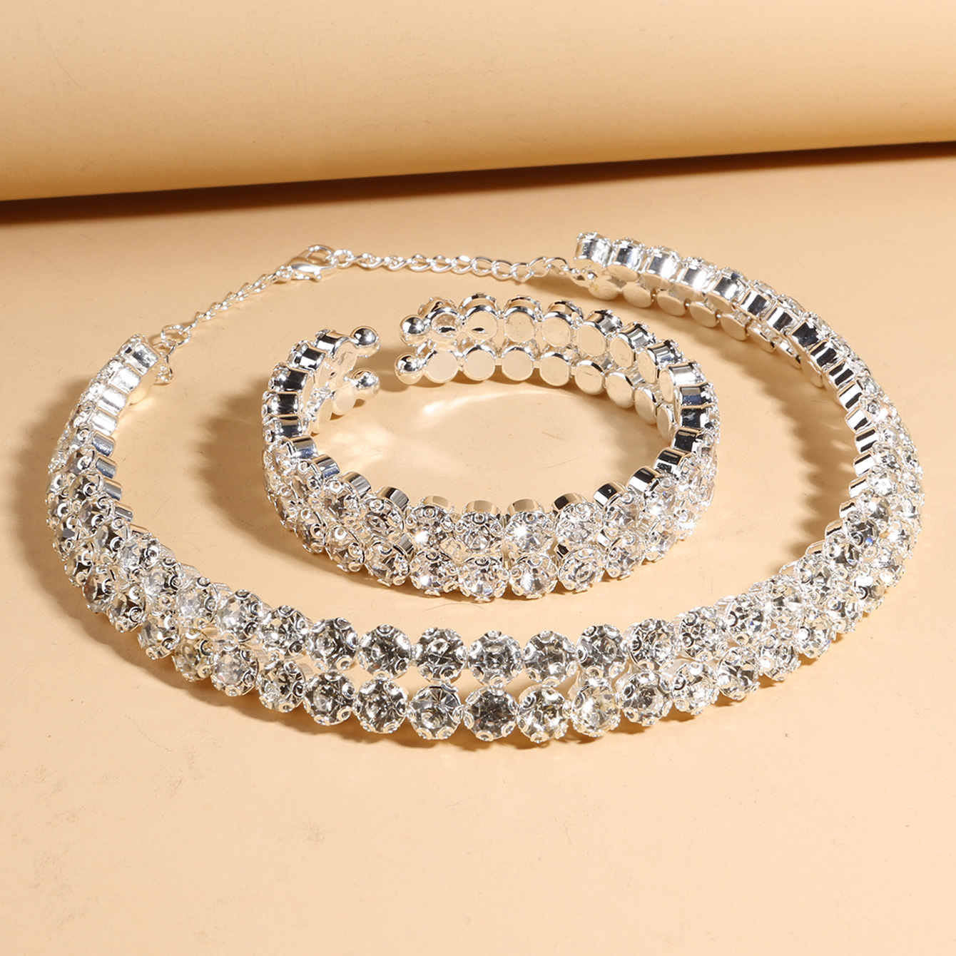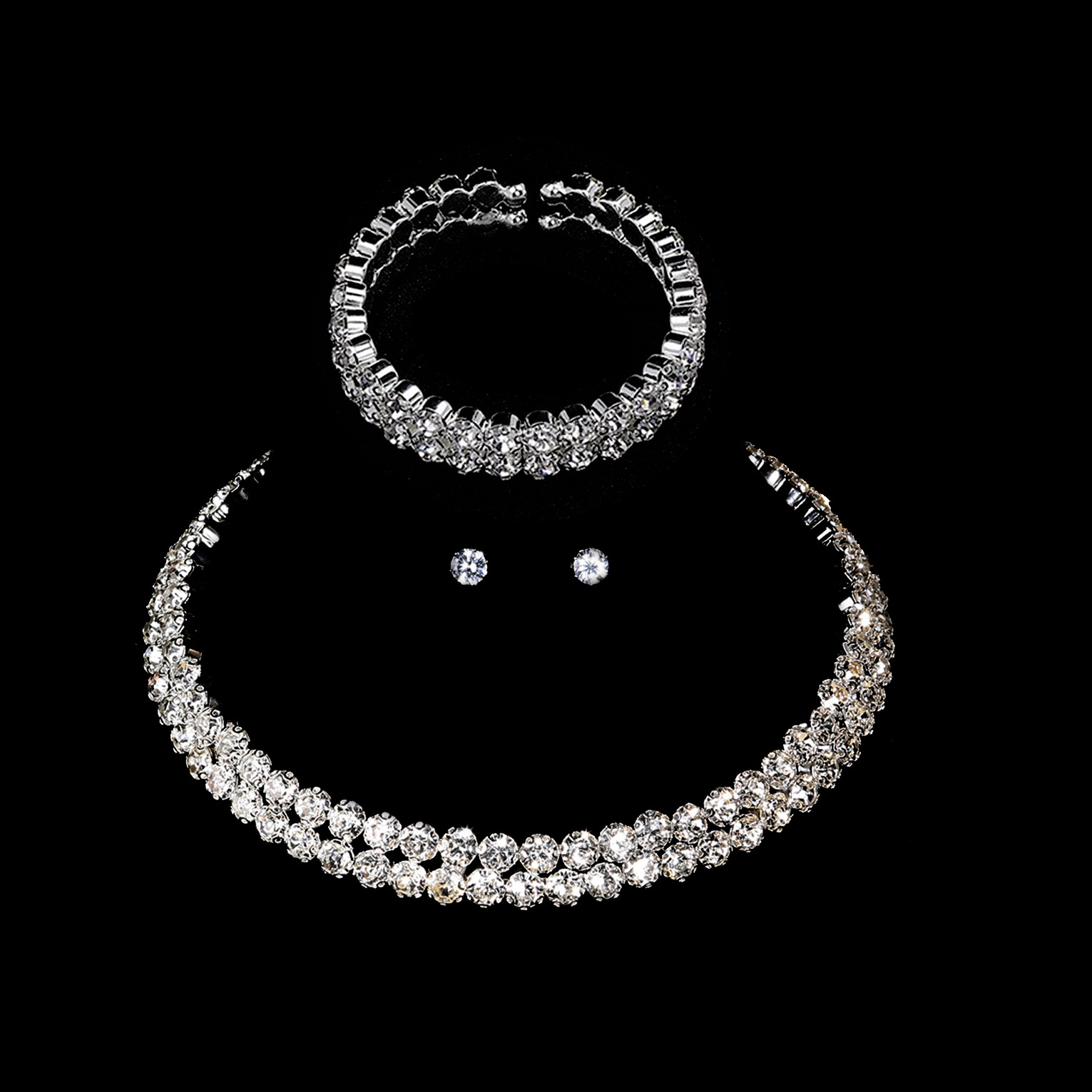 Joyería de la boda collar de cristal de moda pendientes pulsera de tres piezas rhinestone garra cadena diamante collar de la joyería 6197