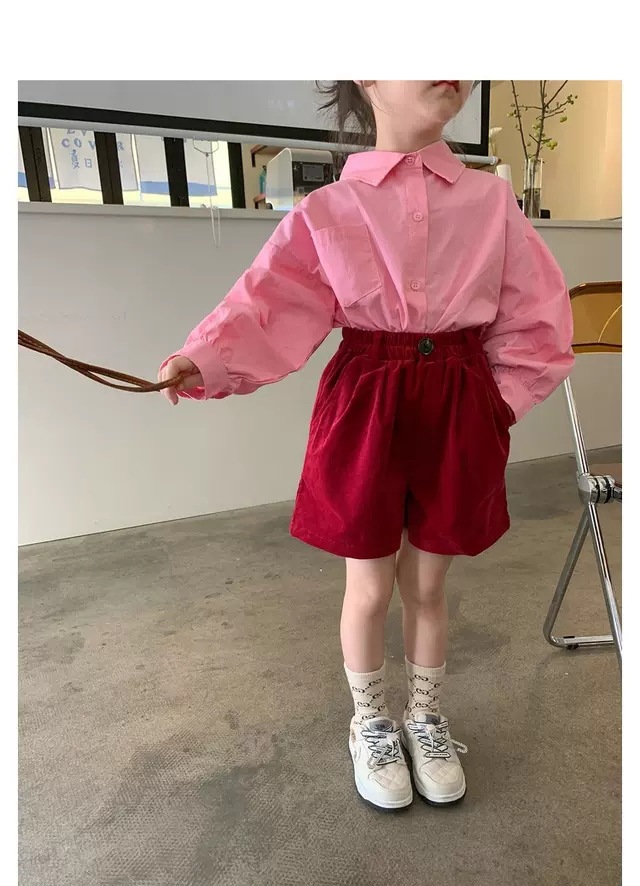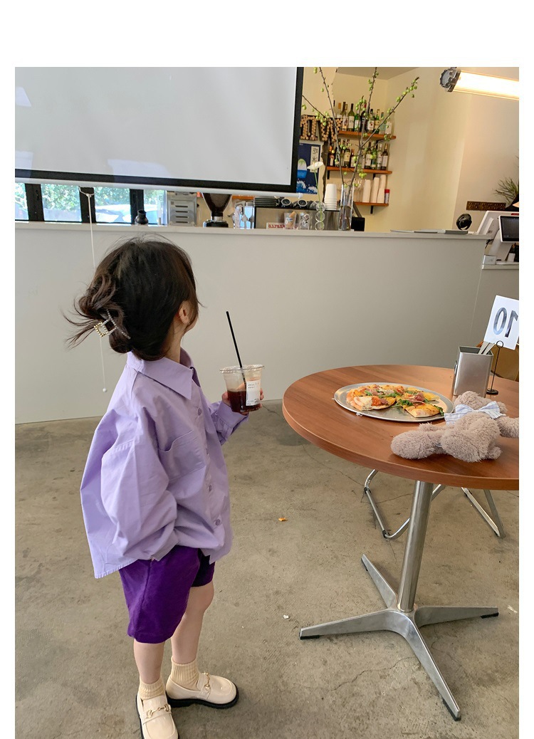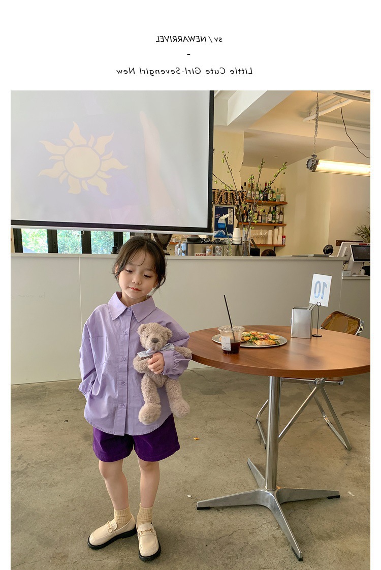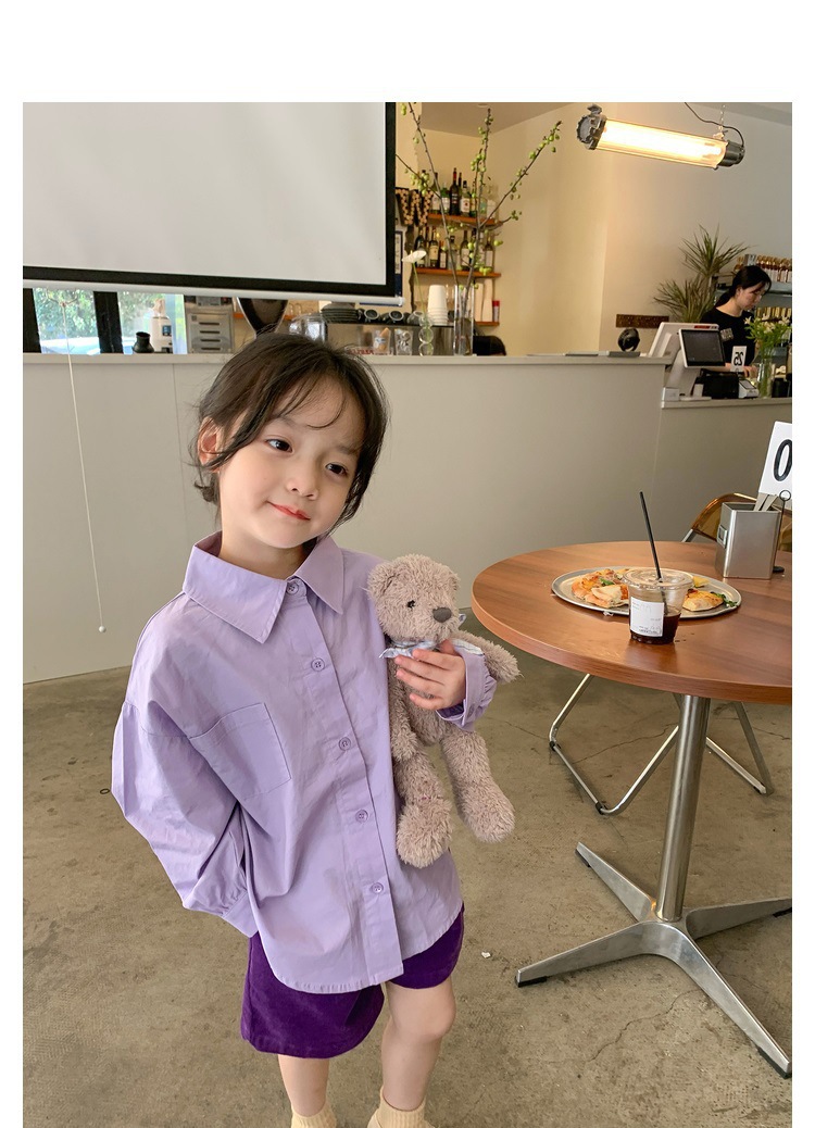 Las niñas de color sólido exterior camisa de moda bebé 2023 primavera y otoño nuevo estilo coreano casual todo-fósforo POLO cuello superior moda