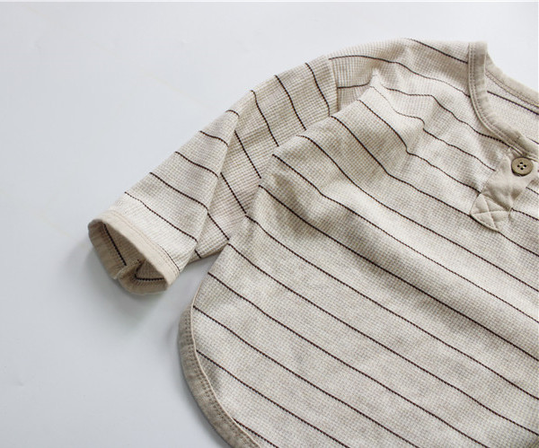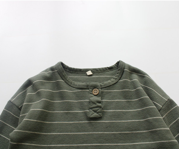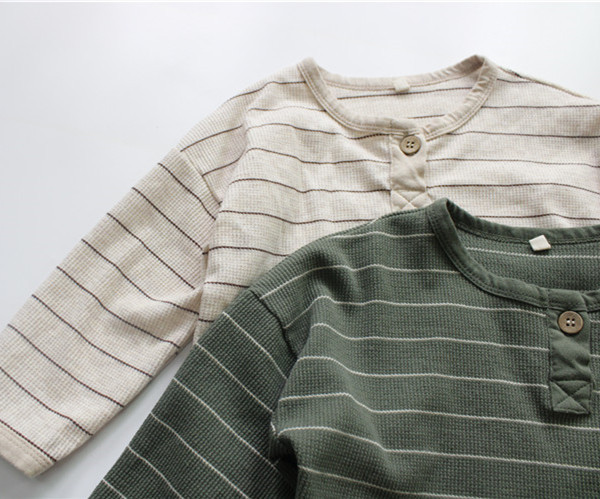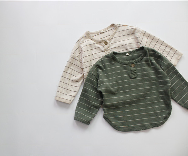 Camiseta de primavera para niños Camiseta de cuello redondo con botón abierto de estilo coreano