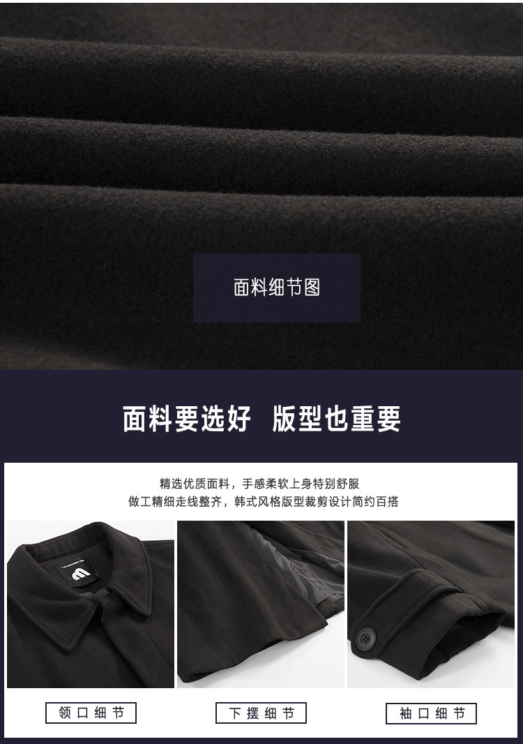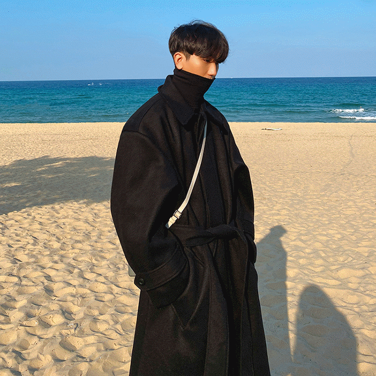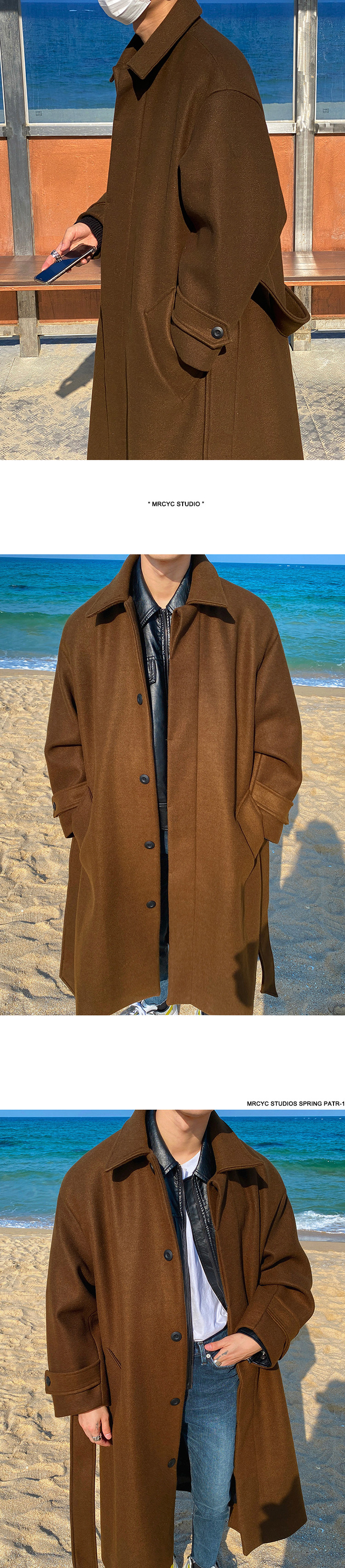 MYQ abrigo de lana de los hombres de otoño e invierno de longitud media suelta sobre la rodilla cazadora estilo coreano británico espesado abrigo de lana