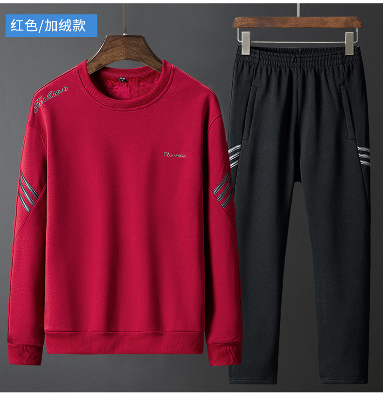 Otoño de los hombres suéter algodón cuello redondo traje 2024 nueva moda guapo bordado casual deportes ropa