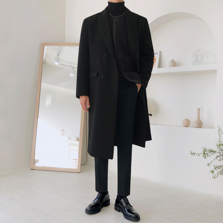 MYQ abrigo de lana de los hombres del Estilo Británico de Corea del estilo de Moda de invierno abrigo de lana de mediados de longitud engrosada gabardina de nylon