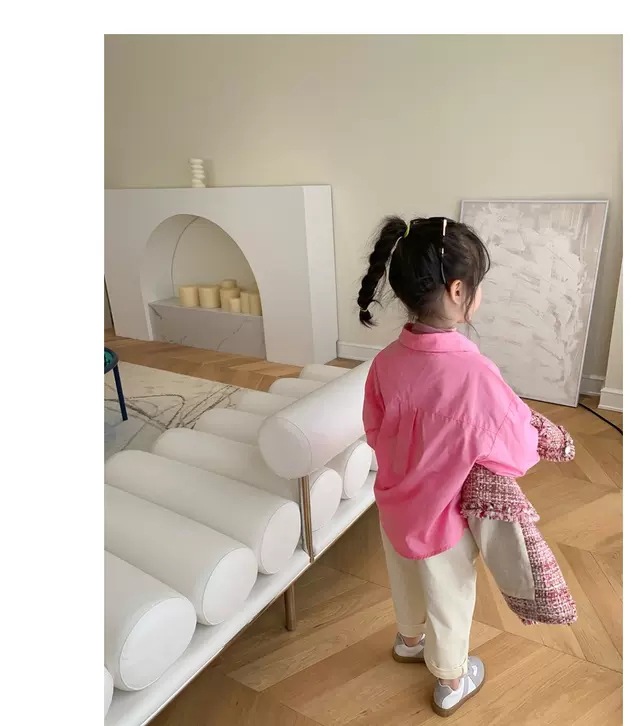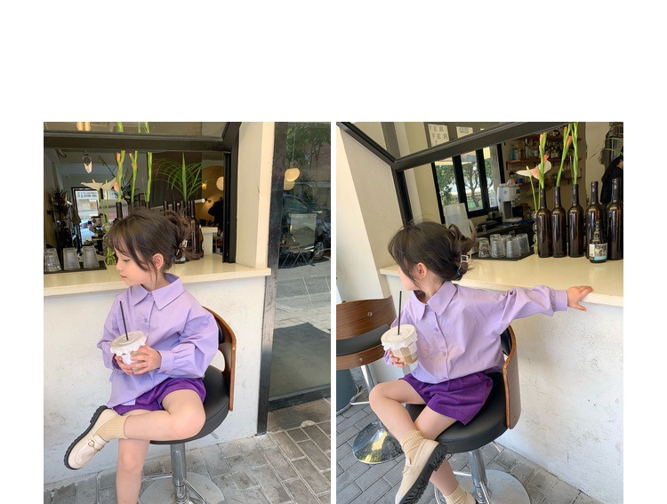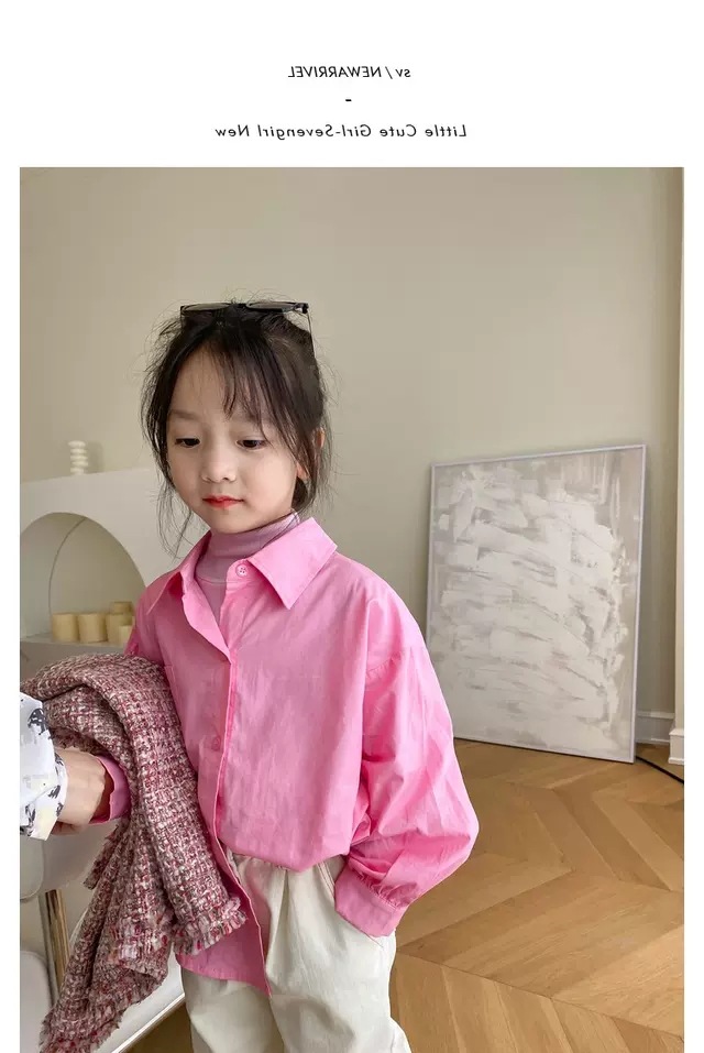 Camisa exterior de color sólido para niñas bebé de moda 2024 primavera y otoño nuevo estilo coreano casual todo fósforo cuello polo superior moda