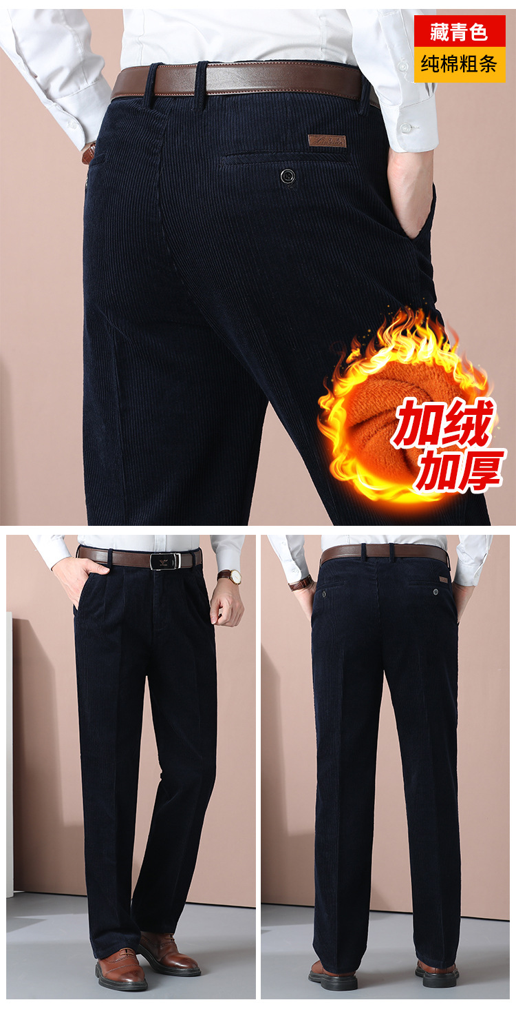 Pantalones de pana gruesos pantalones de pana de algodón puro para hombre otoño e invierno gruesos rectos cintura alta sueltos dobles plisados pantalones de pana con forro polar para hombre