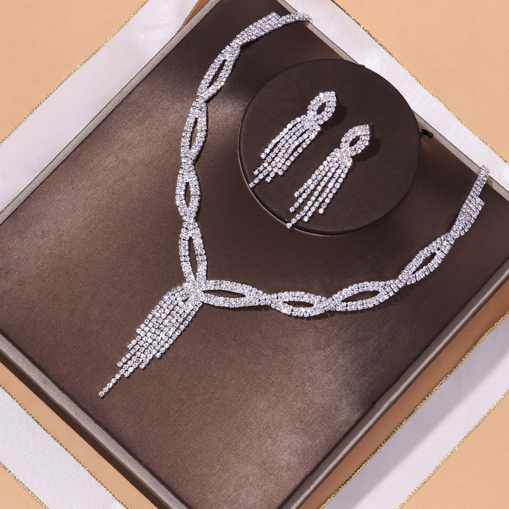 Europa y América Venta caliente simple joyería de dos piezas accesorios vestido versátil nupcial rhinestone cadena conjunto de joyas