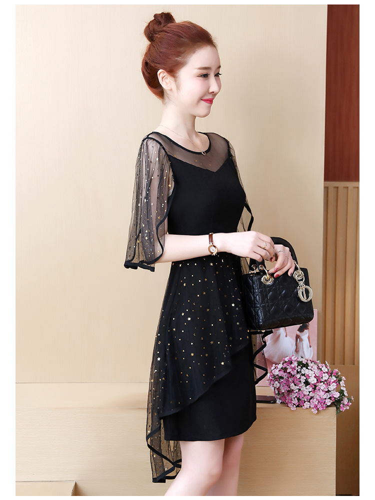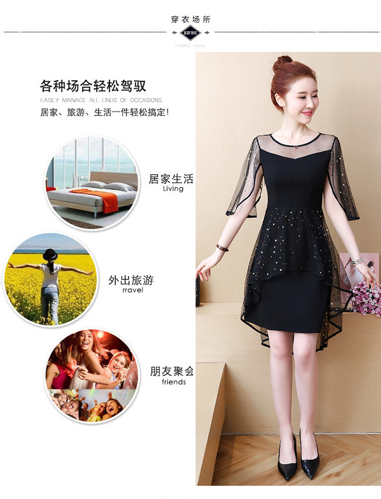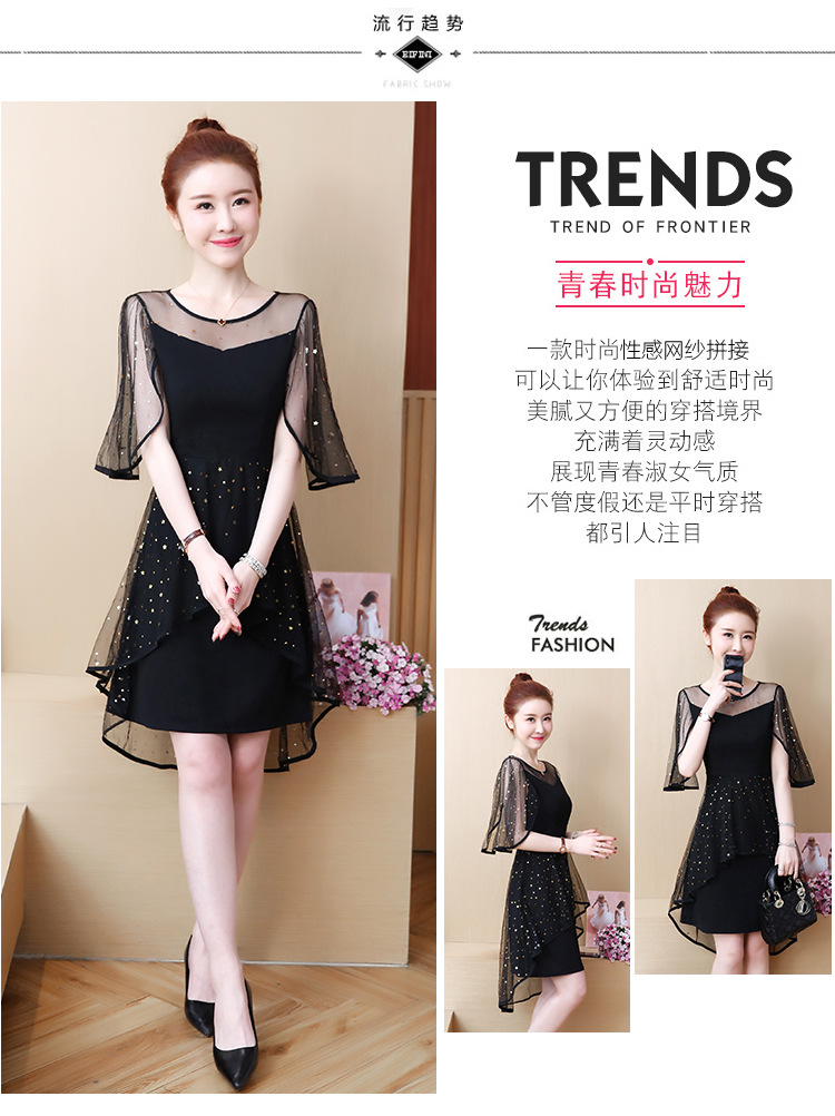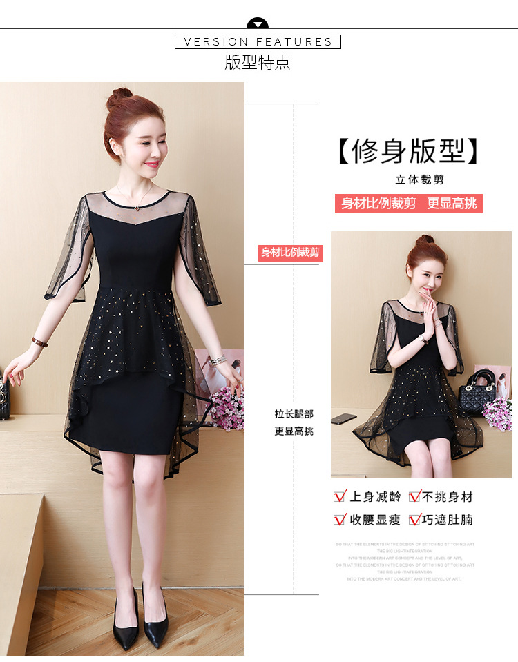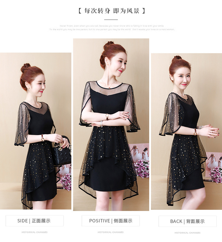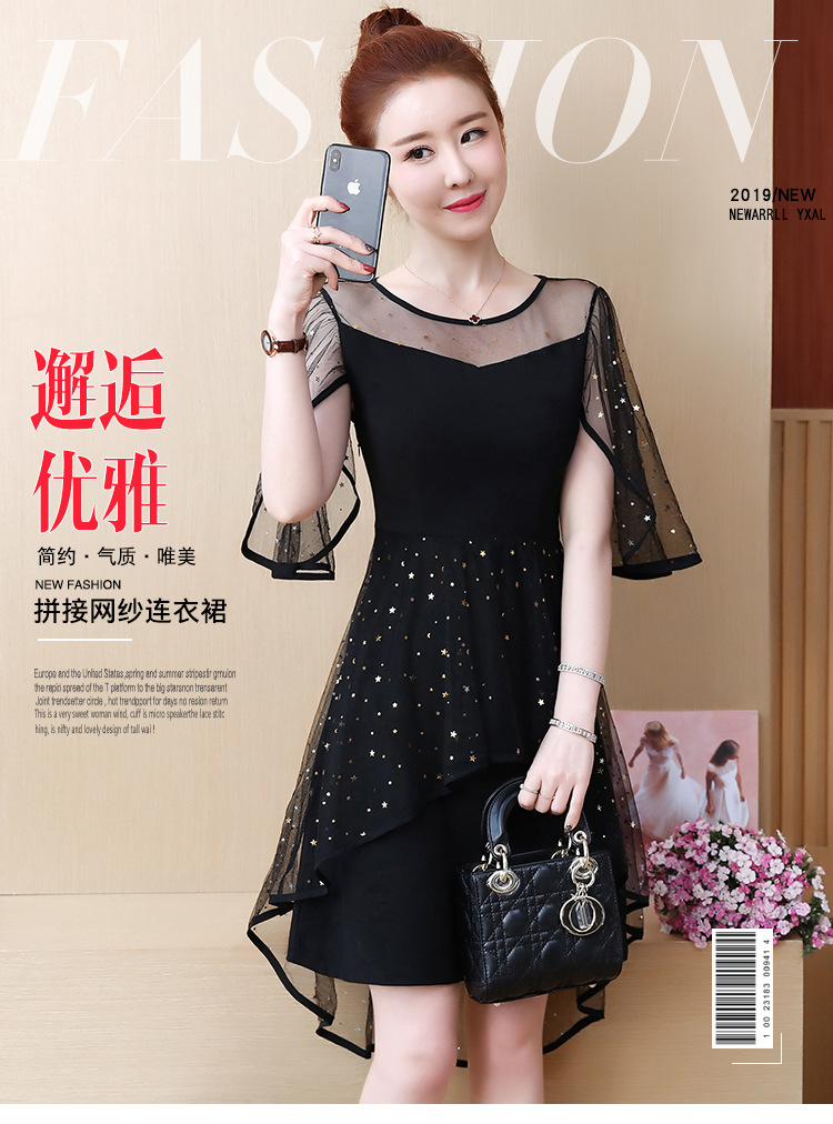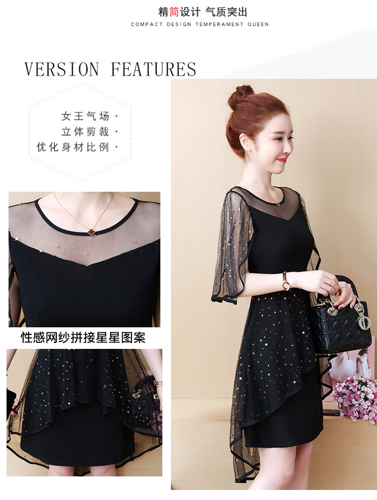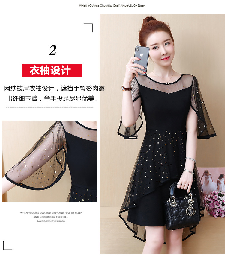 Verano 2021 ropa de mujer suelta adelgazante vientre que cubre malla más tamaño vestido de media manga temperamento de moda ropa de mujer