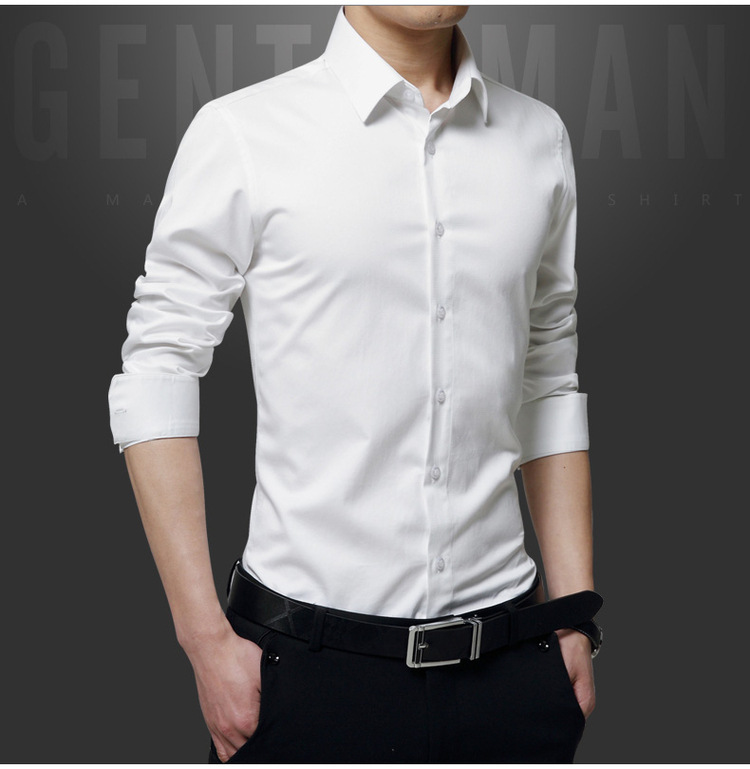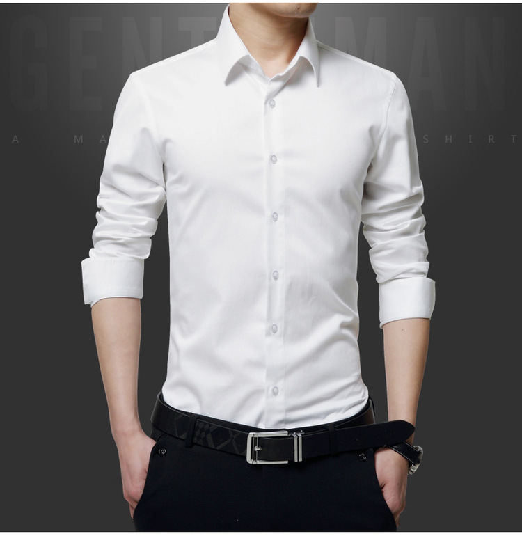 Camisa blanca transfronteriza de los hombres de manga larga estilo coreano estilo de moda campus estilo slim fit hombres guapo estudiante camisa de fondo