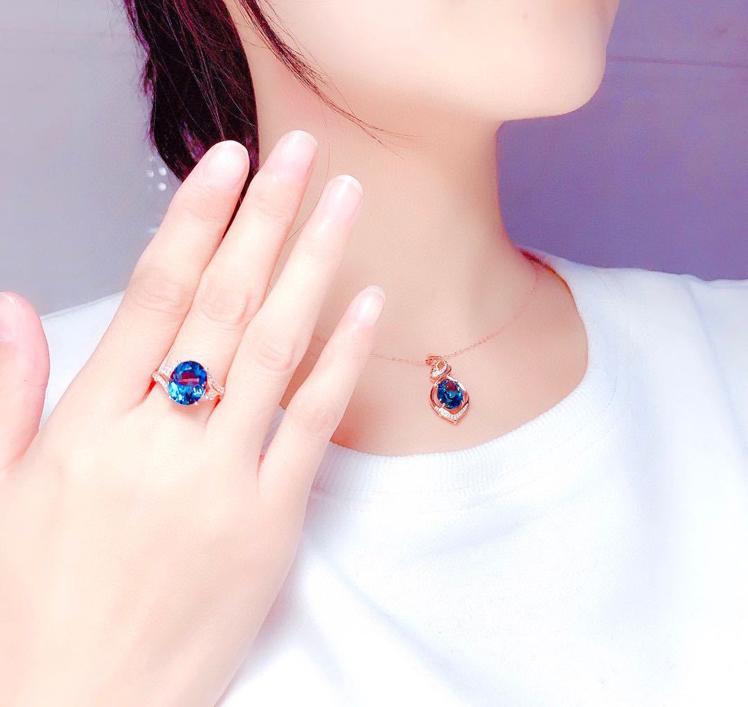 Net rojo vivo drenaje beneficios imitación de natural Londres azul Topa piedra traje mujer tierna anillo collar