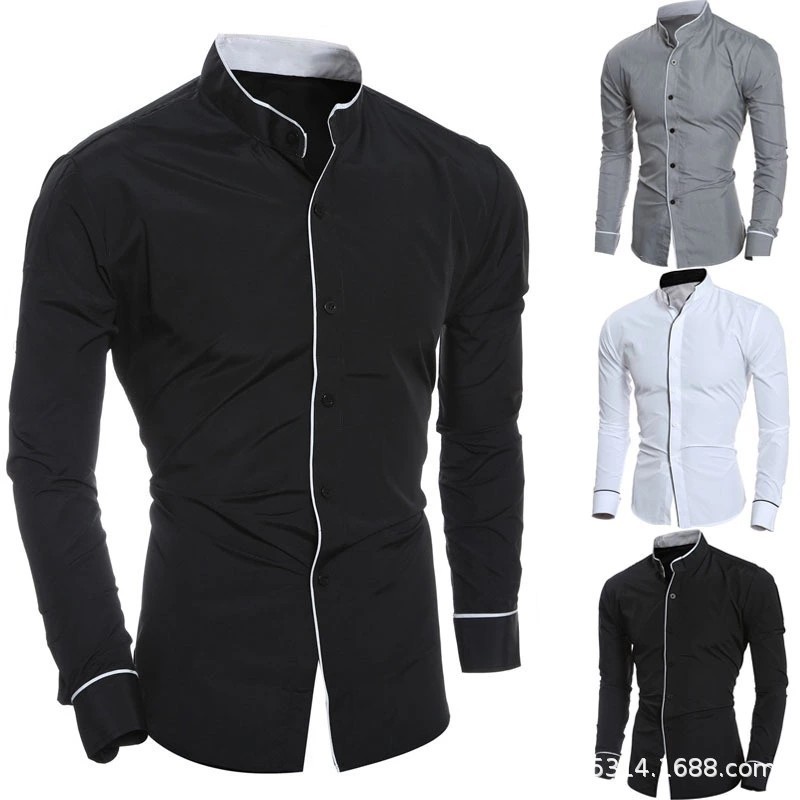 Primavera nuevos hombres de color puro simple casual estilo coreano camisa delgada de manga larga camisa de hombre camisa de fondo promoción de envío gratis