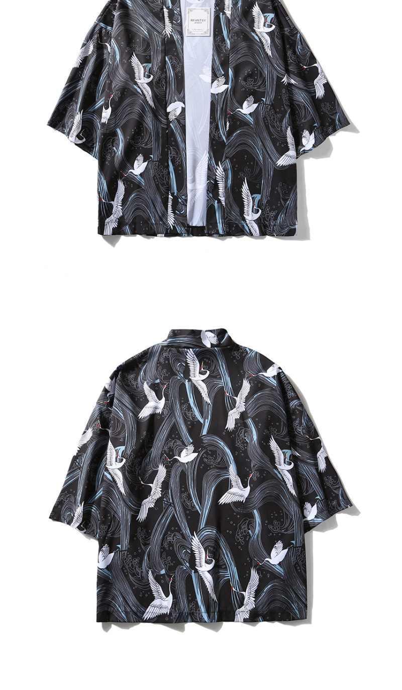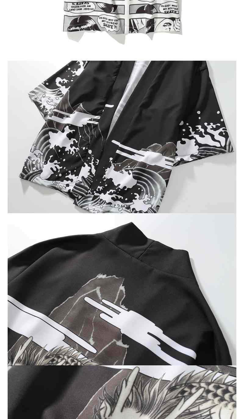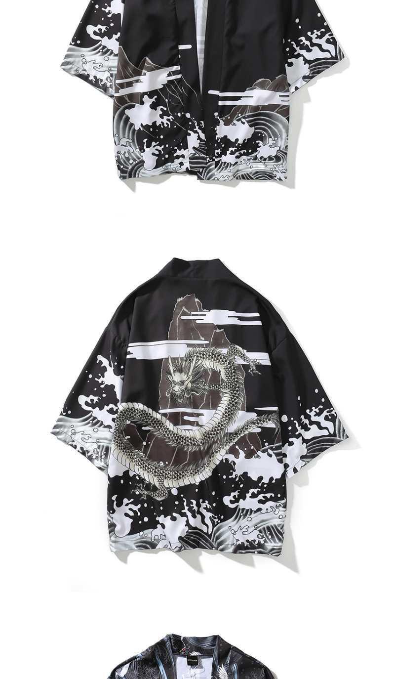 Estilo japonés retro oscuro ukiyo-e robe cardigan kimono hombres y mujeres estilo chino suelta 3/4 manga camisa abrigo moda