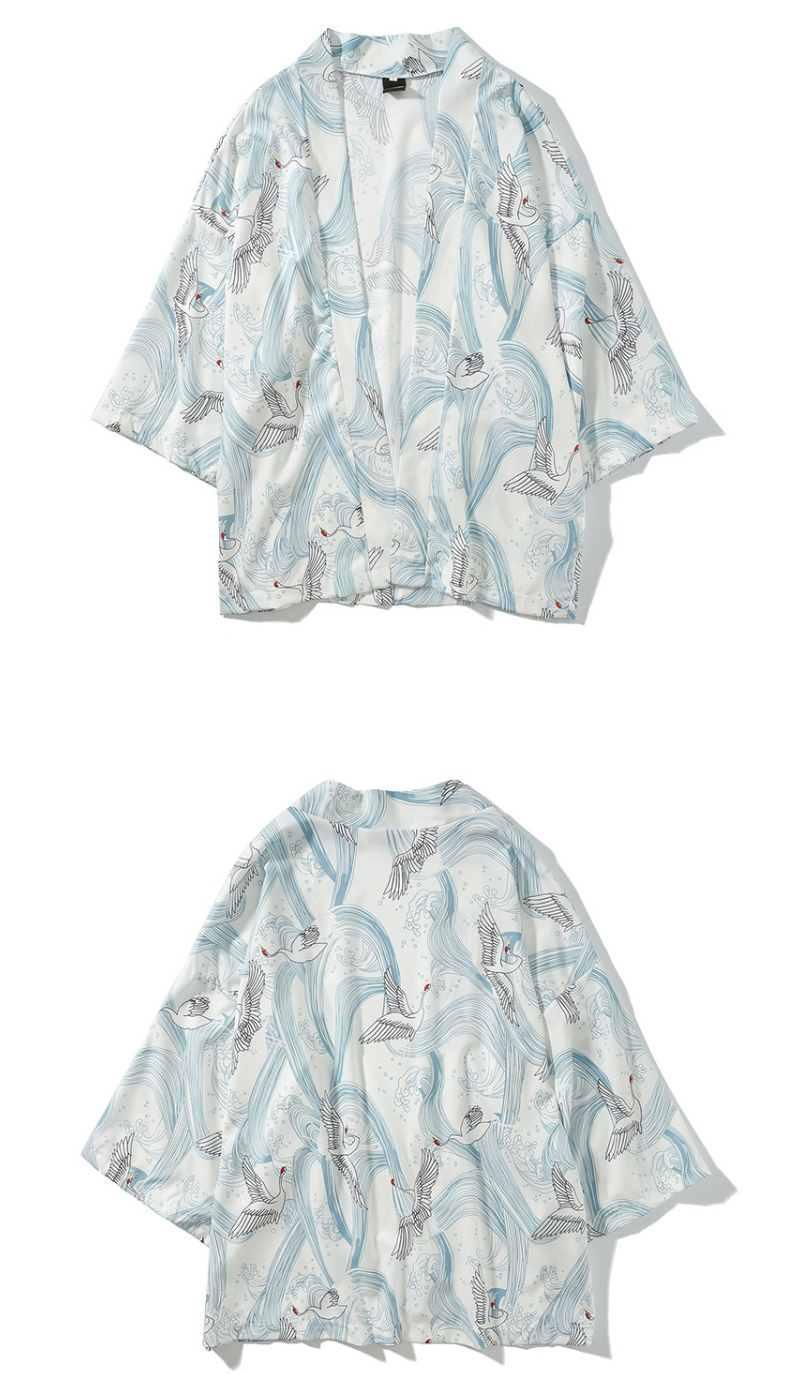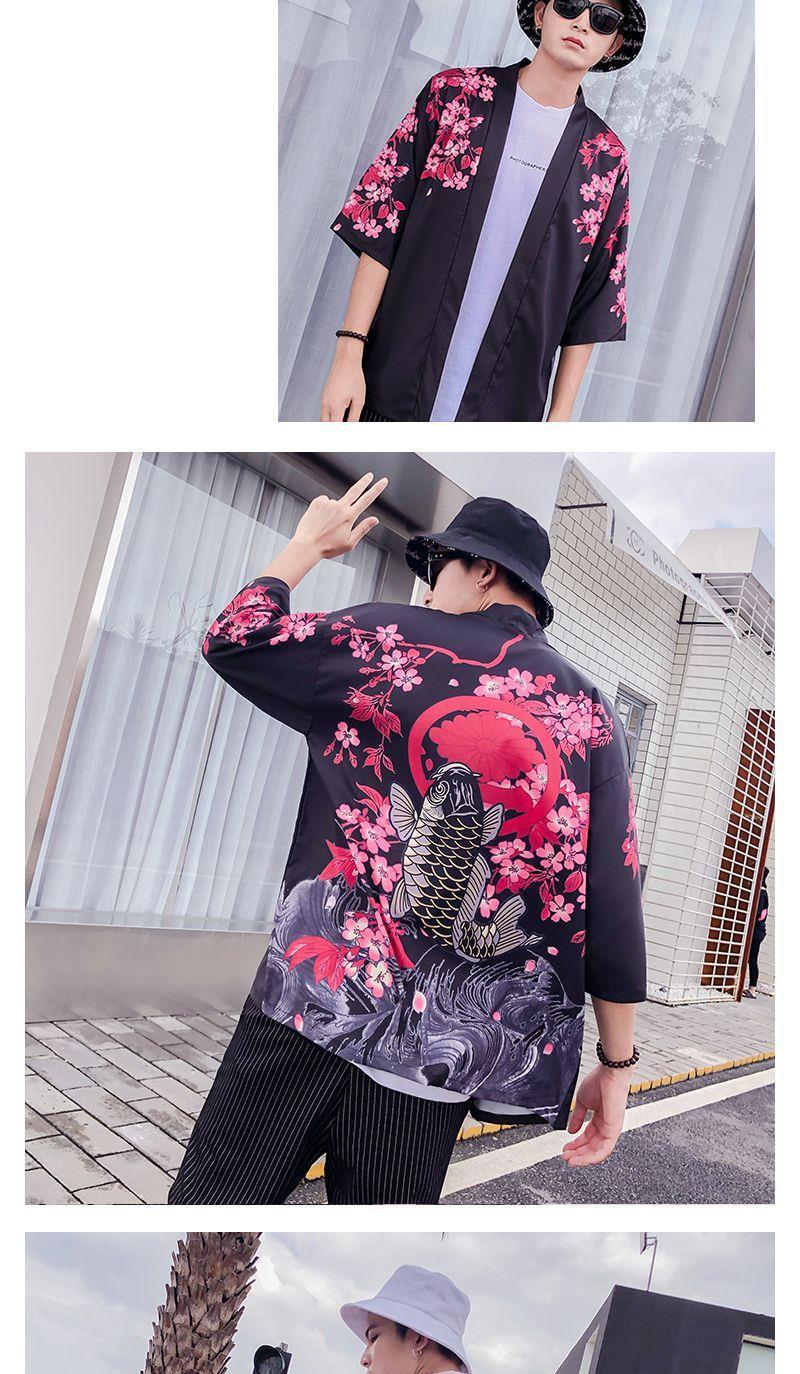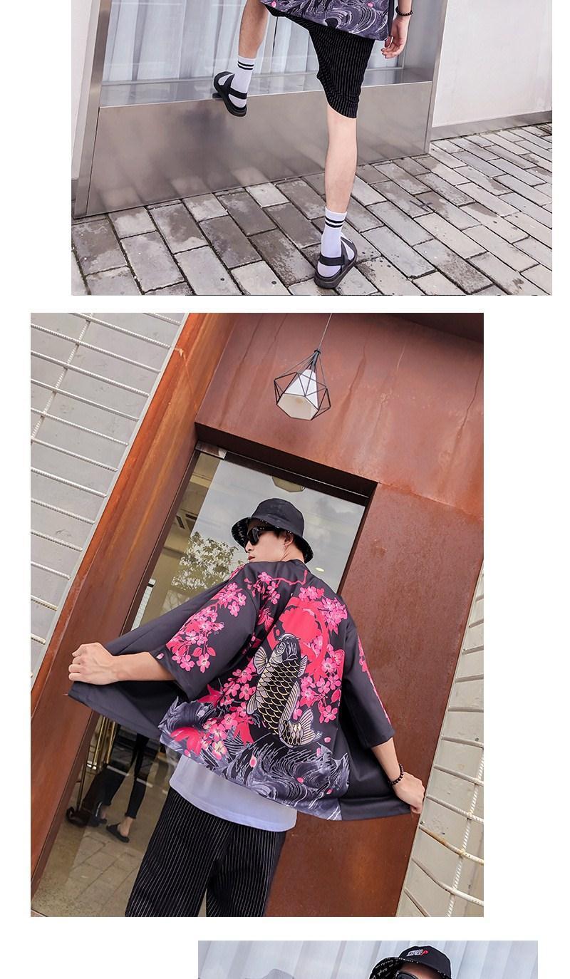 Estilo japonés retro oscuro ukiyo-e robe cardigan kimono hombres y mujeres estilo chino suelta 3/4 manga camisa abrigo moda