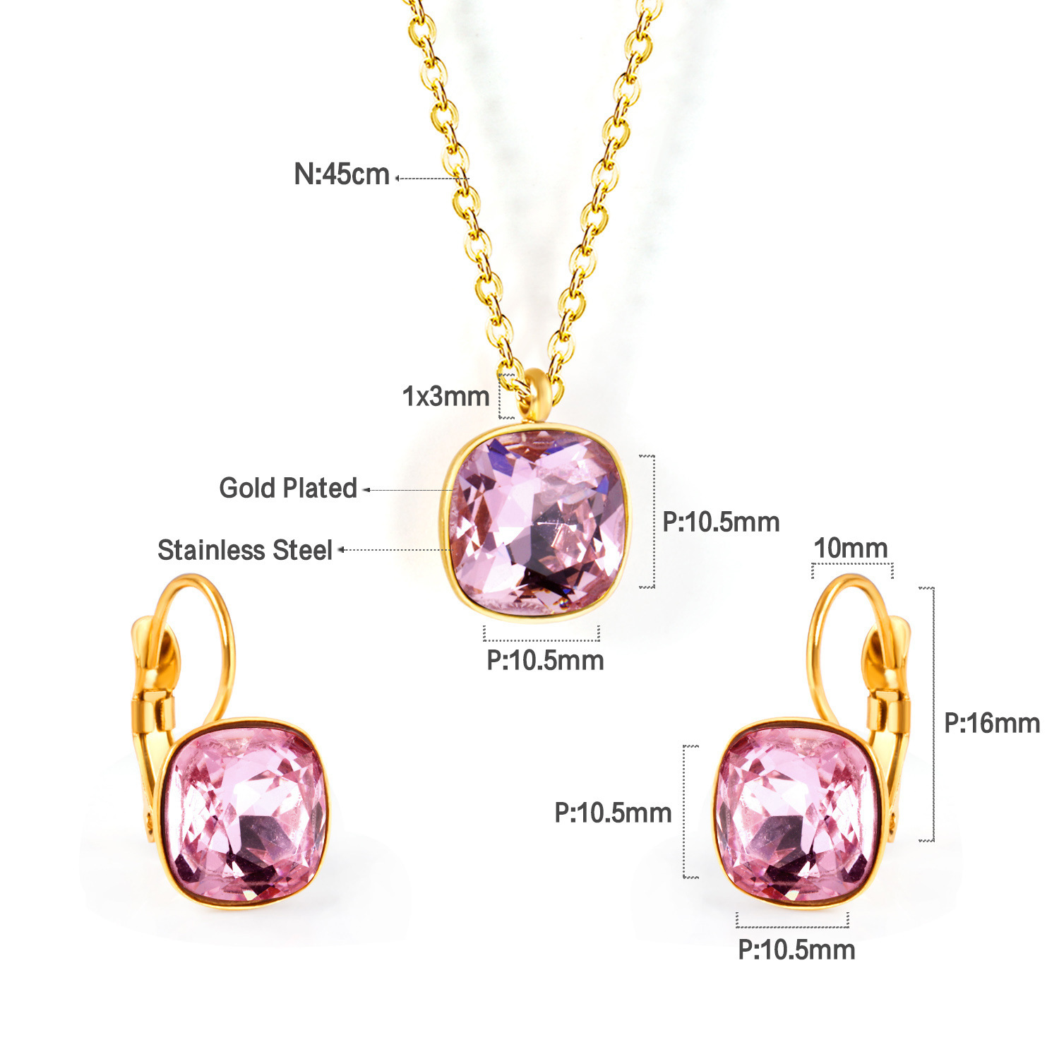 Pendientes transfronterizos europeos y americanos Collar de color Pendientes de cristal de acero inoxidable Conjunto de joyería transfronteriza femenina al por mayor