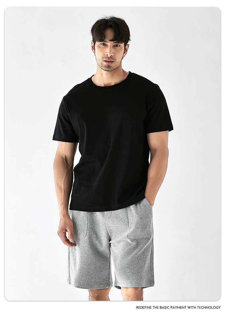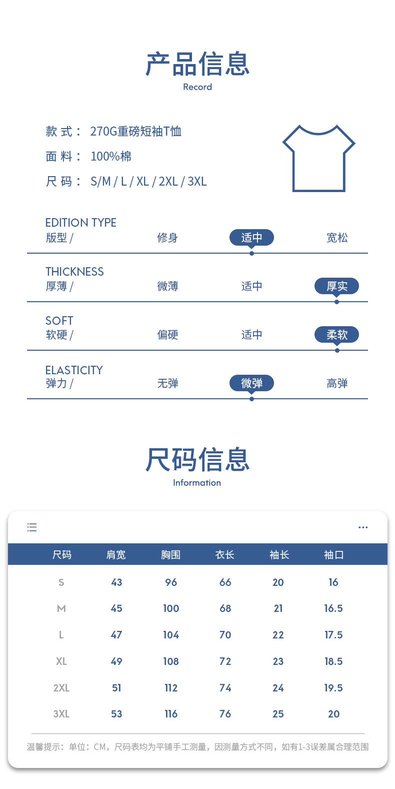 270g de gama alta de algodón Xinjiang de algodón pesado color sólido cuello redondo manga corta Camiseta hombres y mujeres al por mayor fábrica de entrega