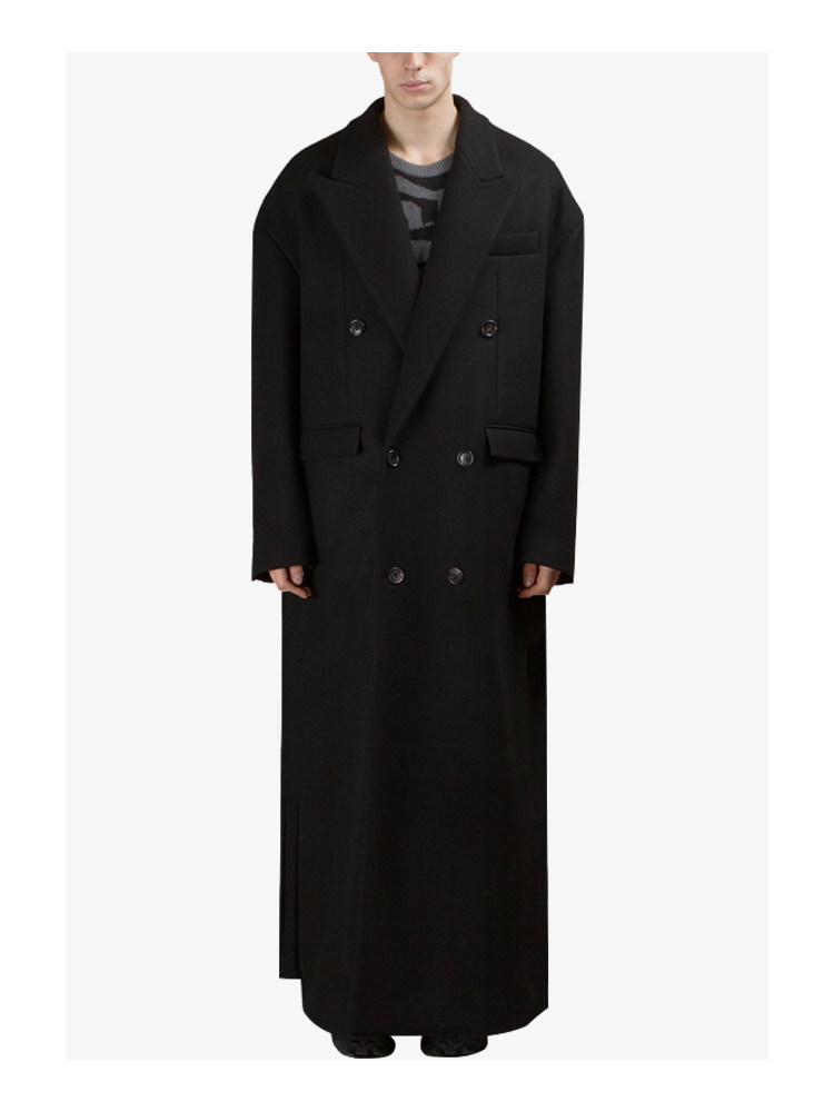 Larga suelta abrigo de lana los hombres gota hombro perfil hendidura lateral Otoño e Invierno Top personalidad moda