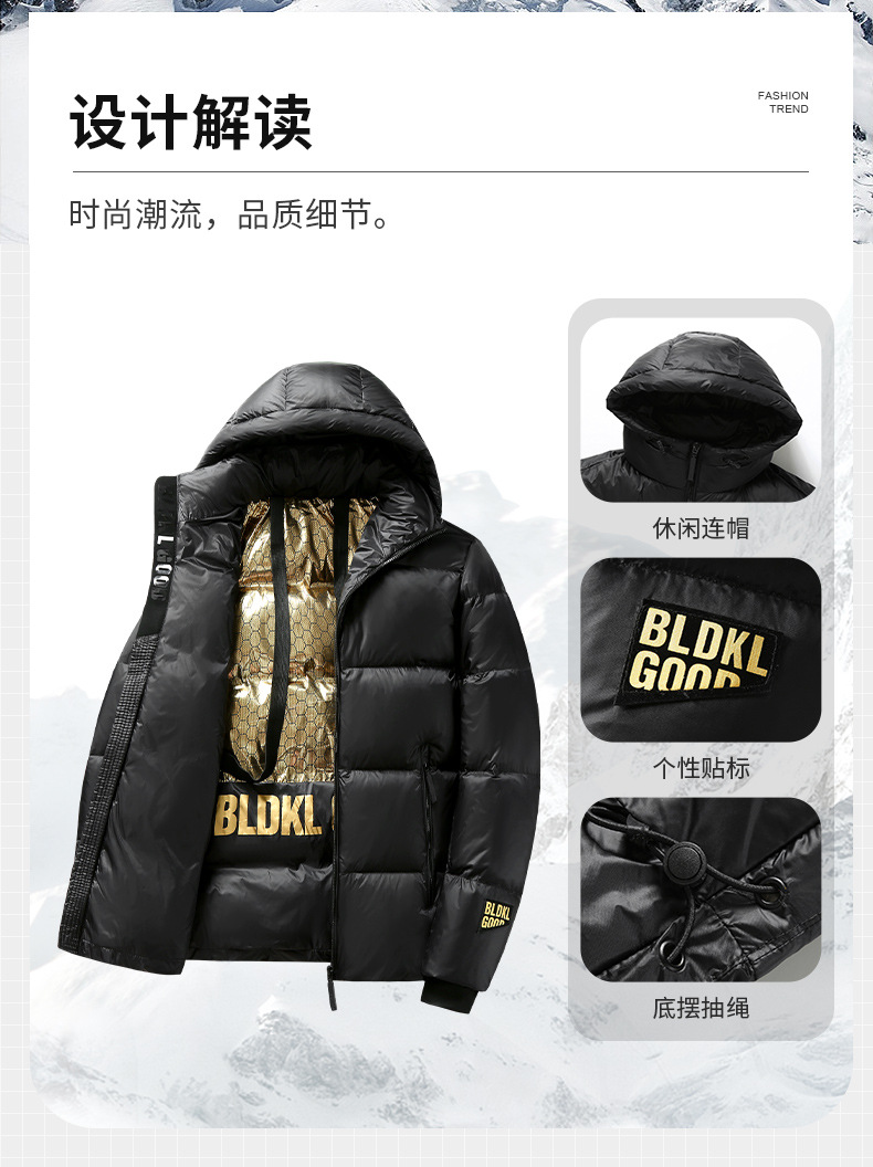 Oro negro de los hombres abajo chaqueta 2023 invierno nuevo estilo coreano moda Internet celebridad caliente superior pareja pato blanco abajo chaqueta