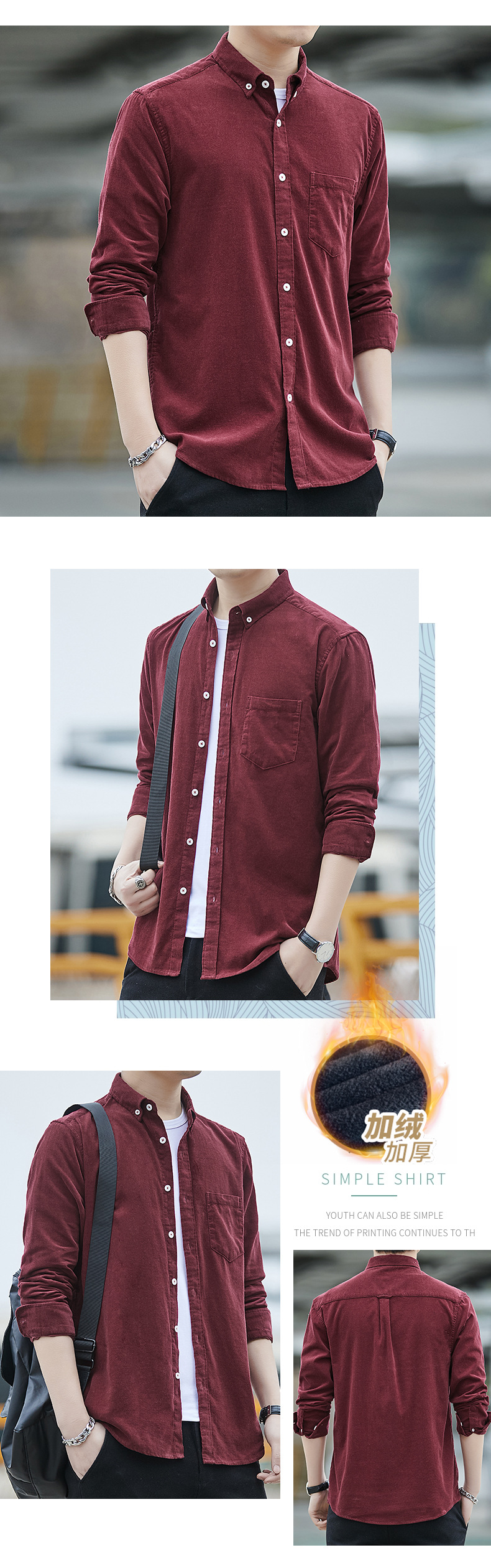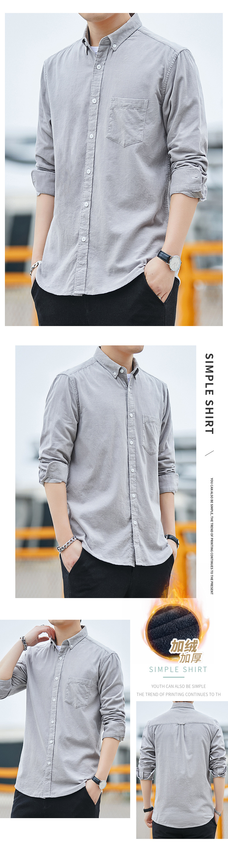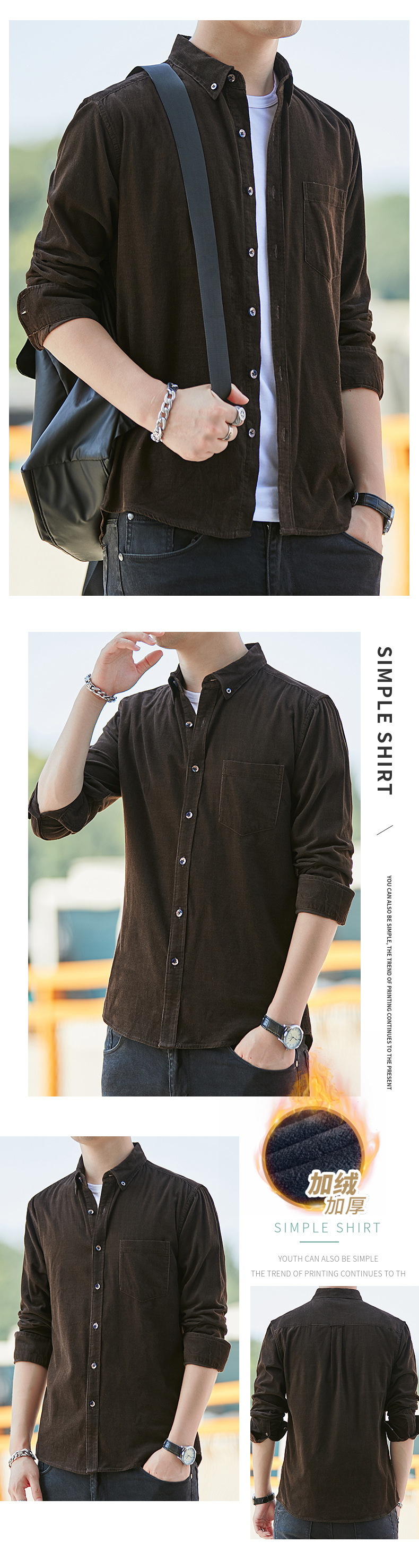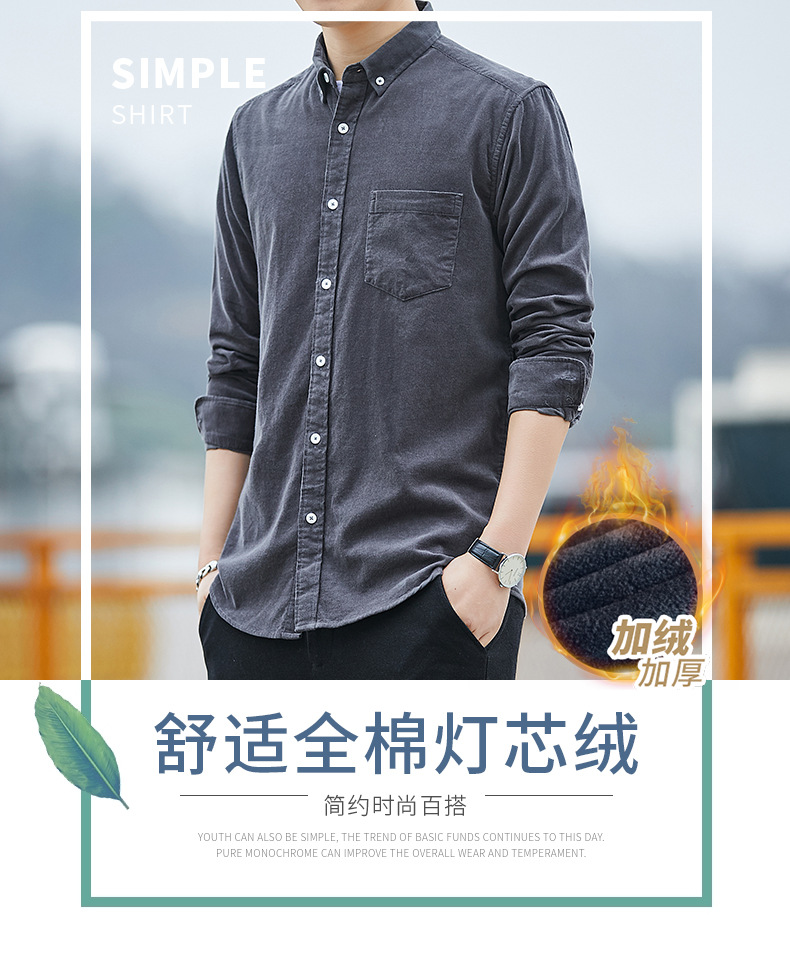 Dongyu hombres Otoño e Invierno hombres camisa de pana forrada de algodón de color sólido abrigo casual en stock al por mayor