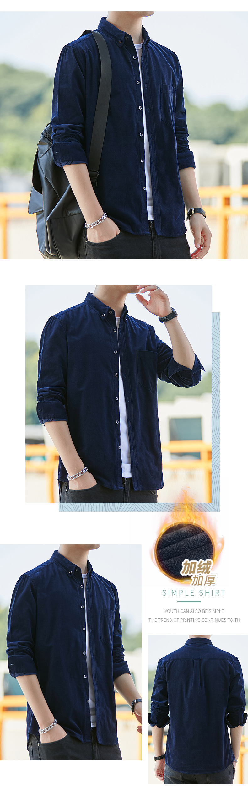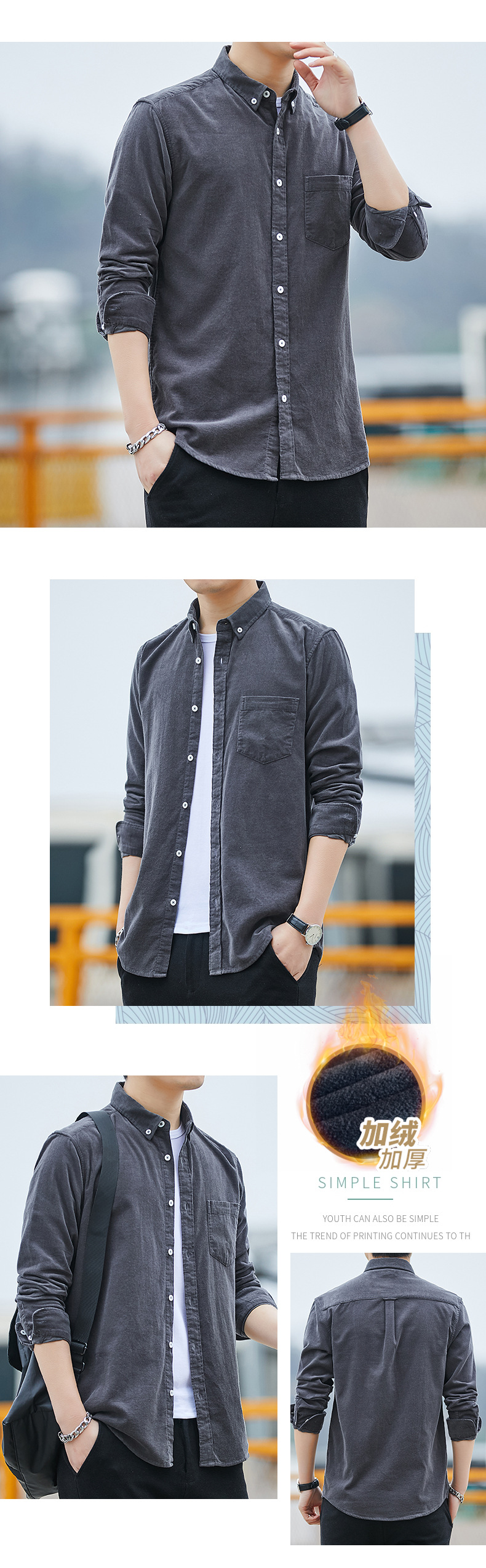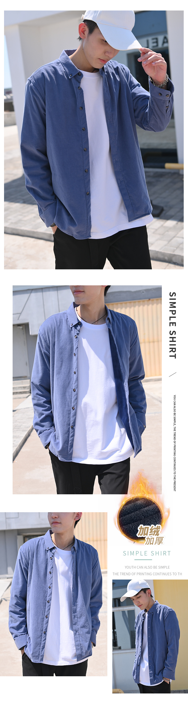 Dongyu hombres Otoño e Invierno hombres camisa de pana forrada de algodón de color sólido abrigo casual en stock al por mayor