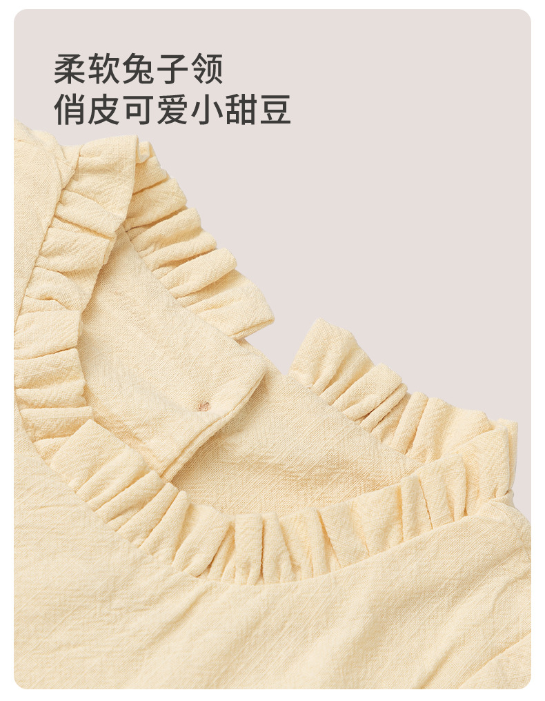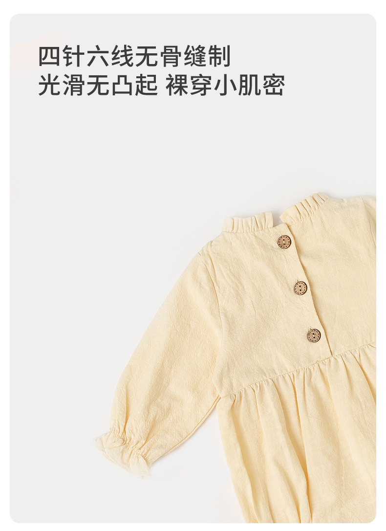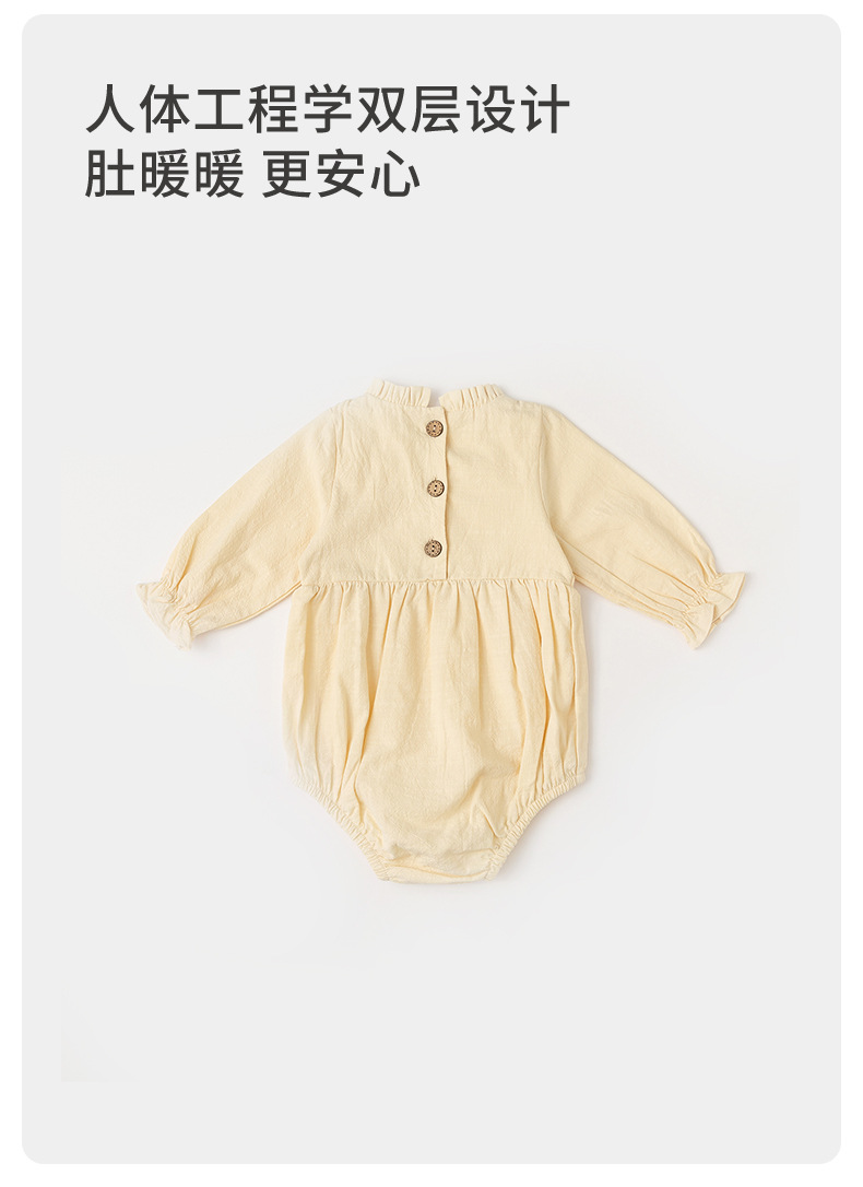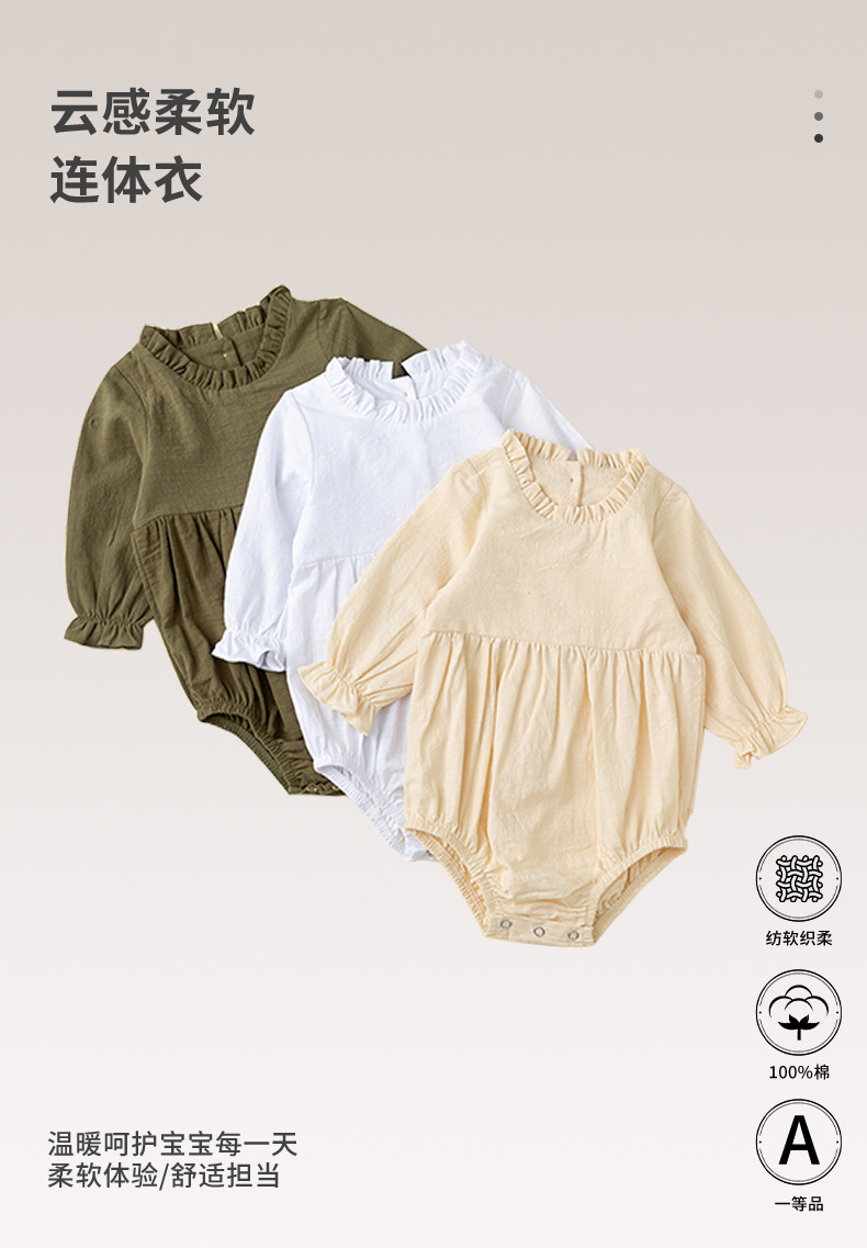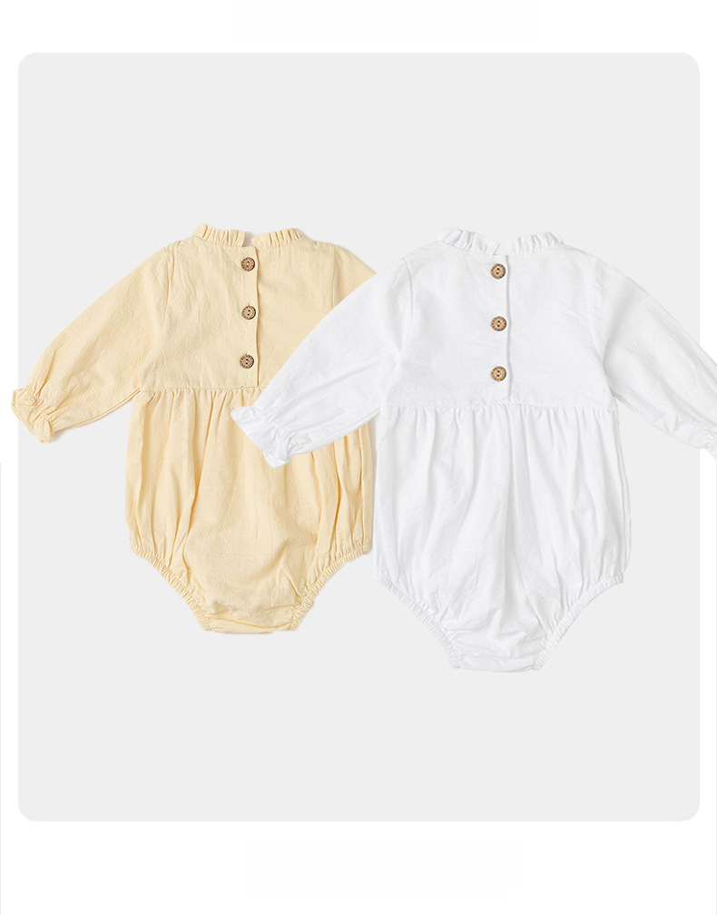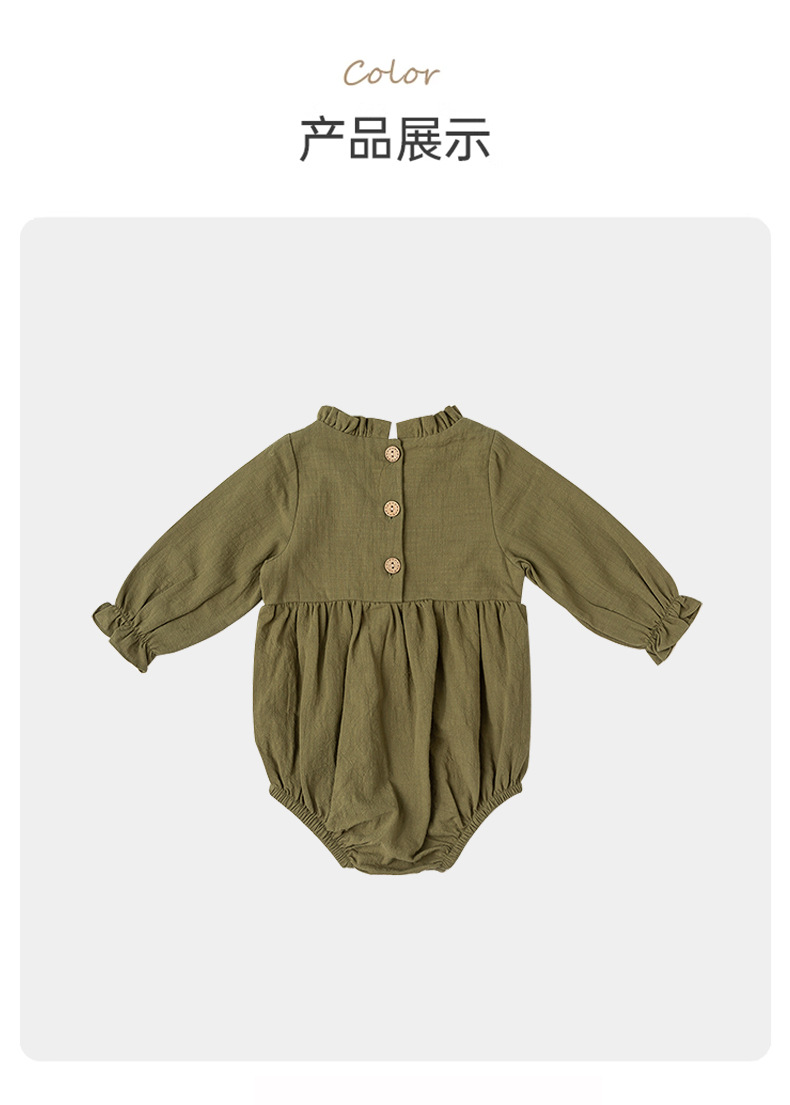 Transfronterizo nuevo de manga larga de algodón y lino recién nacido mameluco de color sólido manga de vuelo Escote de encaje bebé mono niños mameluco