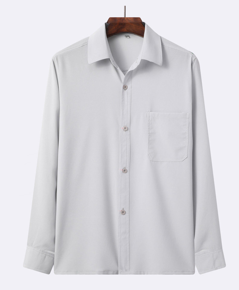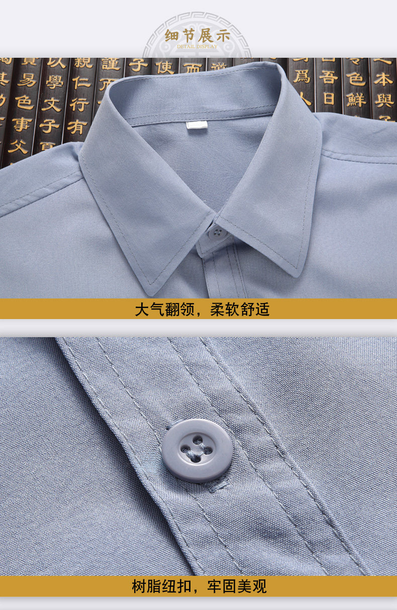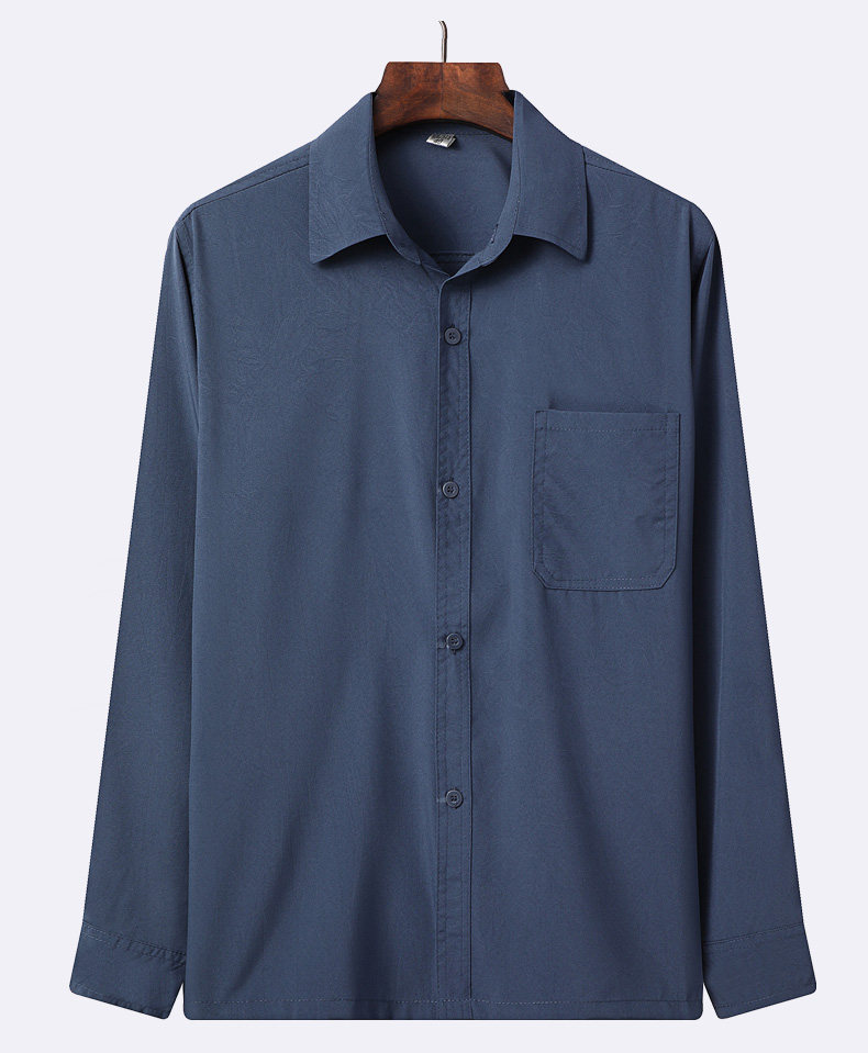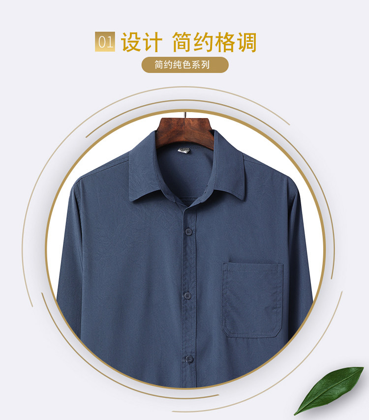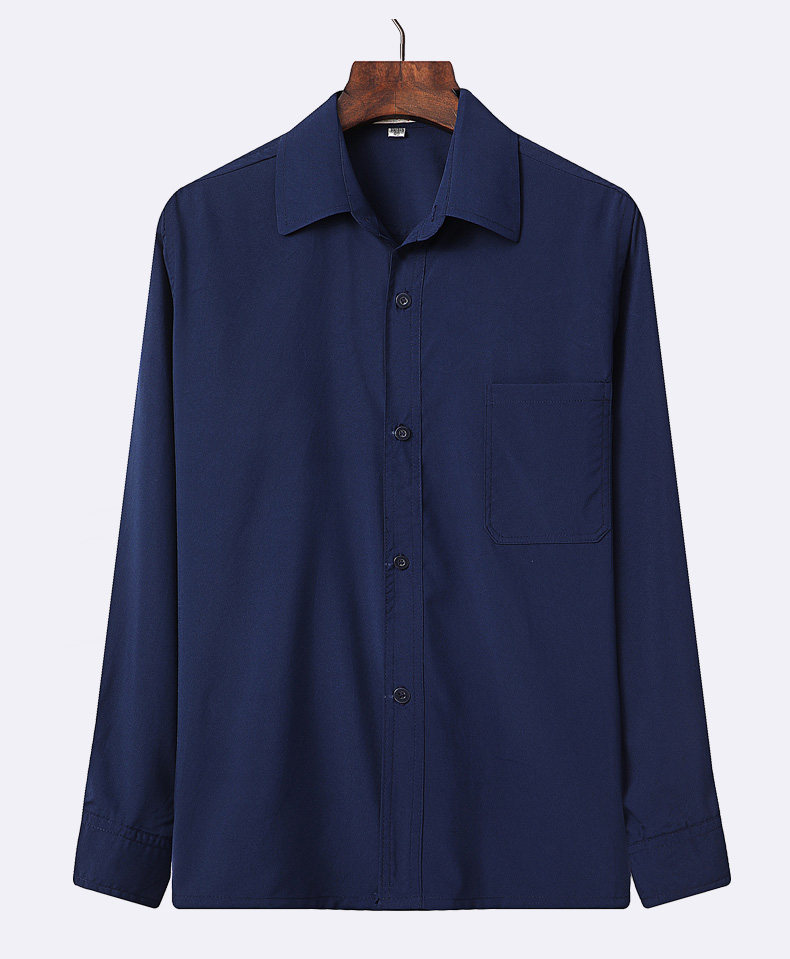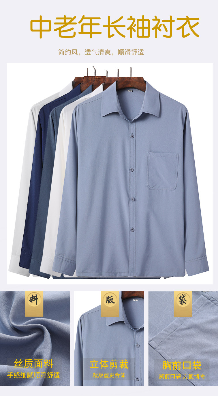 Primavera, otoño y verano color sólido camisa de hombre de mediana edad y ancianos de manga larga de poliéster algodón solapa camisa de hombre agente mayorista