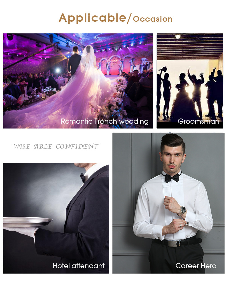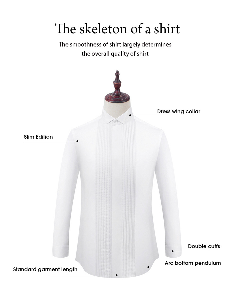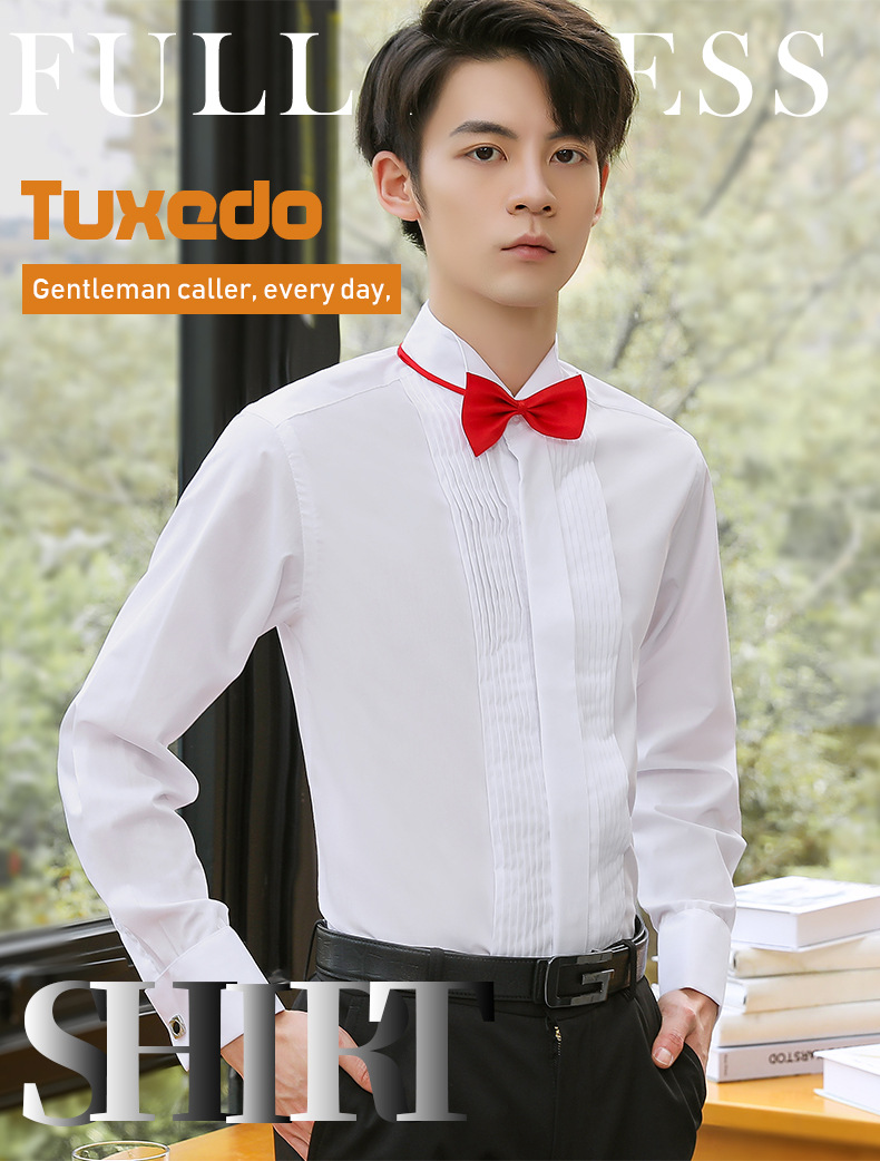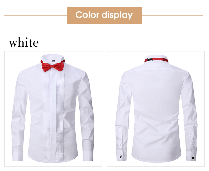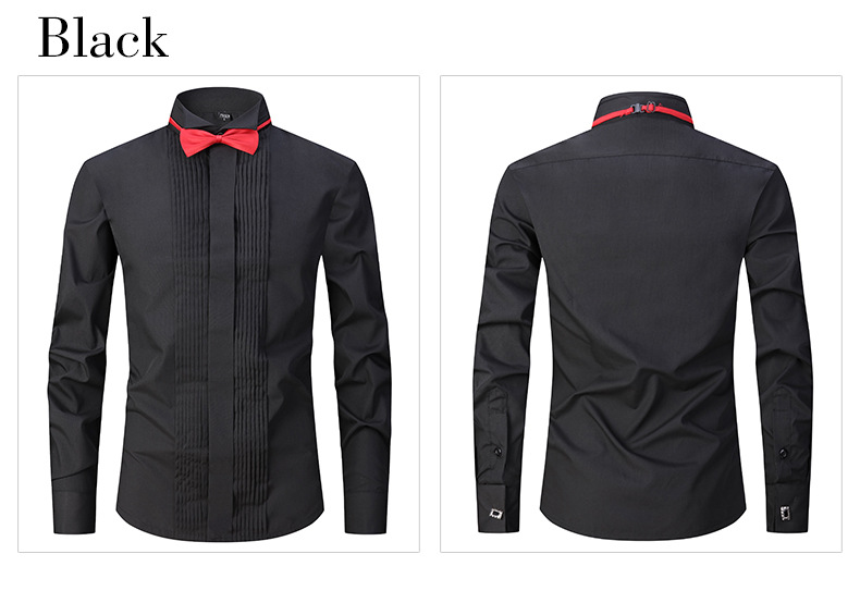 Productos de fábrica pasan AliExpress Venta caliente negro boda masculina manga larga camisa color sólido golondrina collar vestido padrino camisa maestro