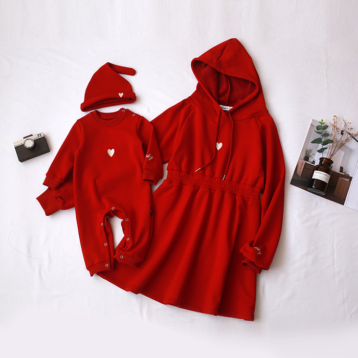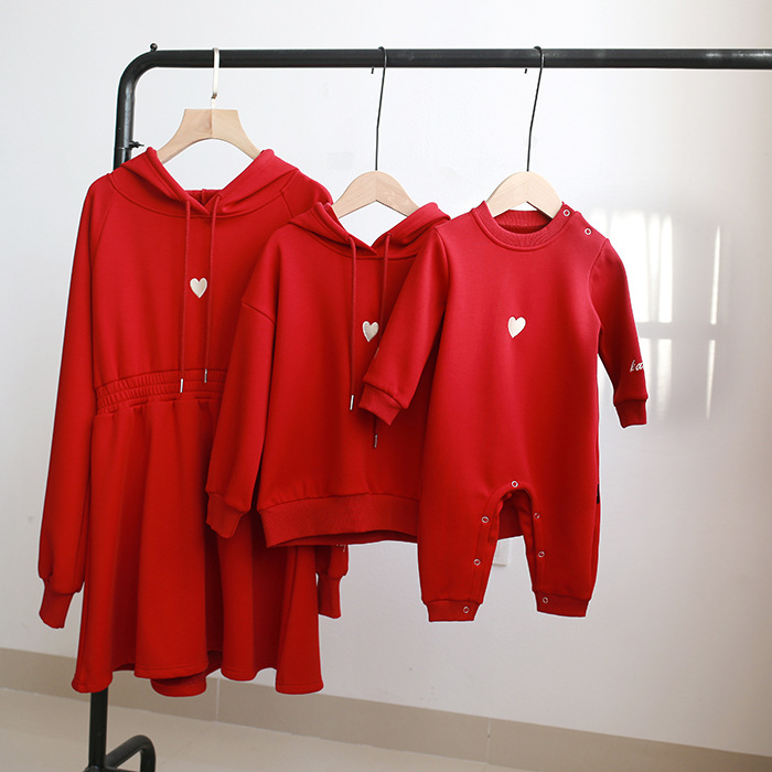 2023 nuevo suéter especial de invierno forrado de lana ropa de Año Nuevo bordado rojo estilo coreano ropa padre-hijo mono de mujer