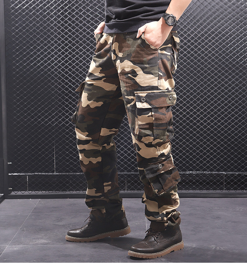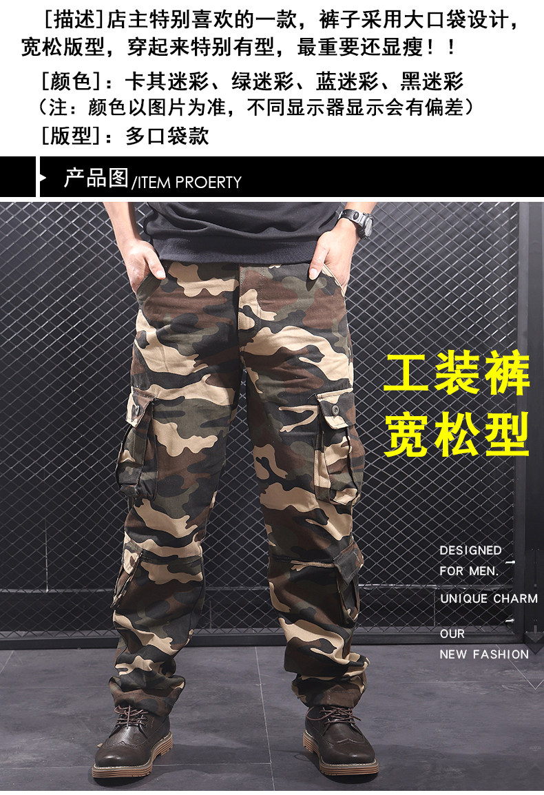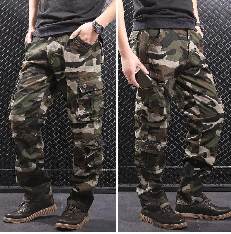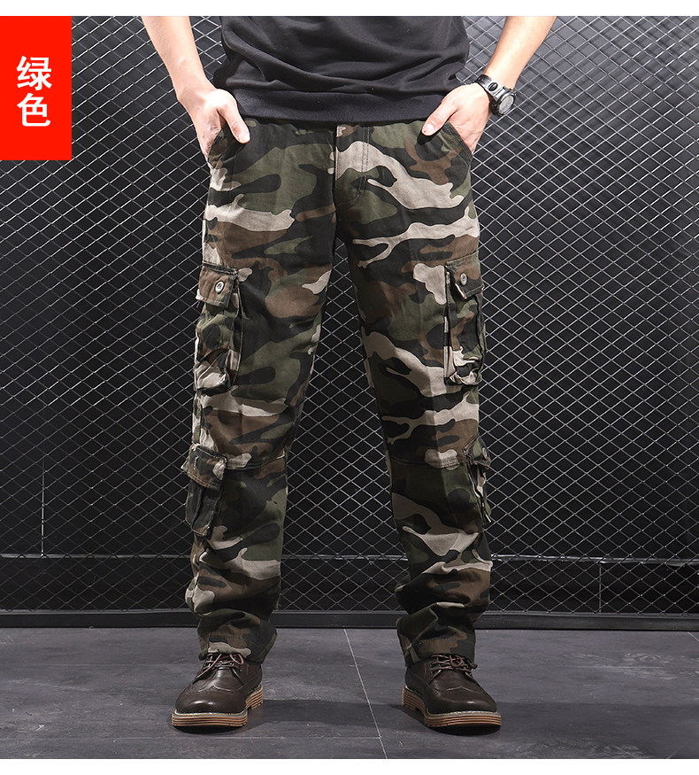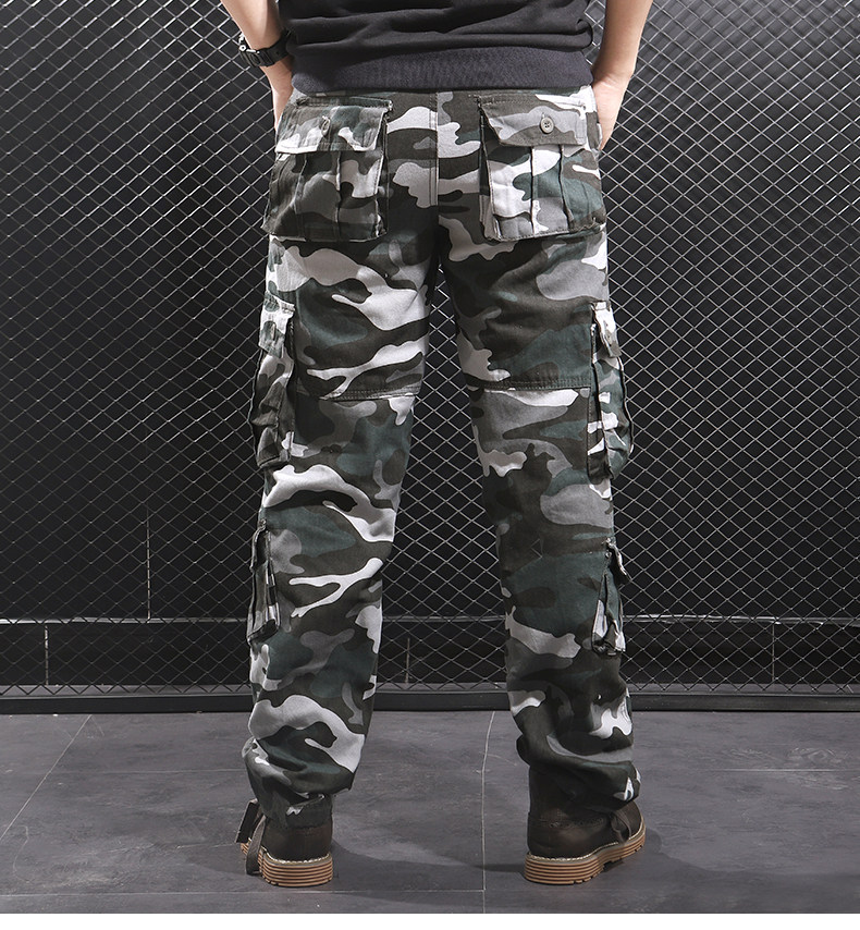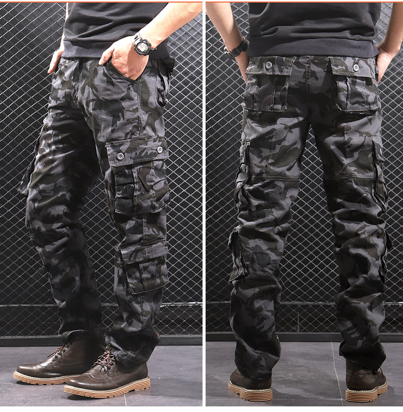 Otoño e Invierno nuevo multi-Bolsillo negro gris camuflaje guardapolvos hombres sueltos rectos más el tamaño resistente al desgaste pantalones casuales moda