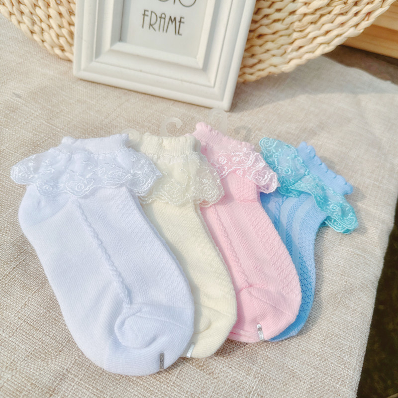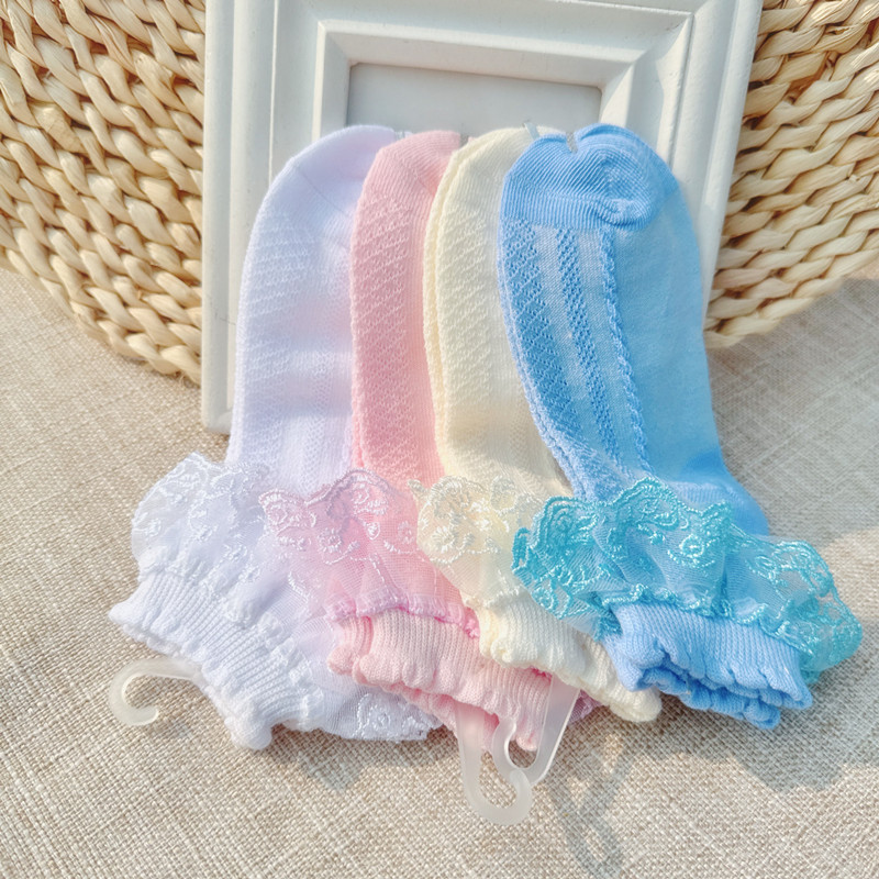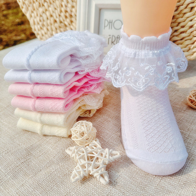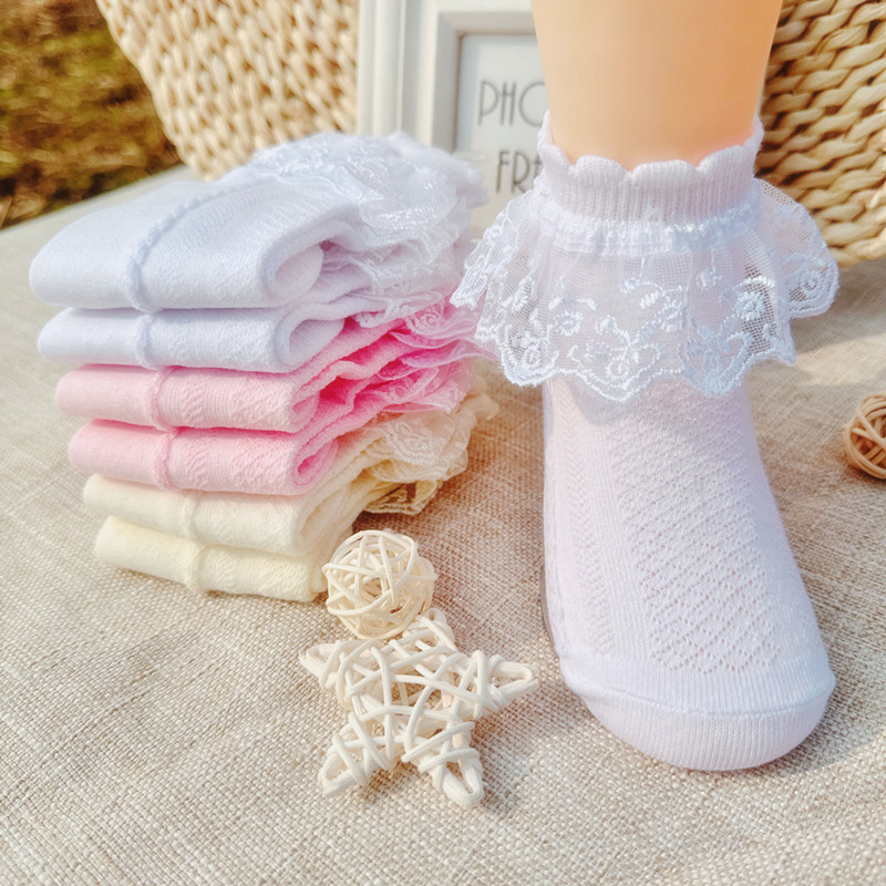 Calcetines de encaje para niños niñas transpirable primavera y otoño verano malla rayas encaje princesa calcetines cortos bebé blanco danza