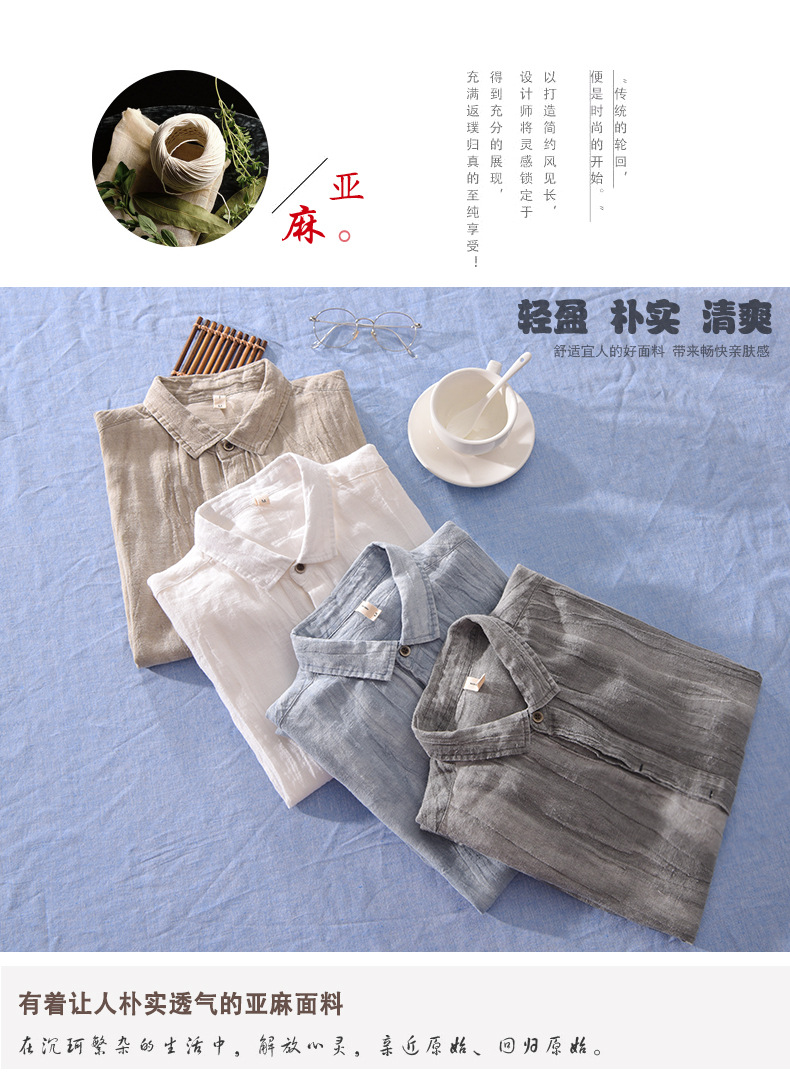 Suministro directo de fábrica nuevos hombres de verano de lino casual Camisa de manga corta de los hombres jóvenes sueltos camisa artística de los hombres