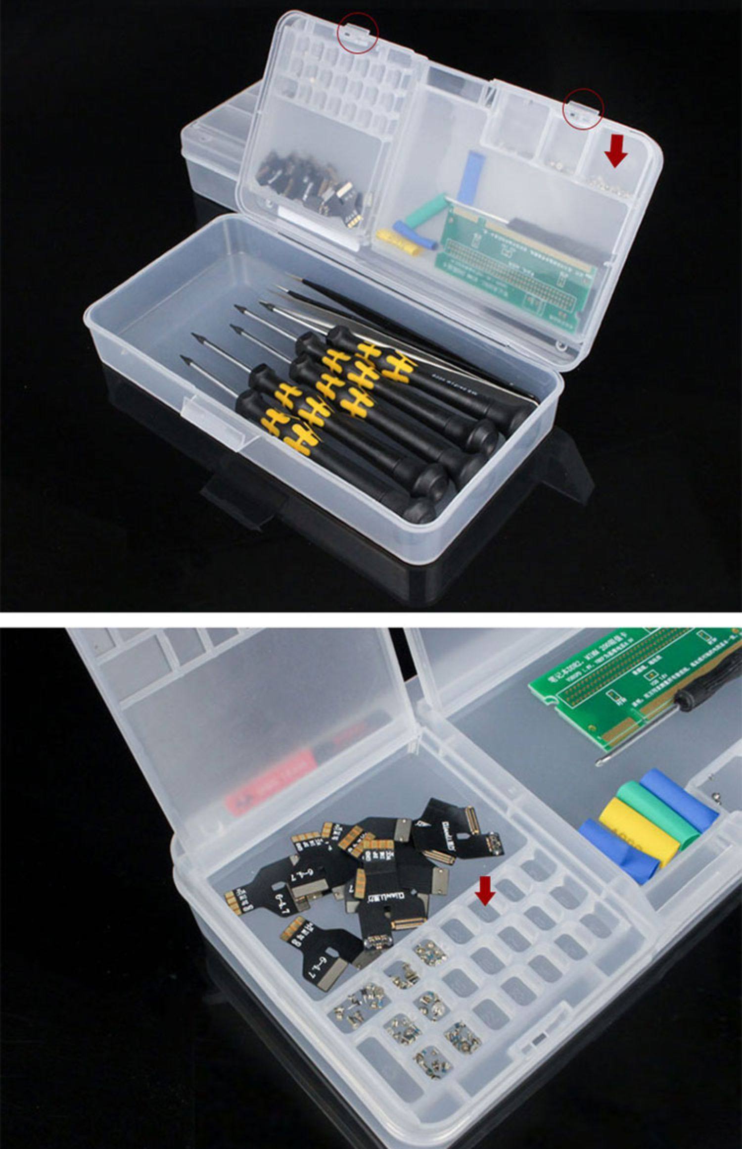 Caja de almacenamiento de tornillo caja de elementos de reparación de teléfonos móviles caja de piezas multifuncionales caja de elementos de doble capa caja de almacenamiento de placa base