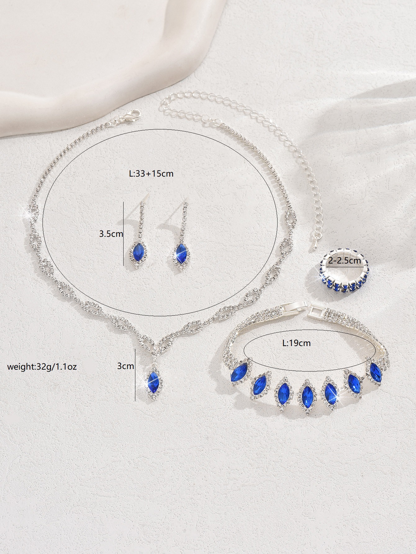 | Colores | 652 600 collar pulsera conjunto de pendientes,652 conjunto de pendientes de collar,600 pulsera azul zafiro,652600424-2 Azul real |