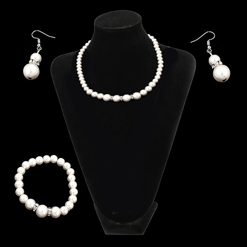 Moda europea y americana perla diamante cristal collar pendientes pulsera traje de las mujeres collar nupcial joyería al por mayor